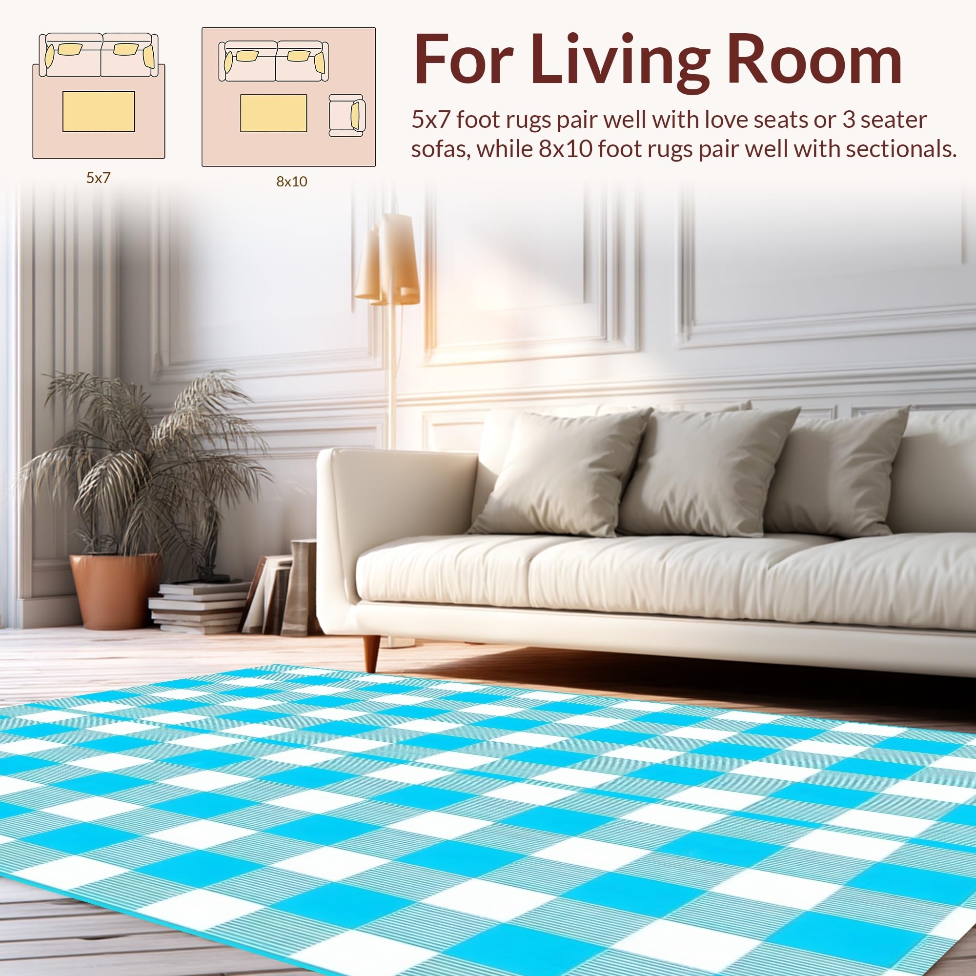 Ultra Soft Area Rug, Non Slip, Stain Resistant, Washable Area Rugs for Living Room, Bedroom, Stylish Tassel-Edged Cozy Look(Blue) Overview: