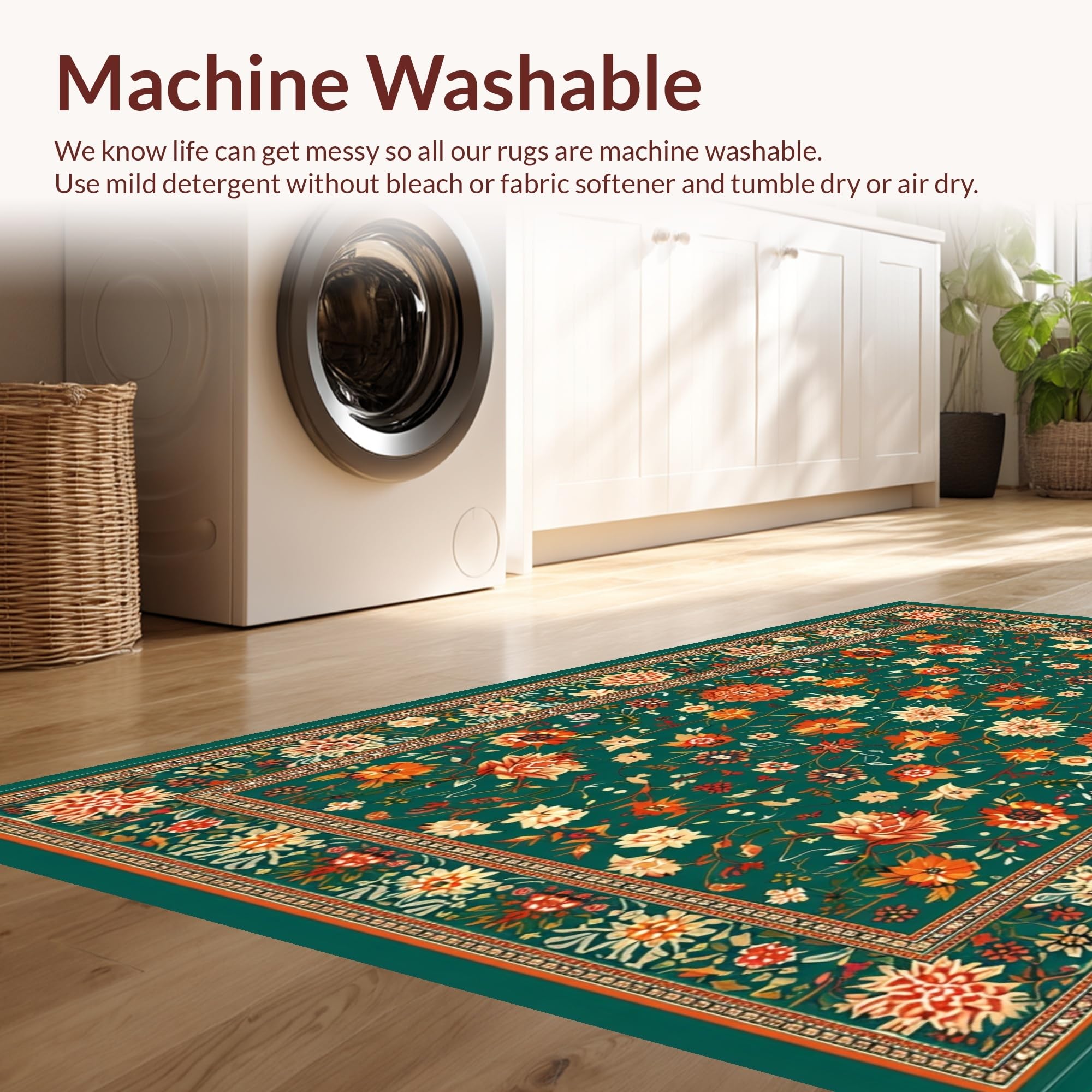 - Machine Washable: Our rugs can be easily thrown in the wash machine.