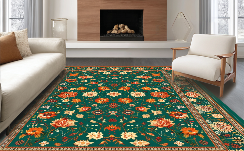 Ultra Soft Area Rug, Non Slip, Stain Resistant, Washable Area Rugs for Living Room, Bedroom, Stylish Textured Coastal Motif(Green) Overview: