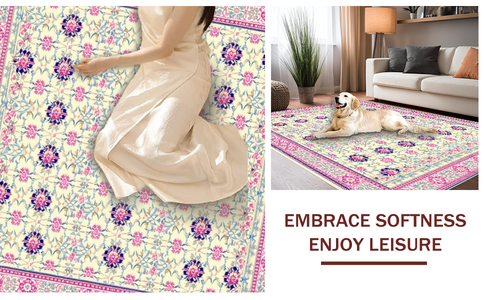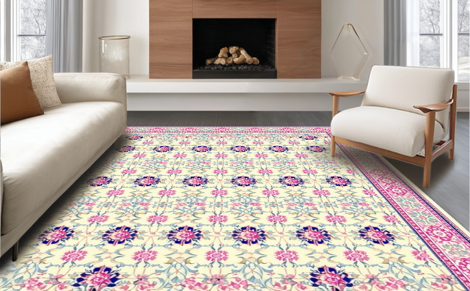Ultra Soft Area Rug, Non Slip, Stain Resistant, Washable Area Rugs for Living Room, Bedroom, Stylish Traditional Botanical Pattern(Ivory) Overview: