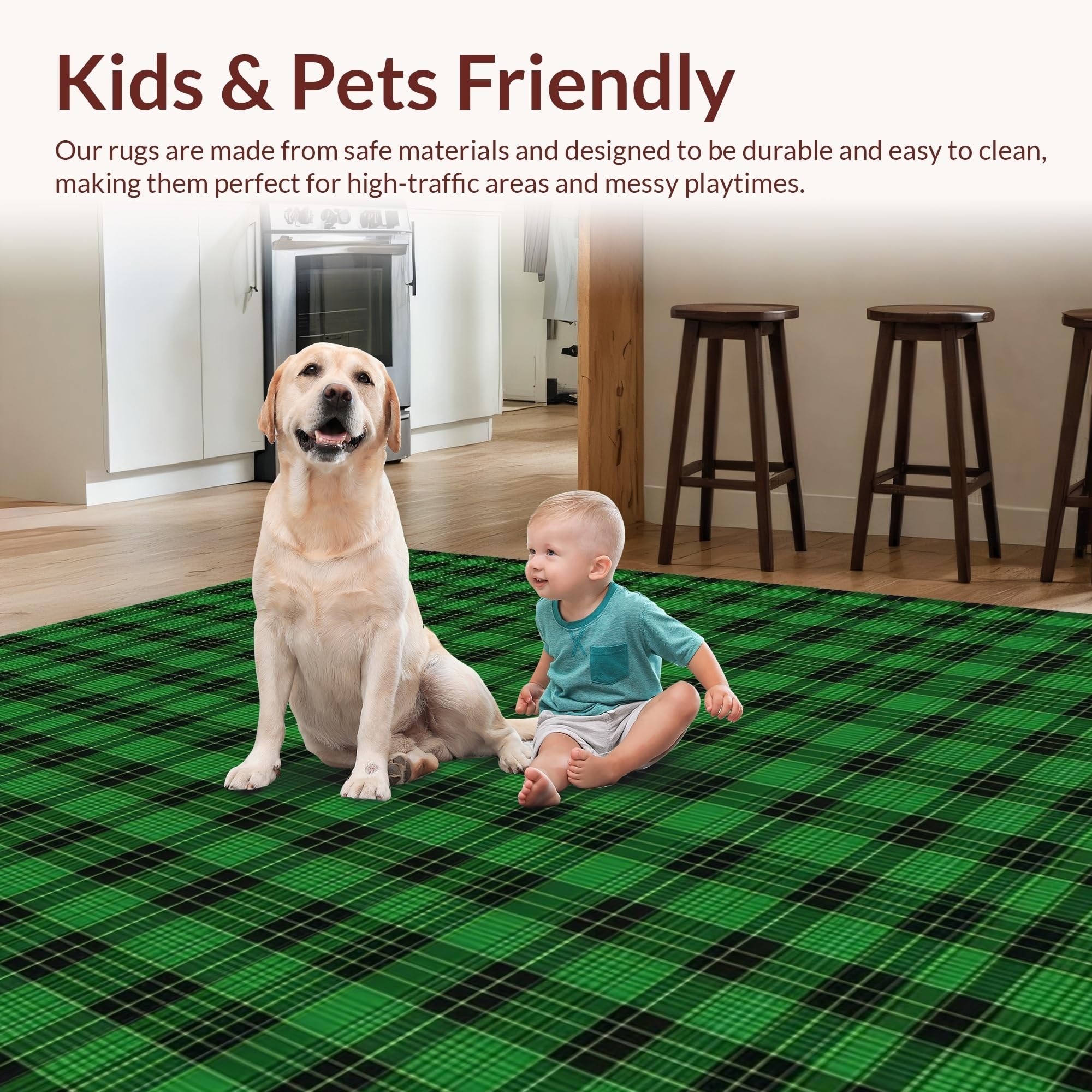 Ultra Soft Area Rug, Non Slip, Stain Resistant, Washable Area Rugs for Living Room, Bedroom, Stylish Transitional Green and White(Green) Overview: