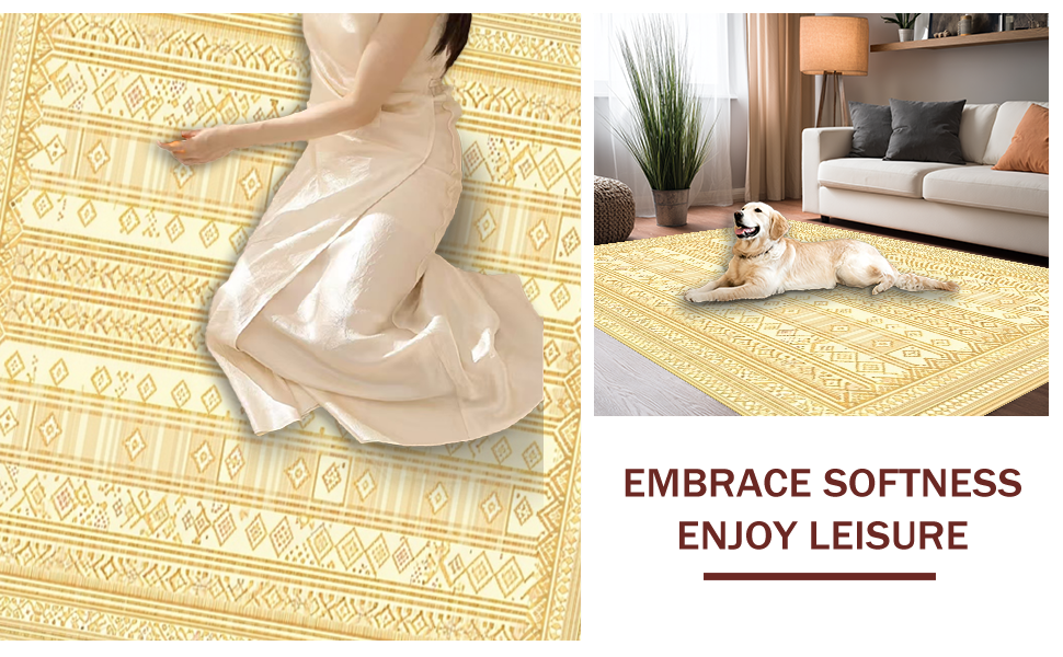 Ultra Soft Area Rug, Non Slip, Stain Resistant, Washable Area Rugs for Living Room, Bedroom, Stylish Transitional Symmetrical Shapes(Beige) Overview: