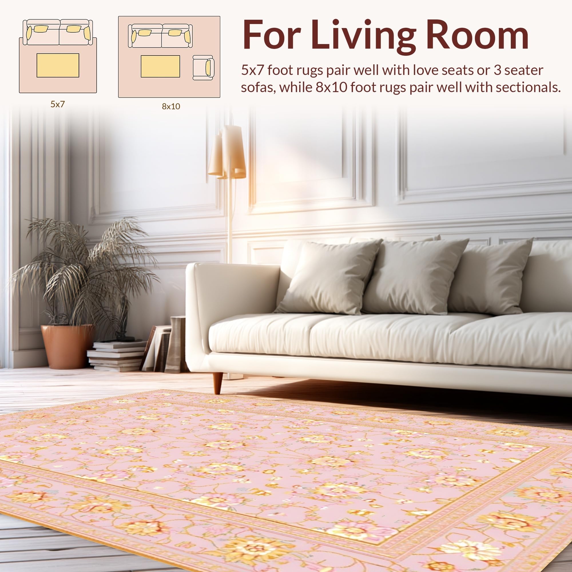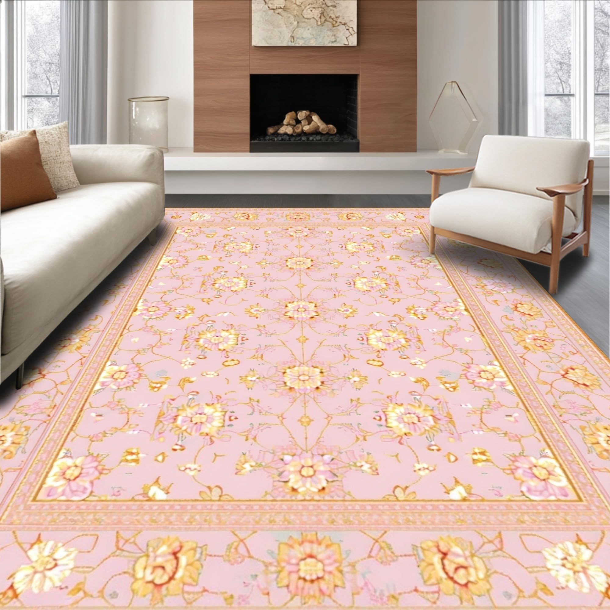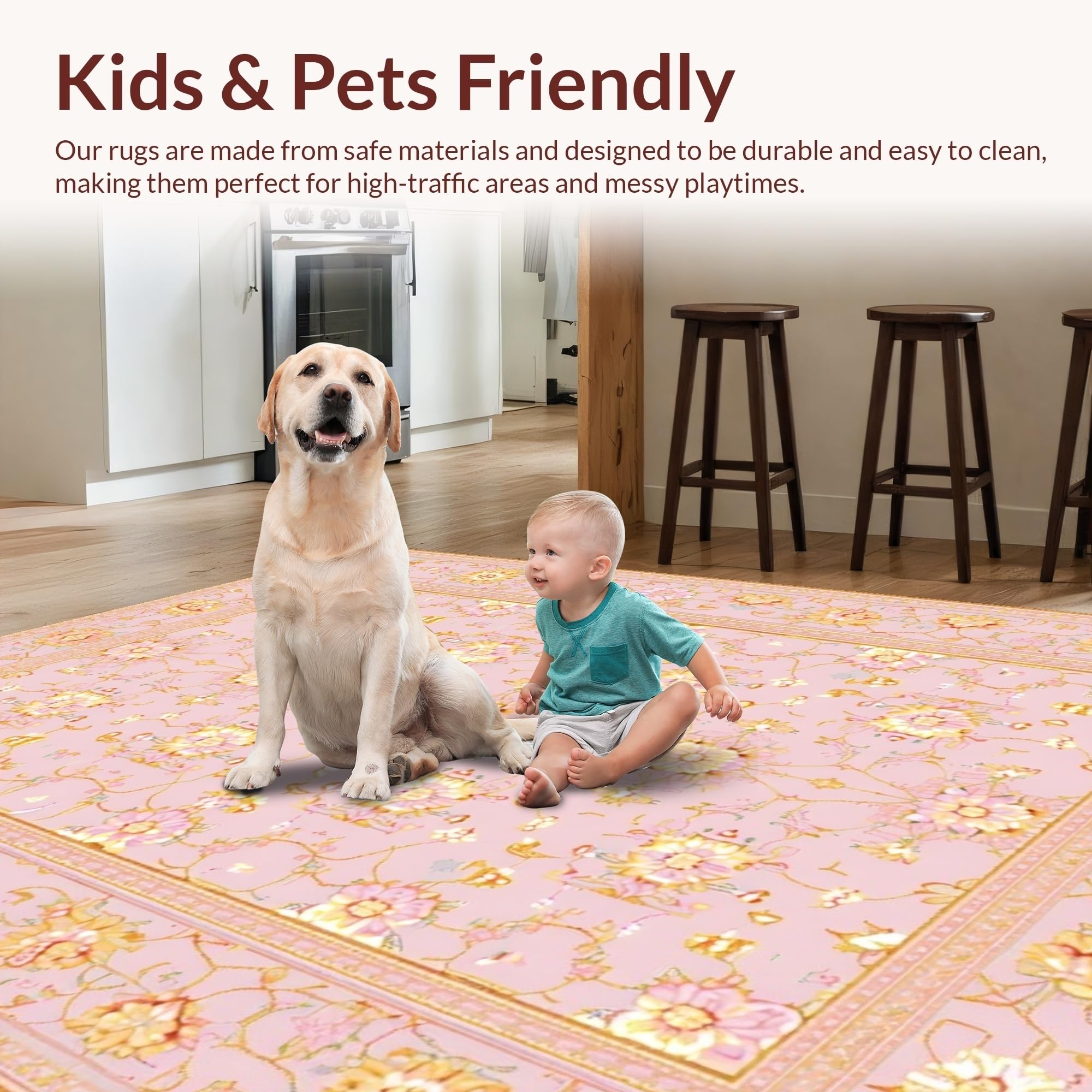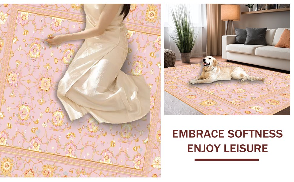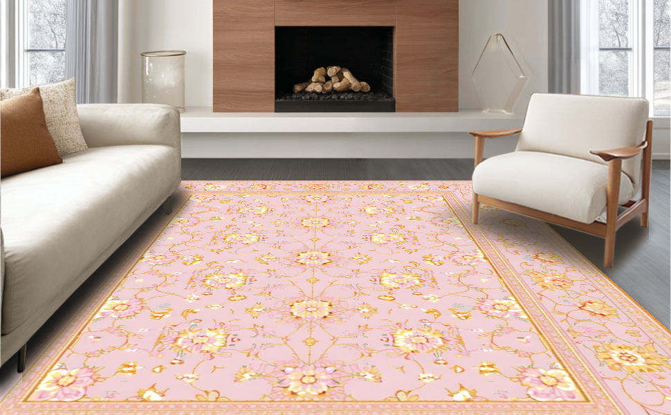 Ultra Soft Area Rug, Non Slip, Stain Resistant, Washable Area Rugs for Living Room, Bedroom, Stylish Vibrant Geometric Floral Elements(Pink) Overview: