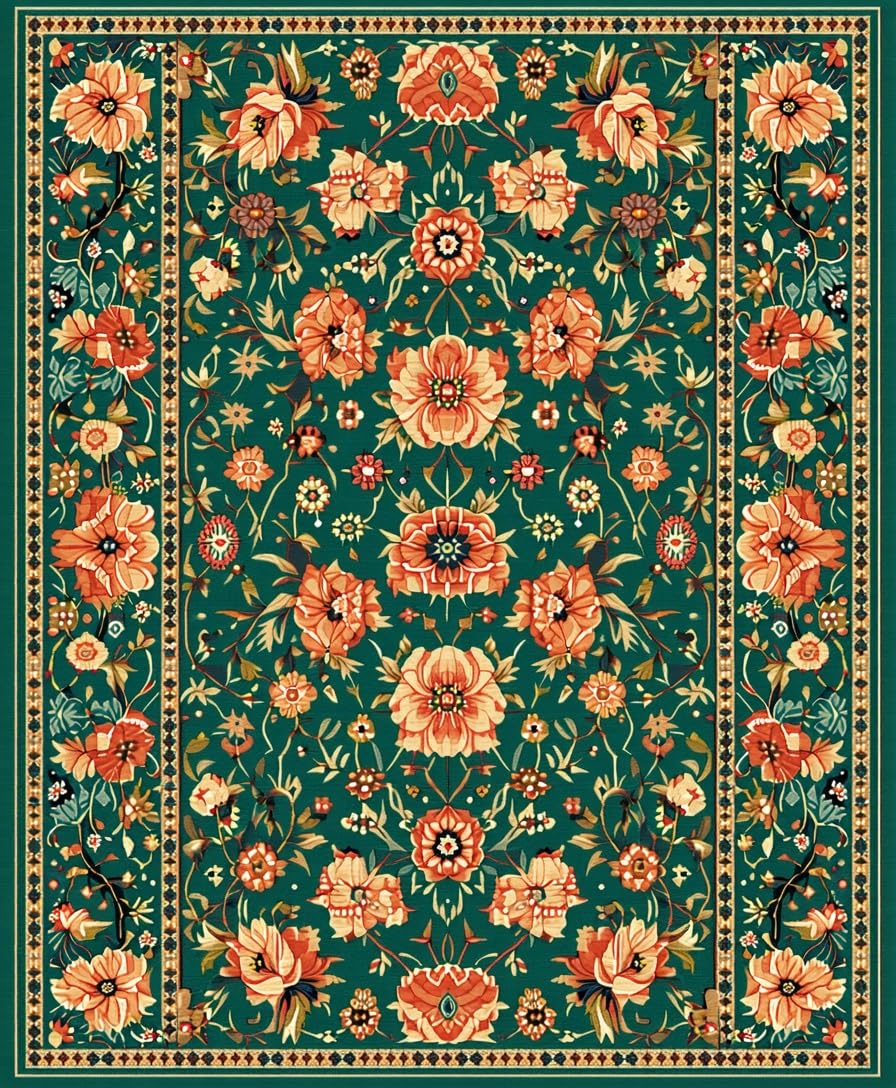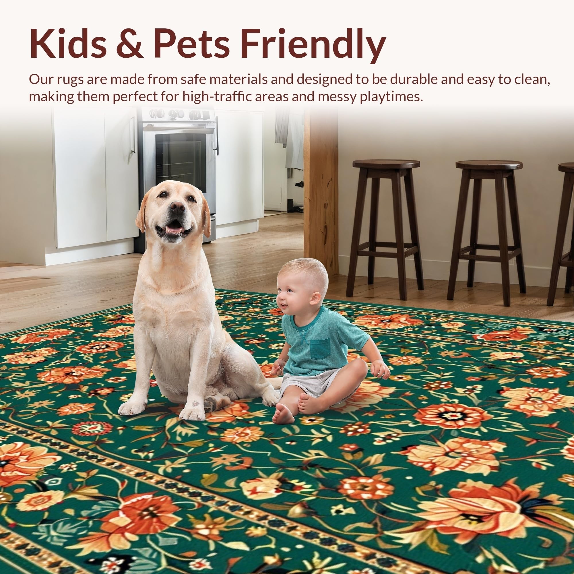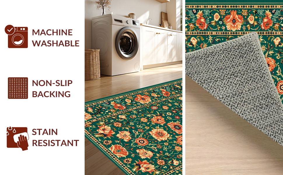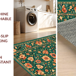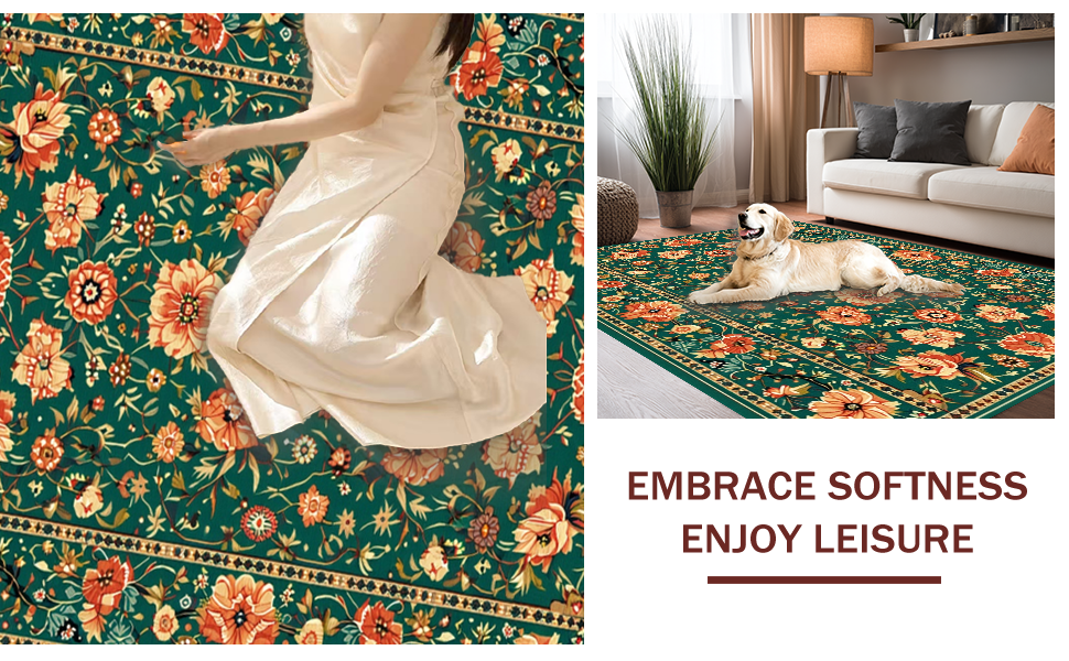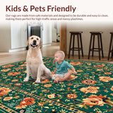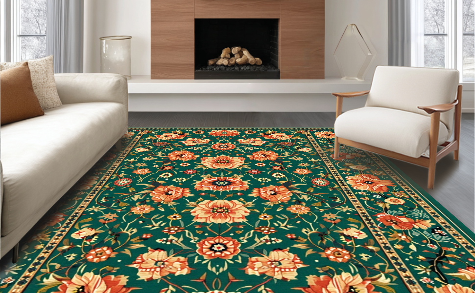 Ultra Soft Area Rug, Non Slip, Stain Resistant, Washable Area Rugs for Living Room, Bedroom, Stylish Vintage Flower Pattern(Green) Overview: