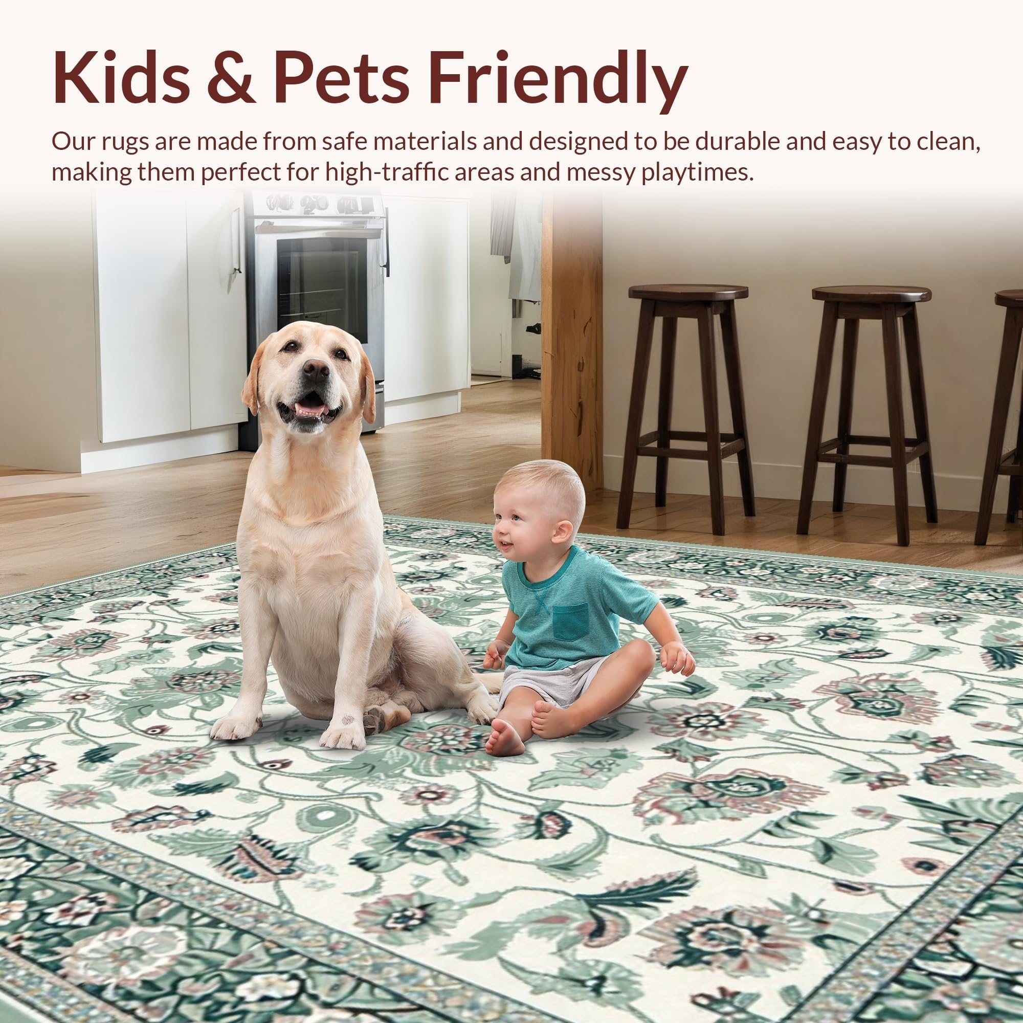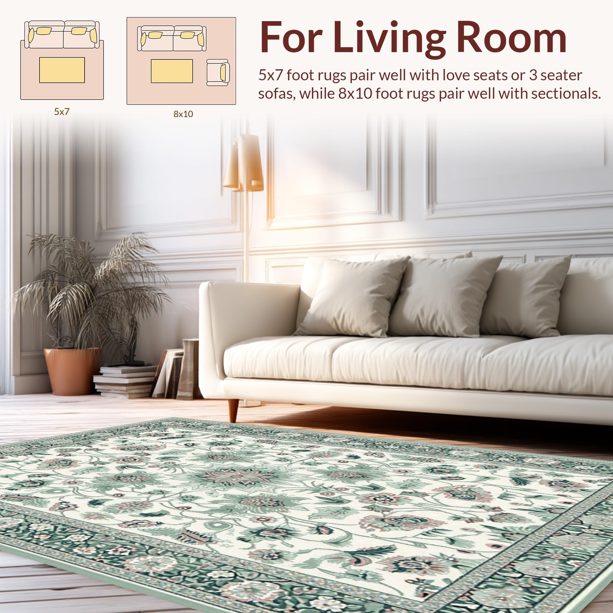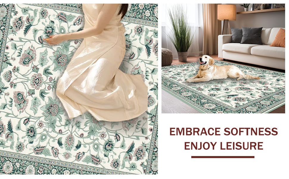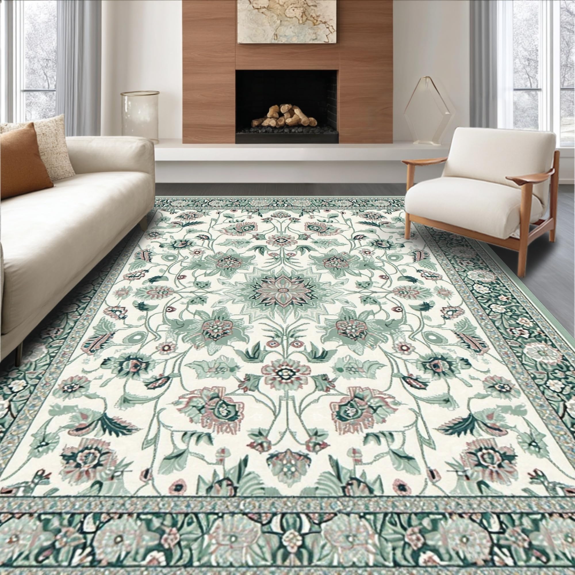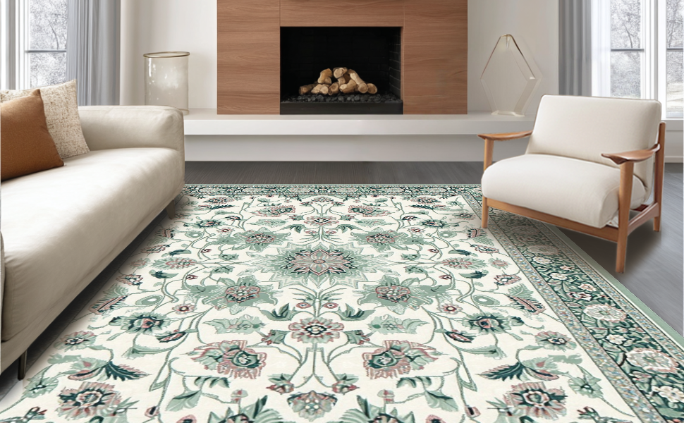 Ultra Soft Area Rug, Non Slip, Stain Resistant, Washable Area Rugs for Living Room, Bedroom, Stylish Vintage Garden Theme(Ivory) Overview: