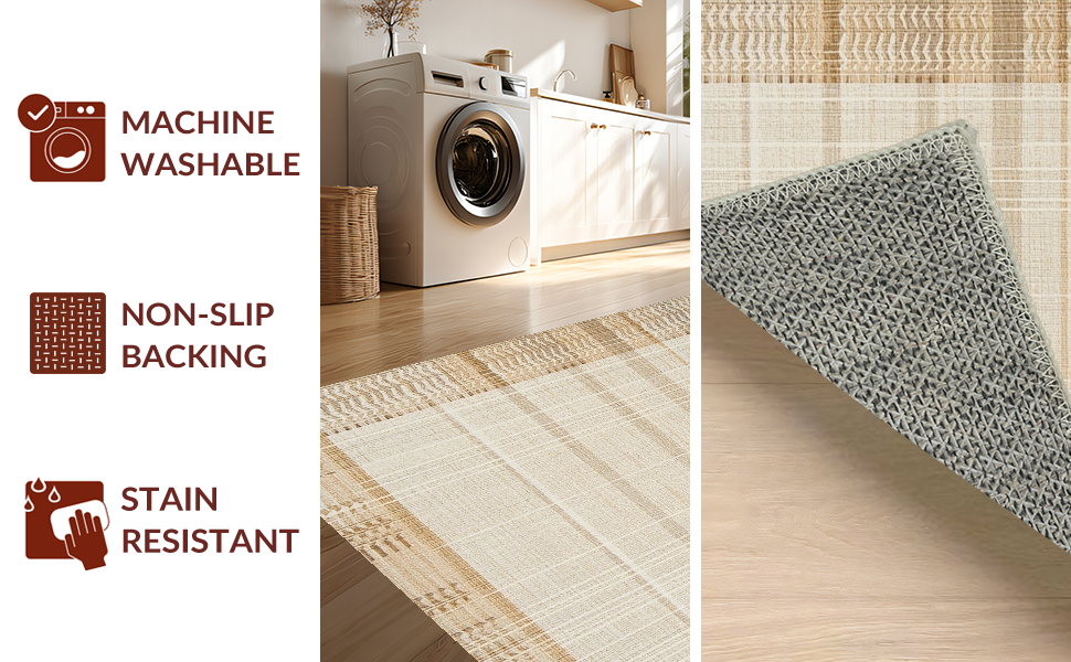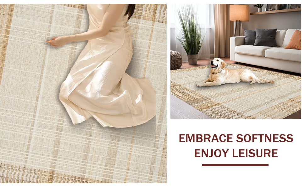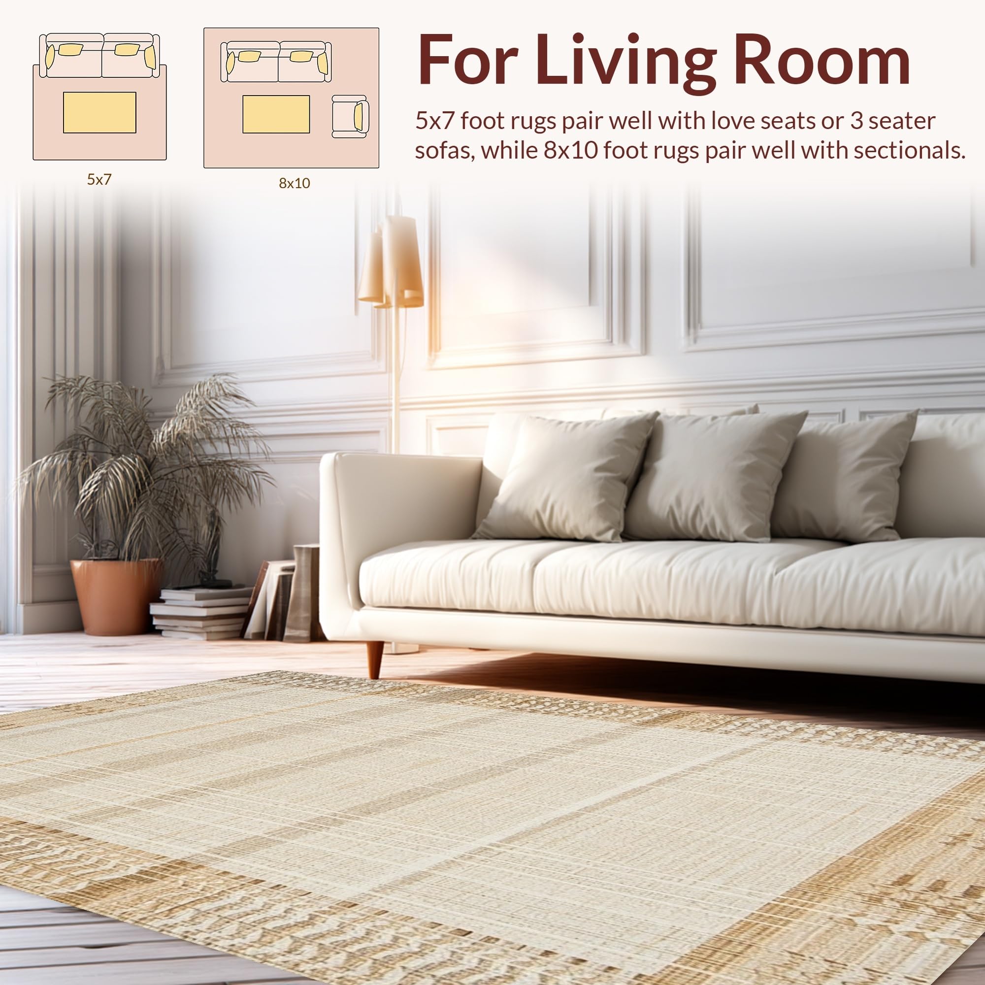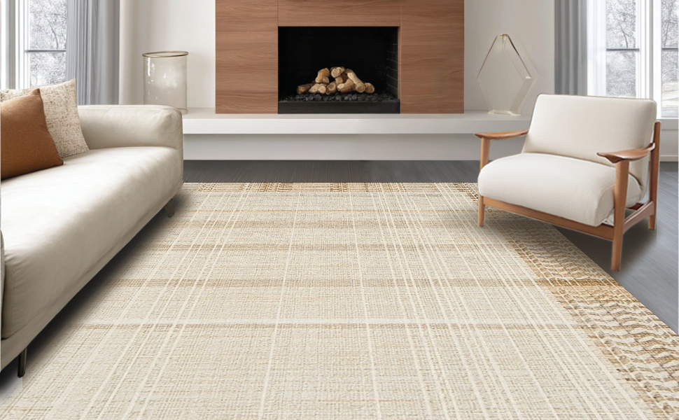 Ultra Soft Area Rug, Non Slip, Stain Resistant, Washable Area Rugs for Living Room, Bedroom, Stylish Warm Tones Herringbone(Beige) Overview: