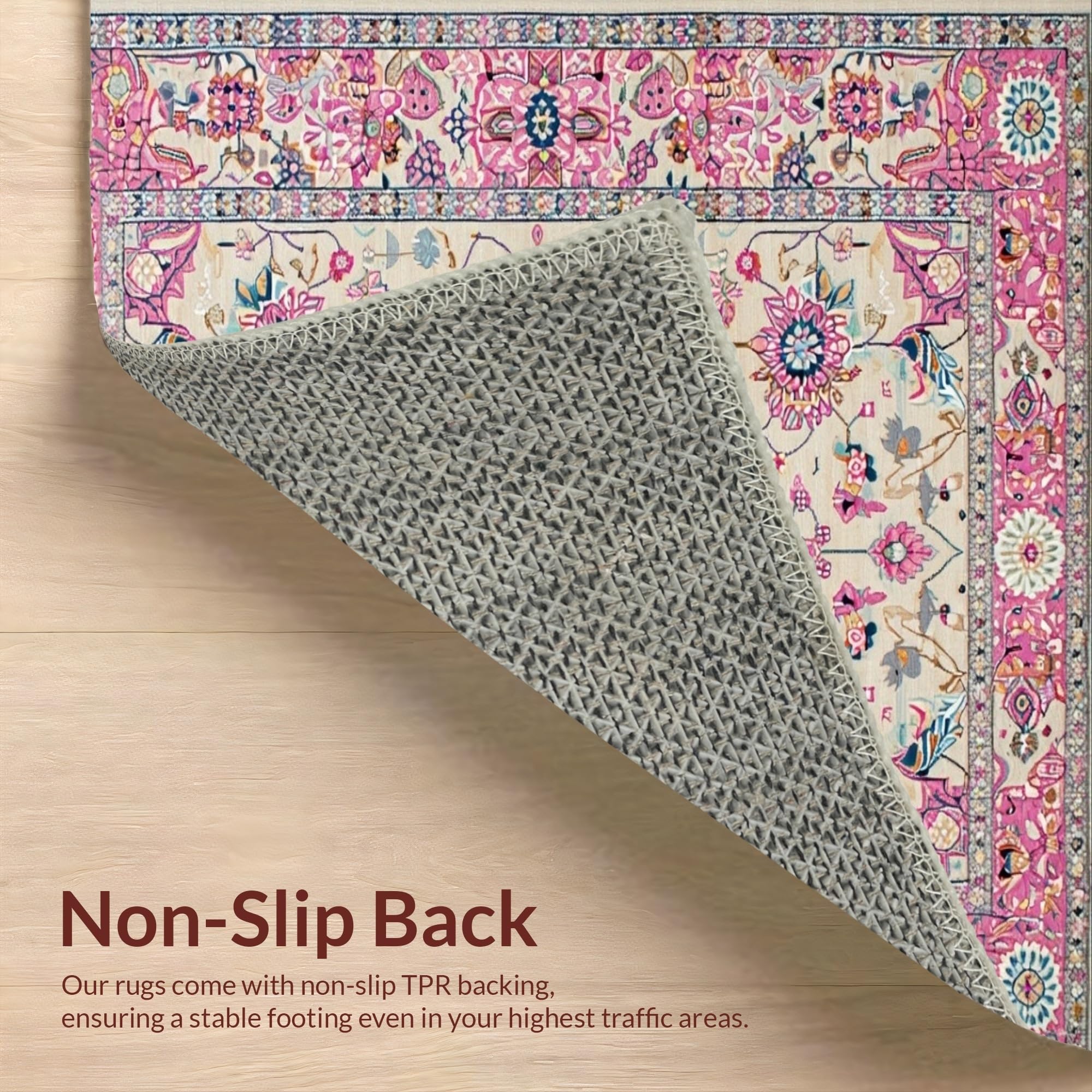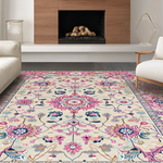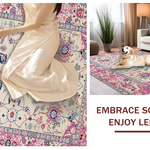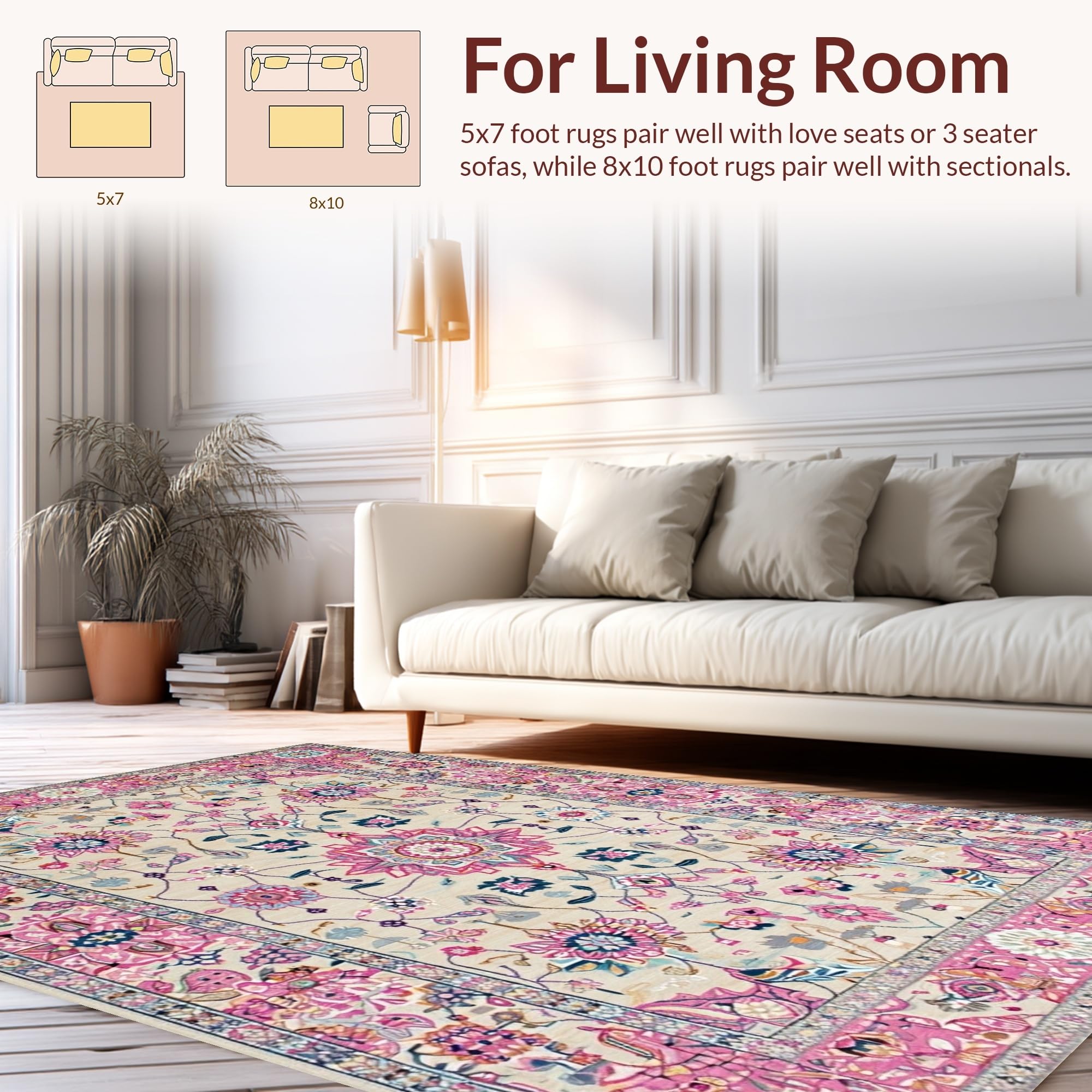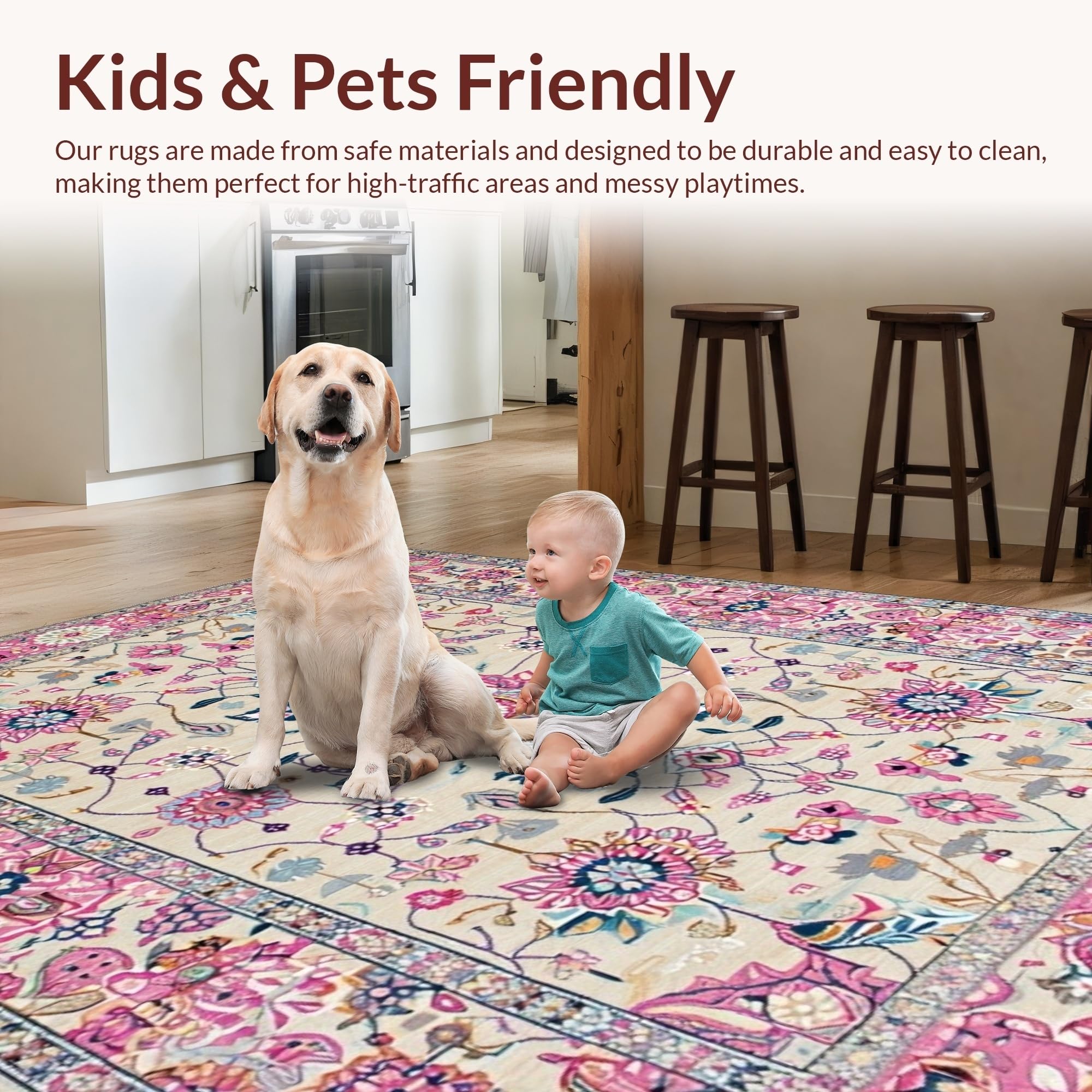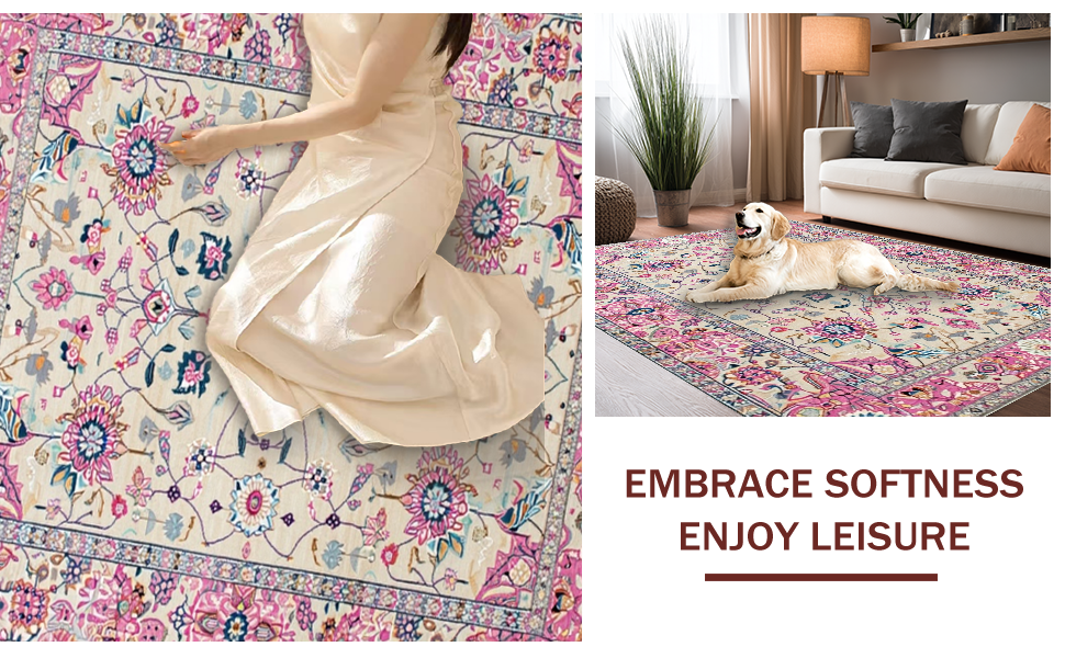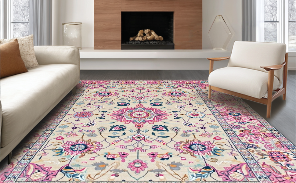 Ultra Soft Area Rug, Non Slip, Stain Resistant, Washable Area Rugs for Living Room, Bedroom, Subtle Geometric Petal Design(Ivory) Overview: