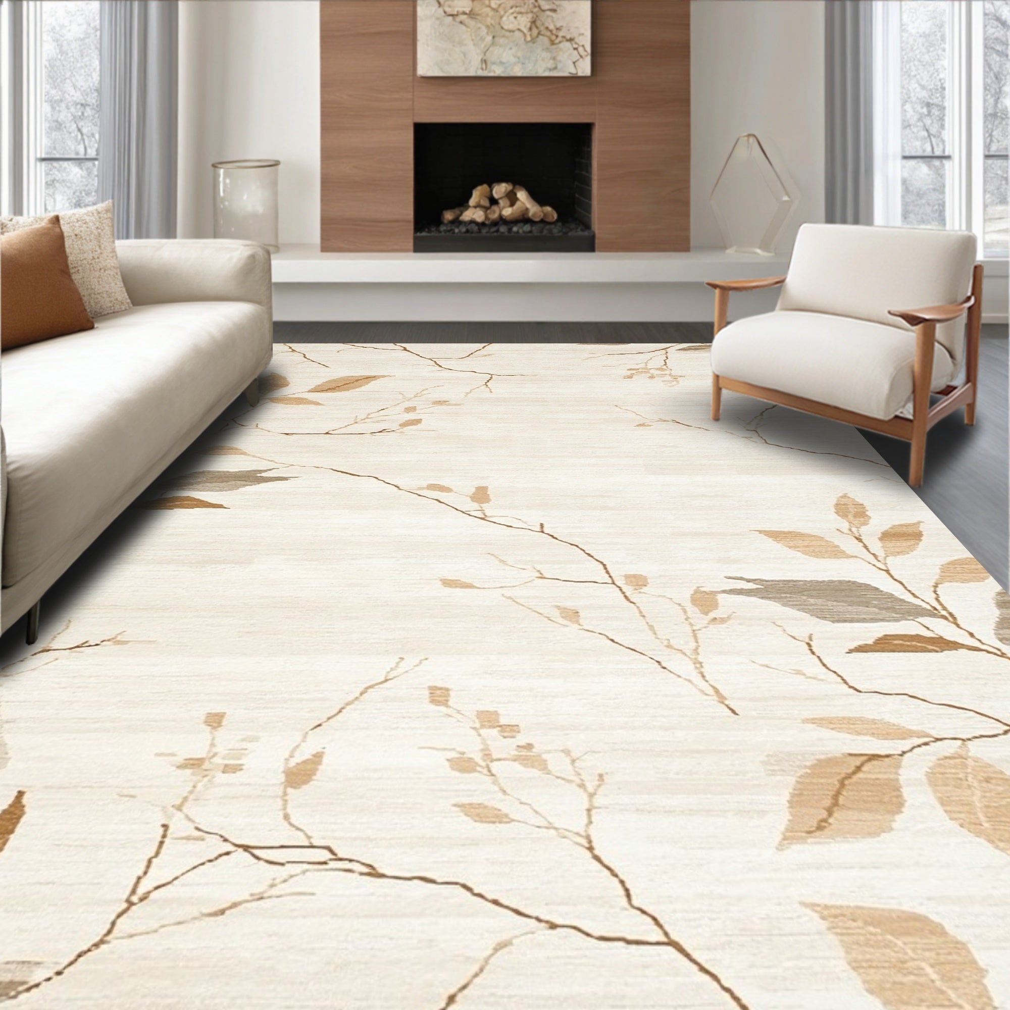 Ultra Soft Area Rug, Non Slip, Stain Resistant, Washable Area Rugs for Living Room, Bedroom, Subtle Sandstone Beige with Leaf Playmate(Beige) Overview: