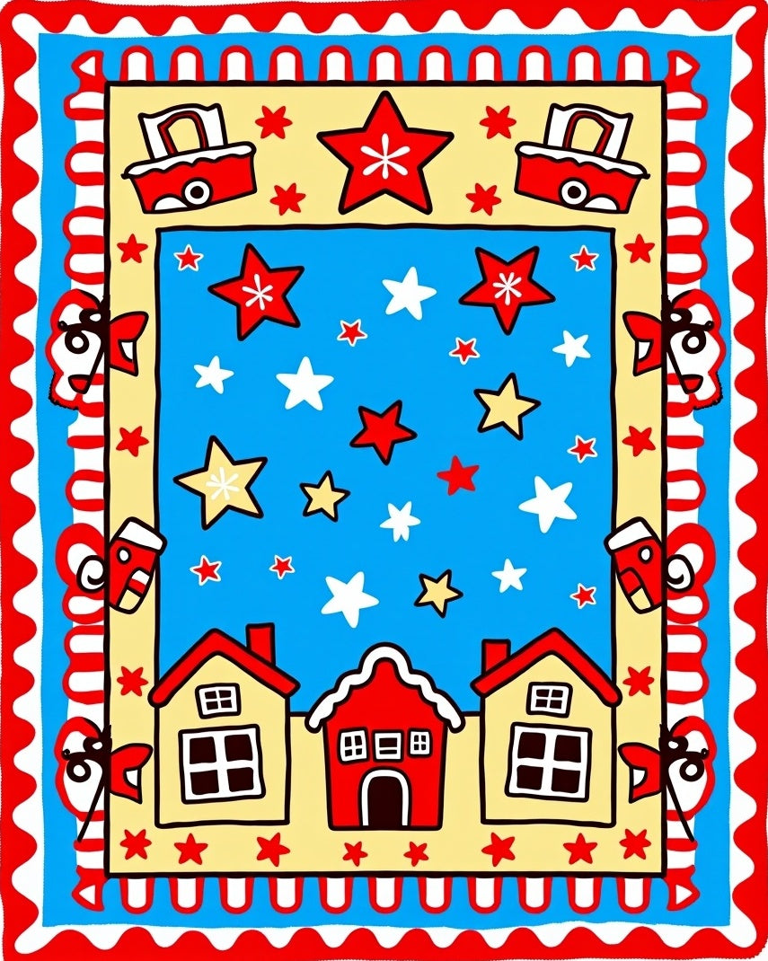 Sugary Cottage Delight with Peppermint Stripe and Holiday Motif(Red)
