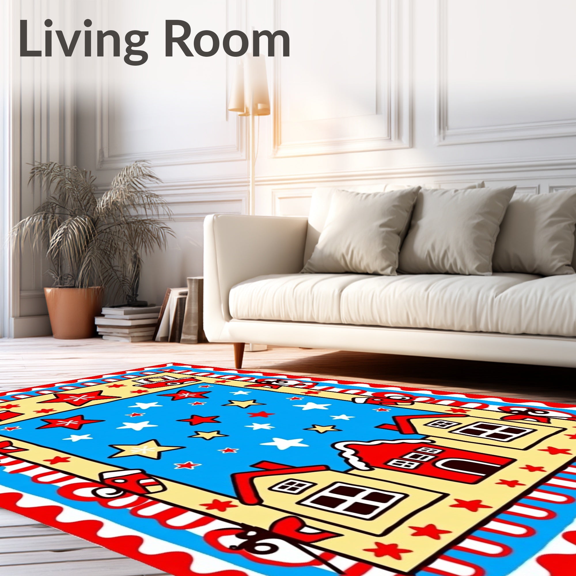 Ultra Soft Area Rug, Non Slip, Stain Resistant, Washable Area Rugs for Living Room, Bedroom, Sugary Cottage Delight with Peppermint Stripe and Holiday Motif(Red) Overview: