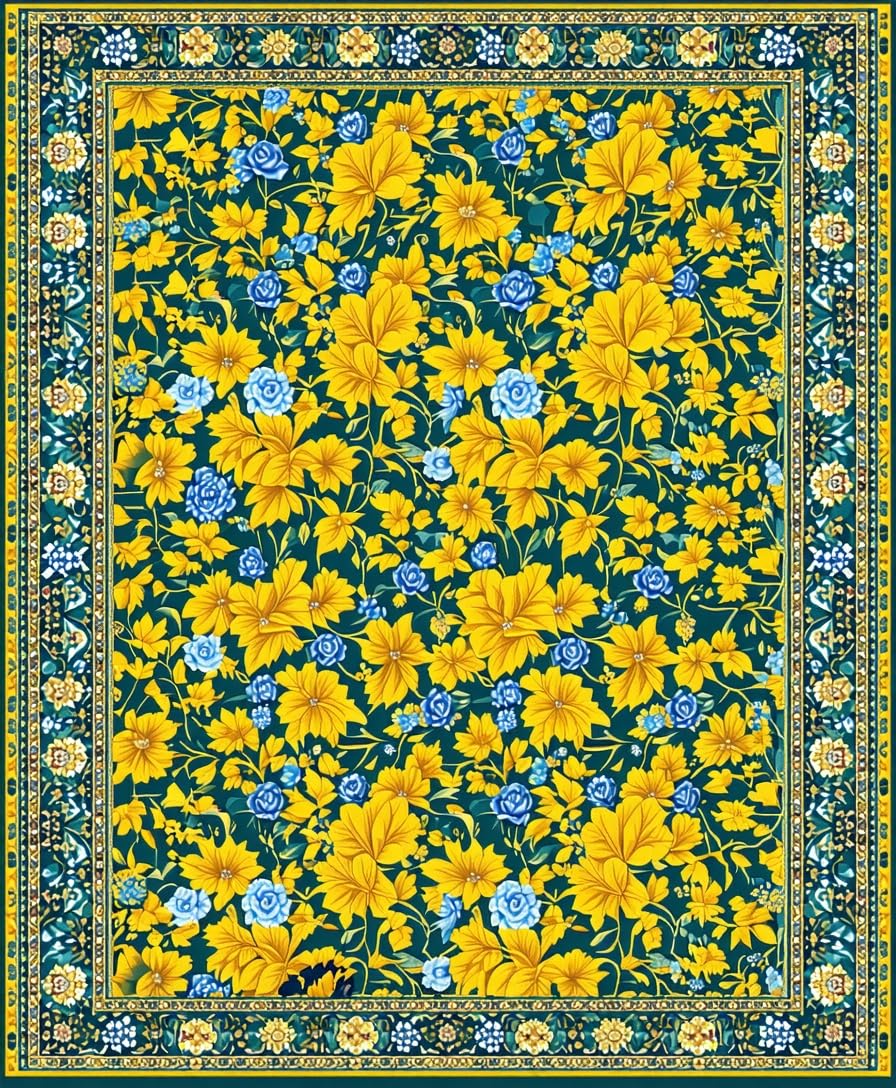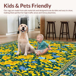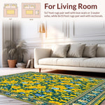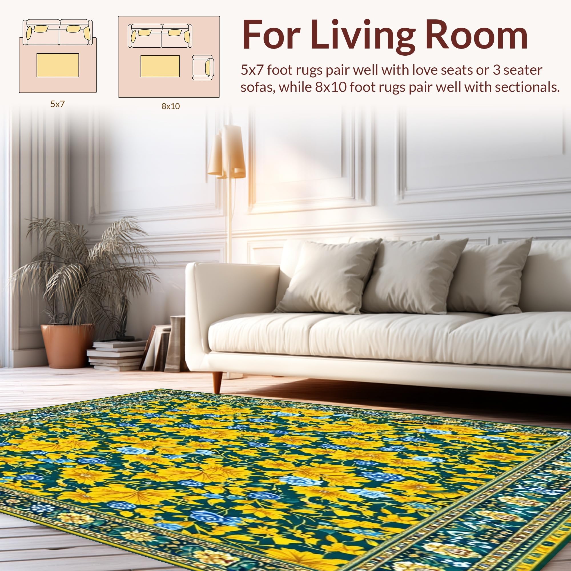 Ultra Soft Area Rug, Non Slip, Stain Resistant, Washable Area Rugs for Living Room, Bedroom, Summer Floral Bath with Yellow and Blue Leaves(Green) Overview: