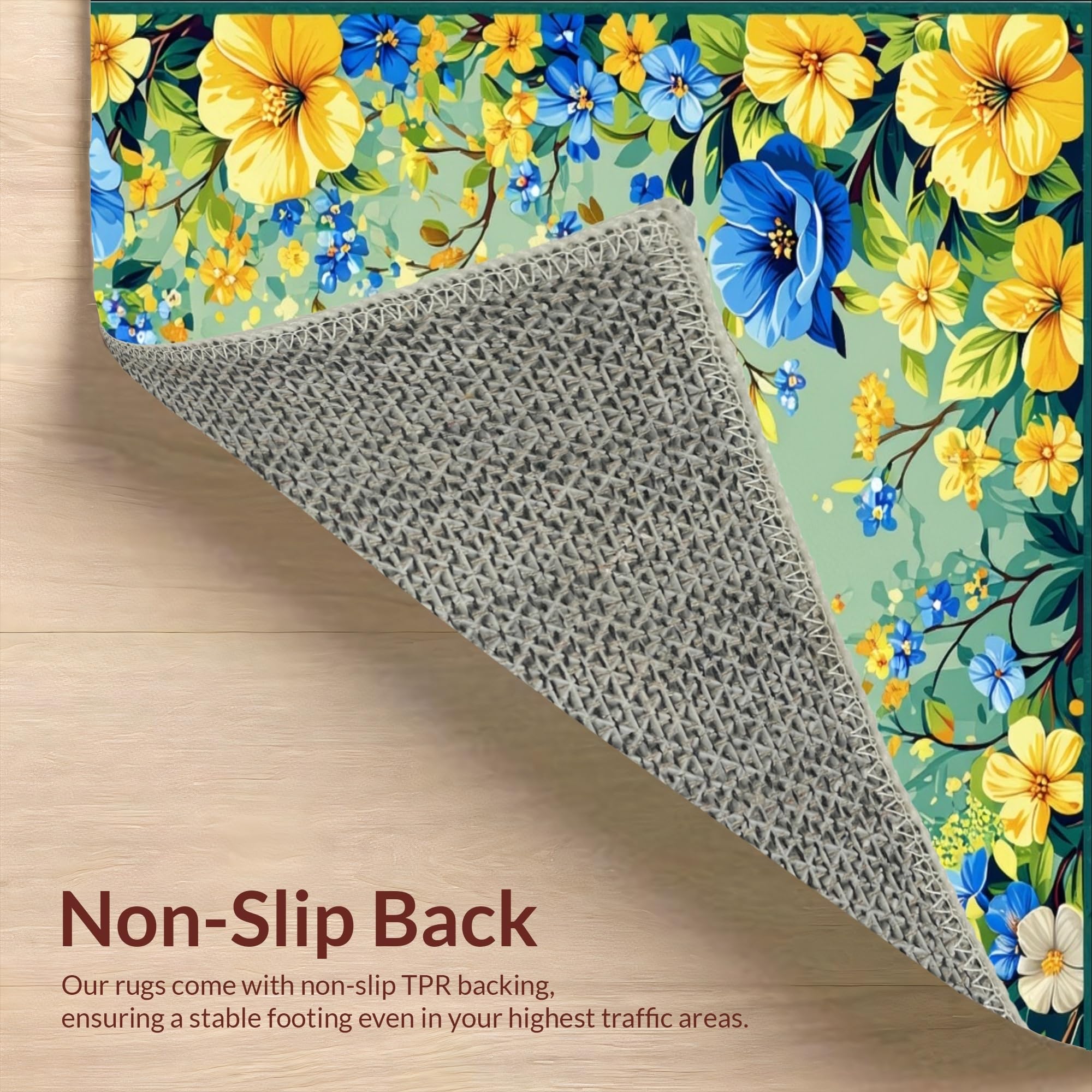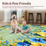 Ultra Soft Area Rug, Non Slip, Stain Resistant, Washable Area Rugs for Living Room, Bedroom, Summer Floral Bath(Blue) Overview: