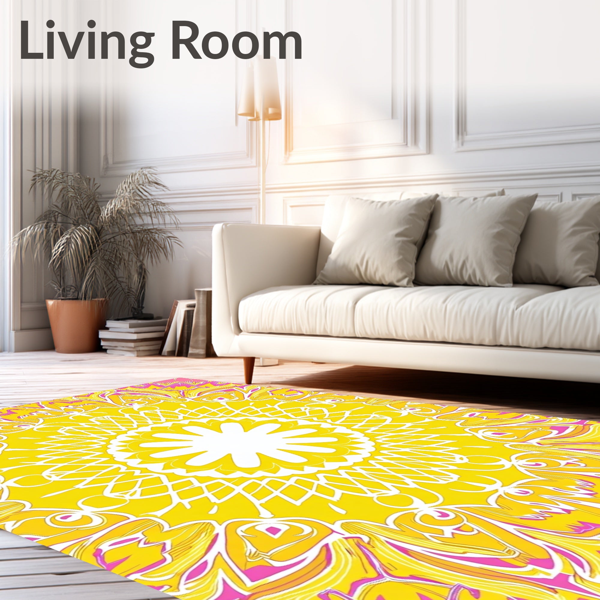 Flatwoven High Traffic Area Rug, Sunburst Medallion Interlocking with Dreamy Ombre Motifs, Non Slip, Stain Resistant, Washable Area Rugs for Living Room, Bedroom (Yellow) Overview: