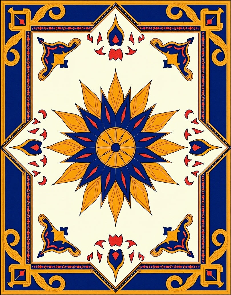 Sunburst Medallion Mosaic with Art Flourish Accents(Yellow)