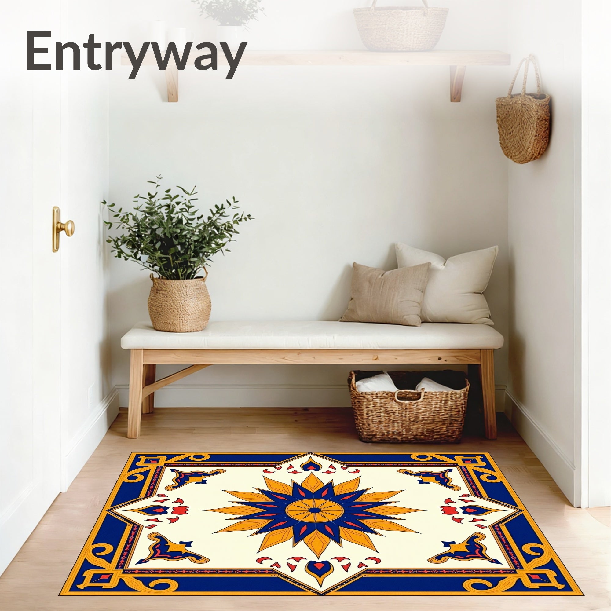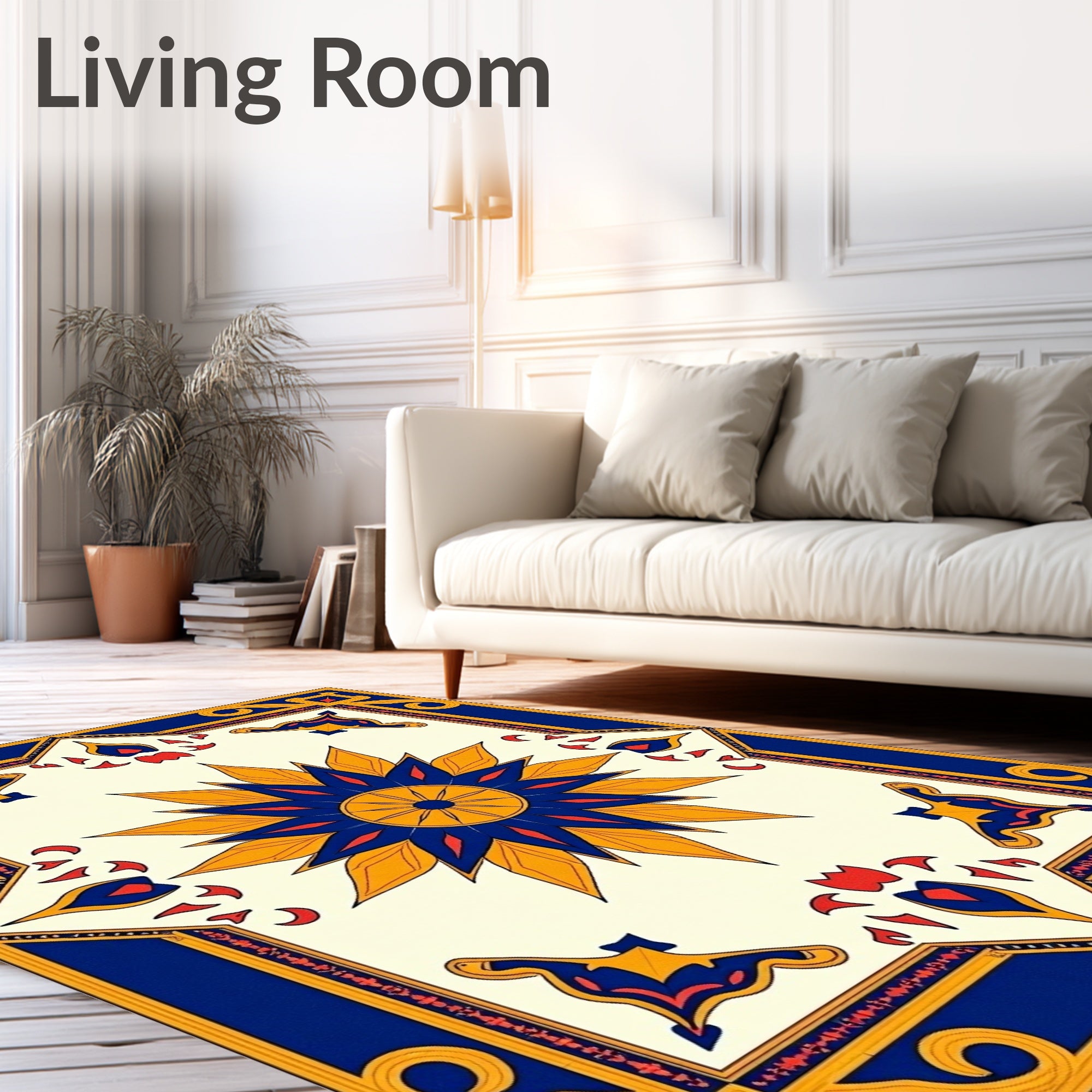 Ultra Soft Area Rug, Non Slip, Stain Resistant, Washable Area Rugs for Living Room, Bedroom, Sunburst Medallion Mosaic with Art Flourish Accents(Yellow) Overview: