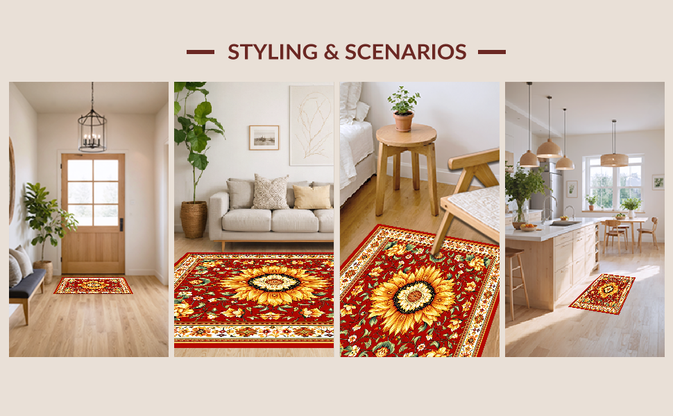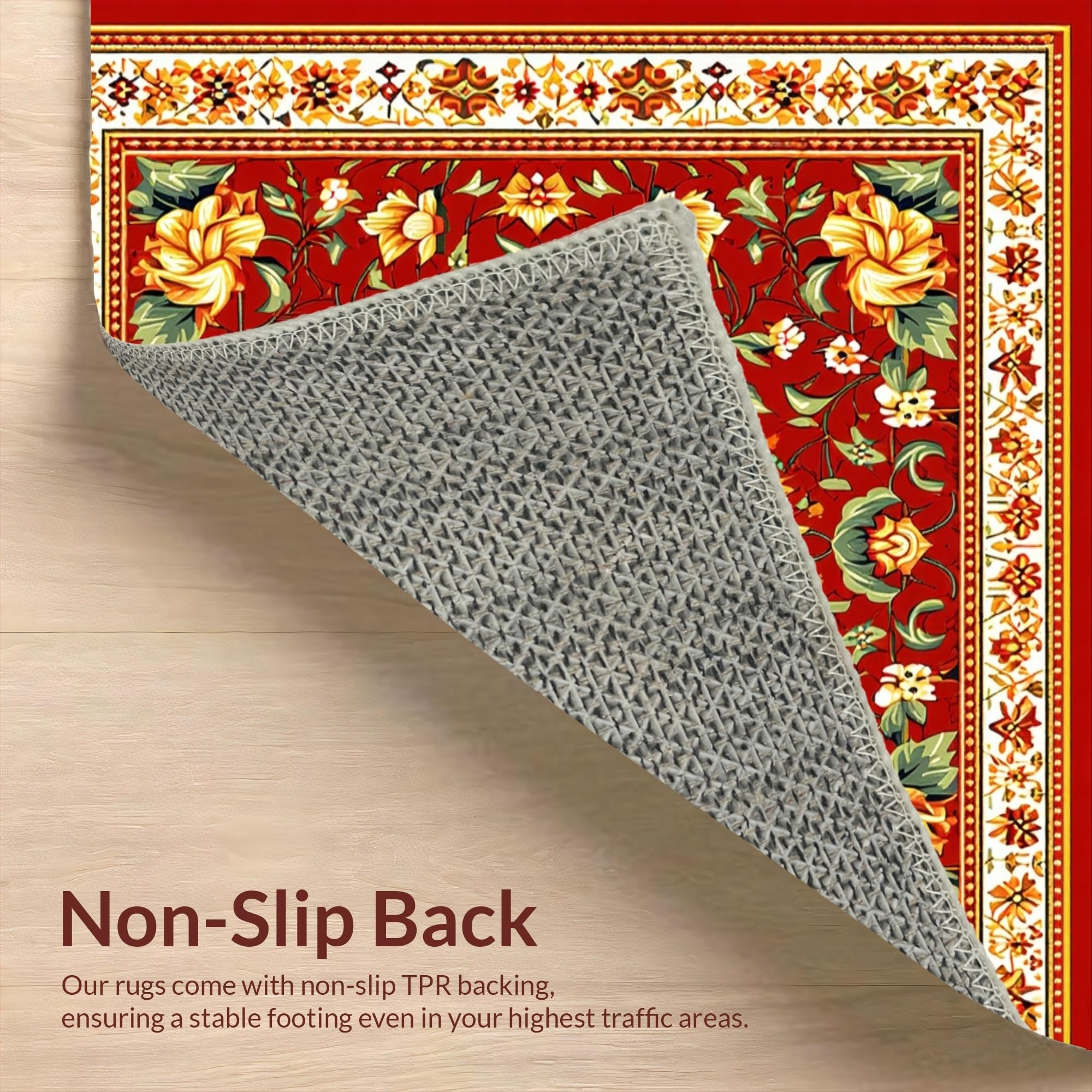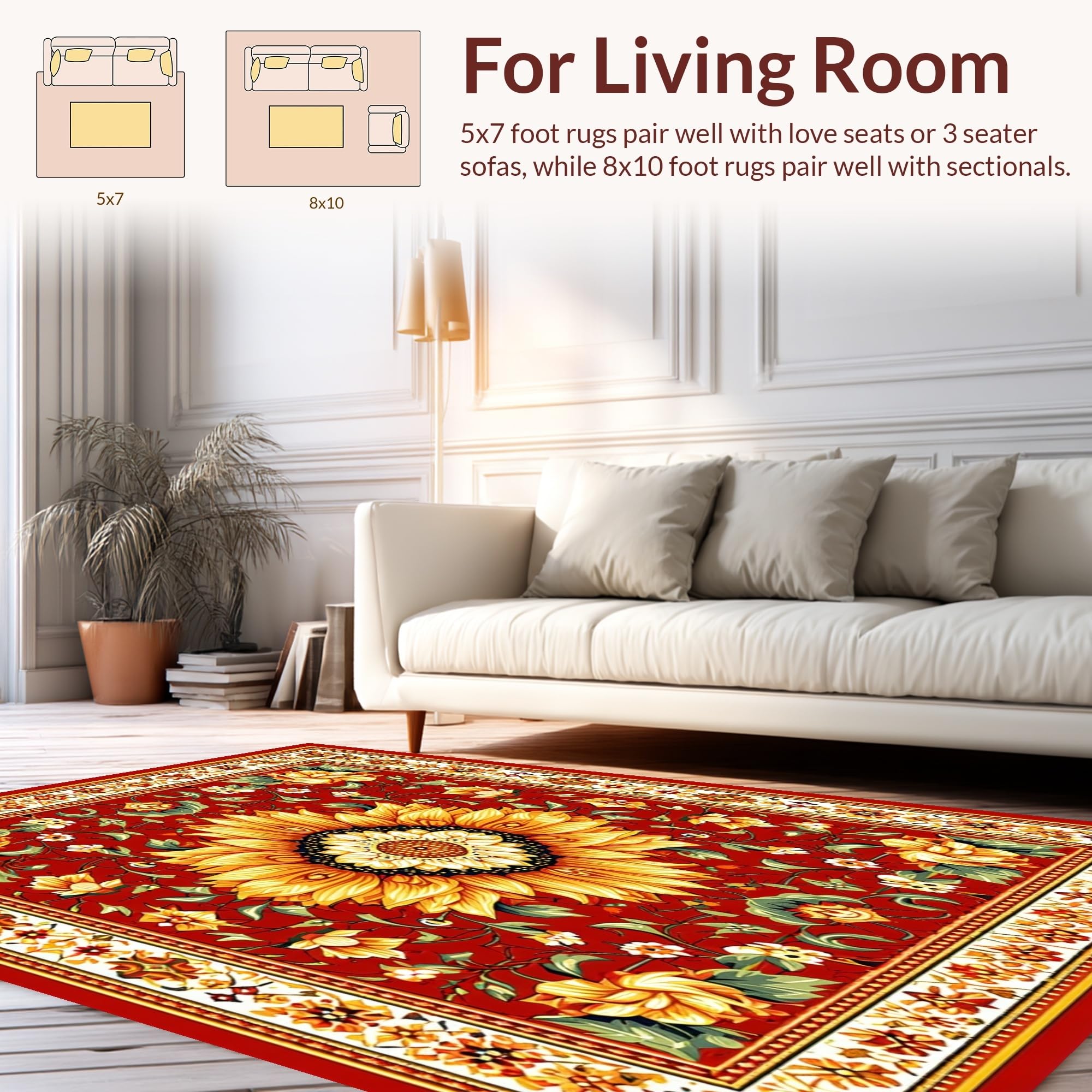 Ultra Soft Area Rug, Non Slip, Stain Resistant, Washable Area Rugs for Living Room, Bedroom, Sunkissed Round Nature Inspired Look(Red) Overview: