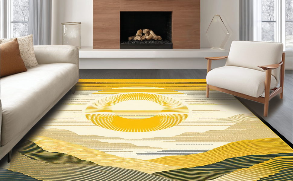 Ultra Soft Area Rug, Non Slip, Stain Resistant, Washable Area Rugs for Living Room, Bedroom, Sunny Ombre Abstract Allure(Yellow) Overview: