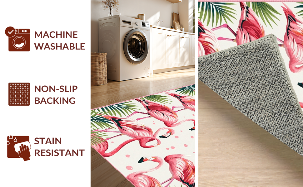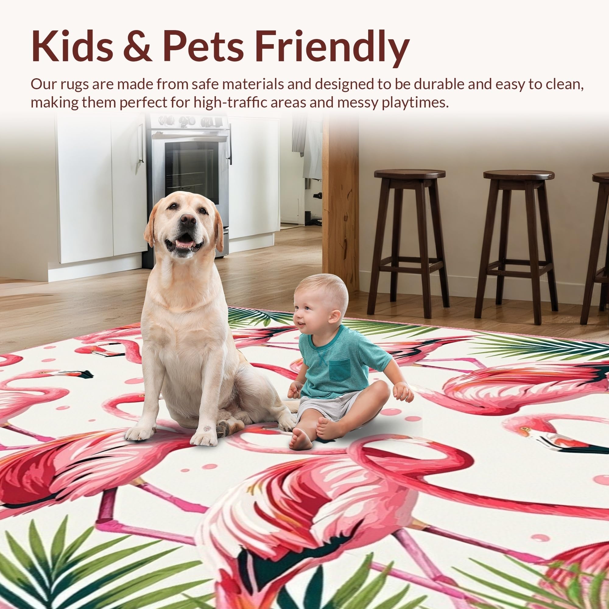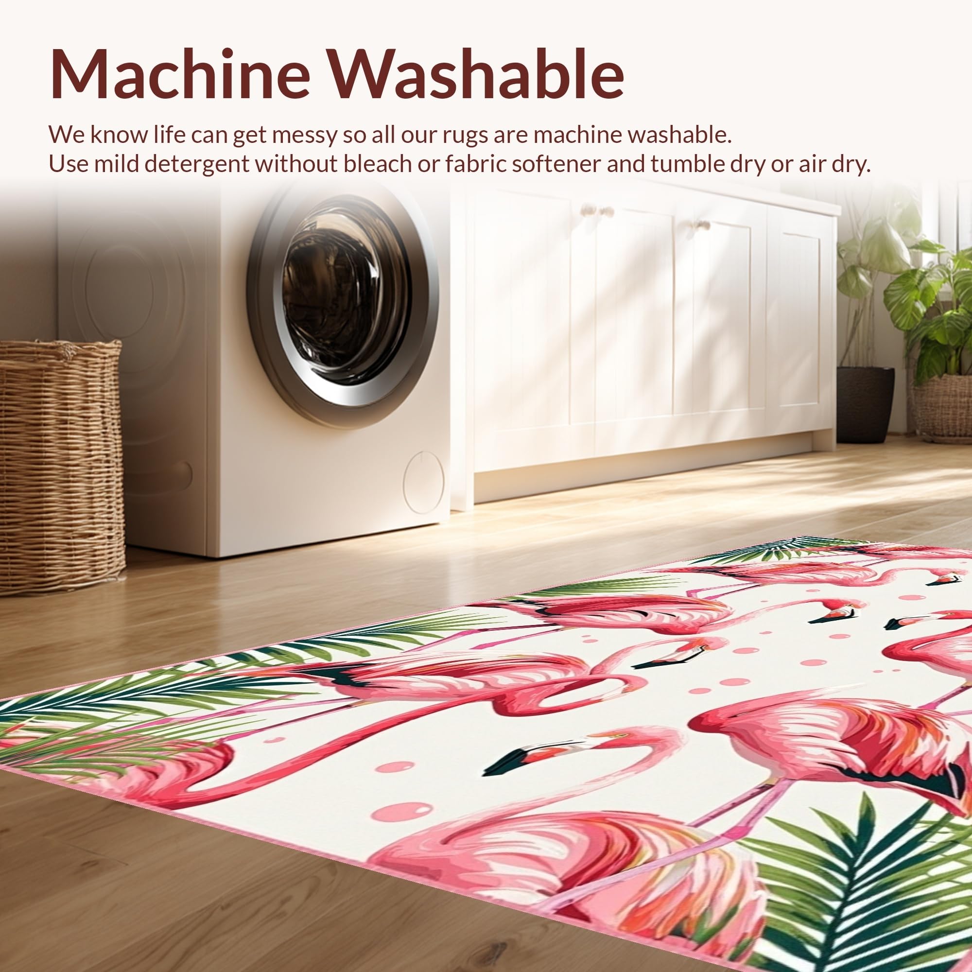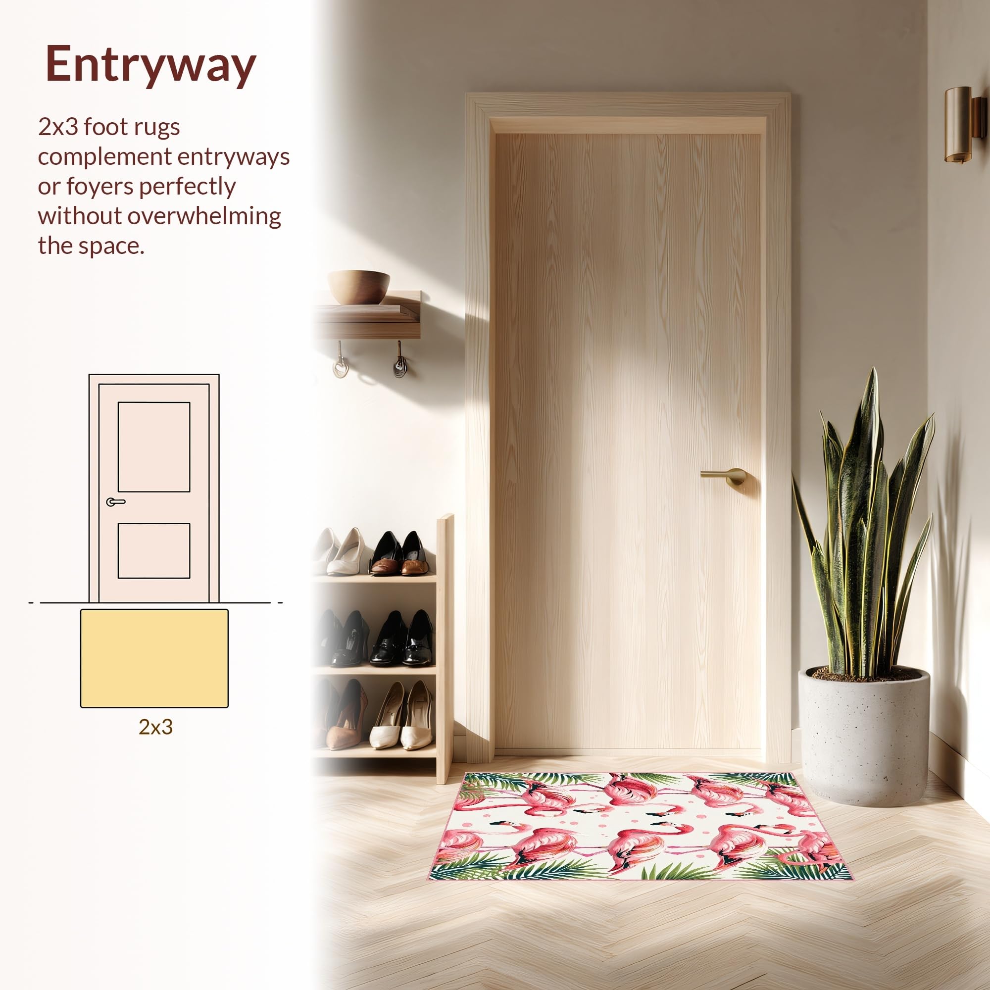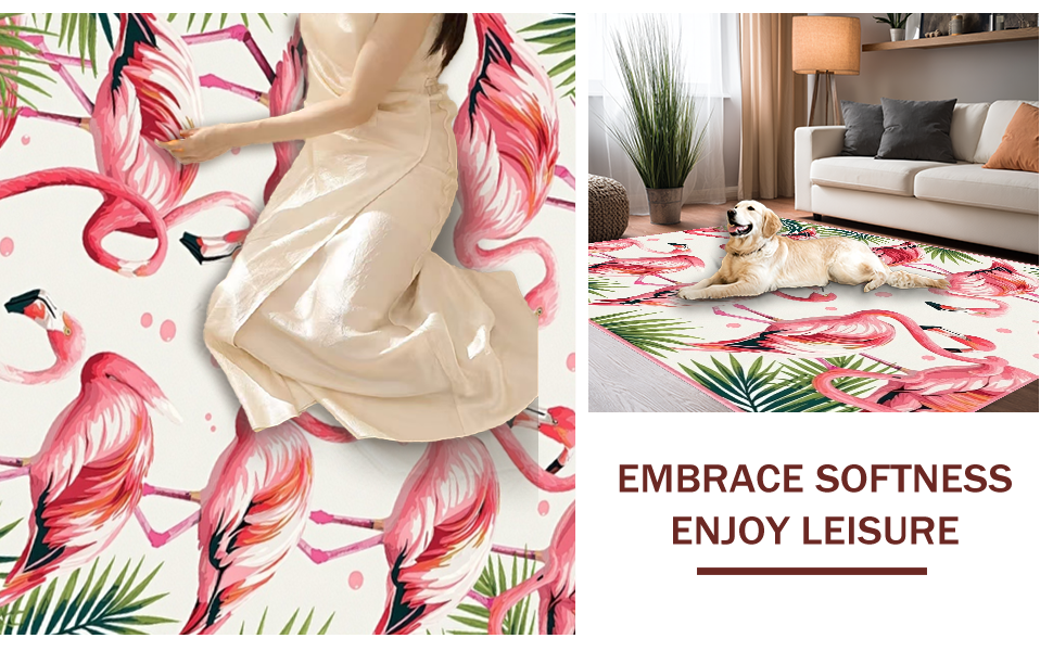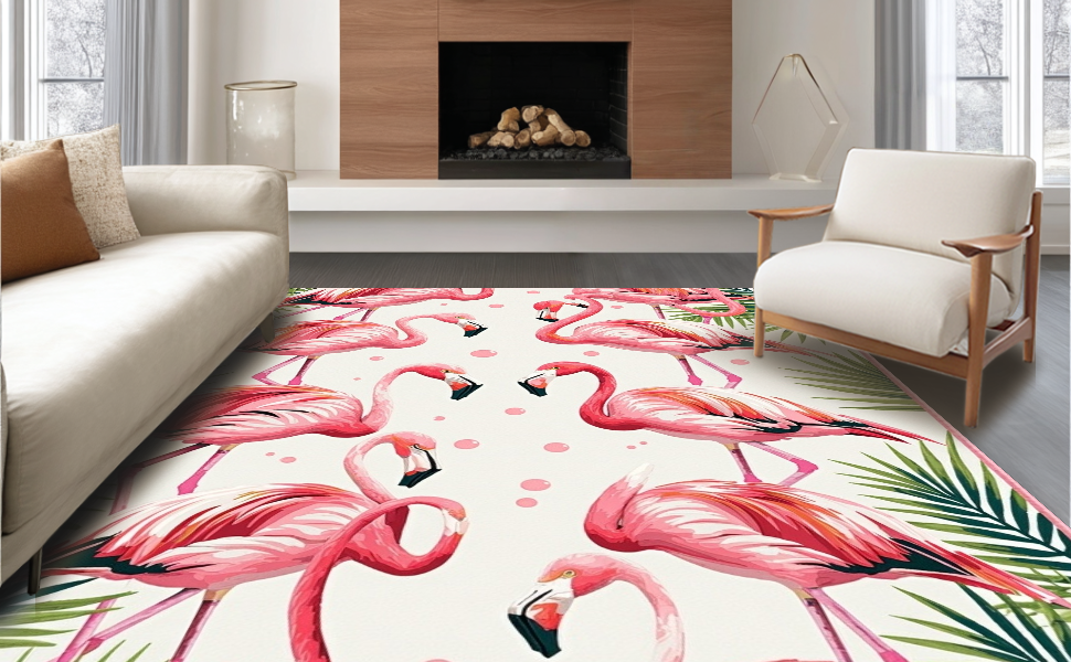 Ultra Soft Area Rug, Non Slip, Stain Resistant, Washable Area Rugs for Living Room, Bedroom, Sunny Pastel Flamingo Patterns(Pink) Overview: