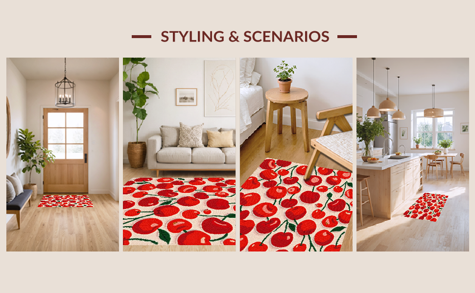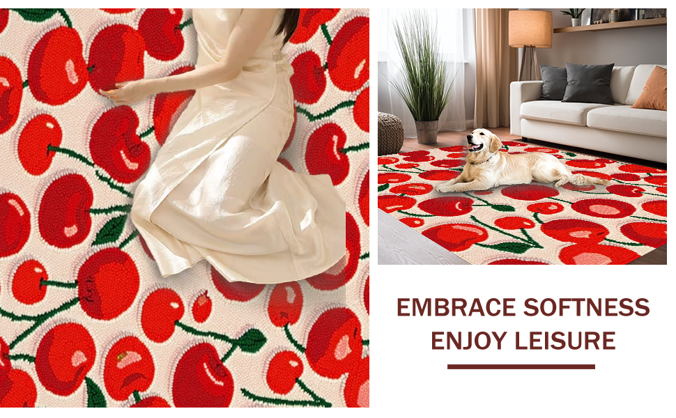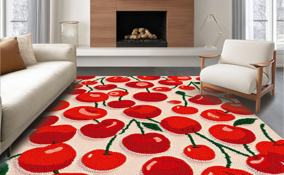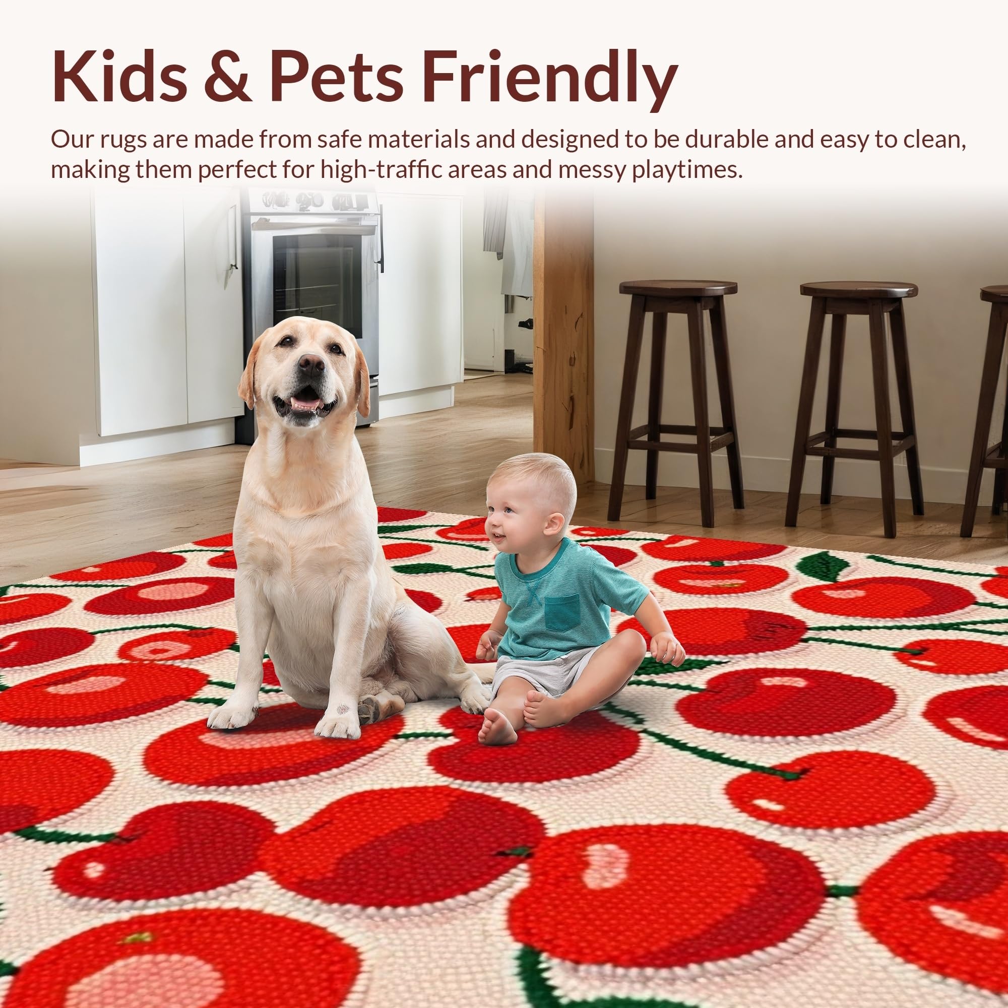 Ultra Soft Area Rug, Non Slip, Stain Resistant, Washable Area Rugs for Living Room, Bedroom, Sunny Red Botanical Design(Red) Overview: