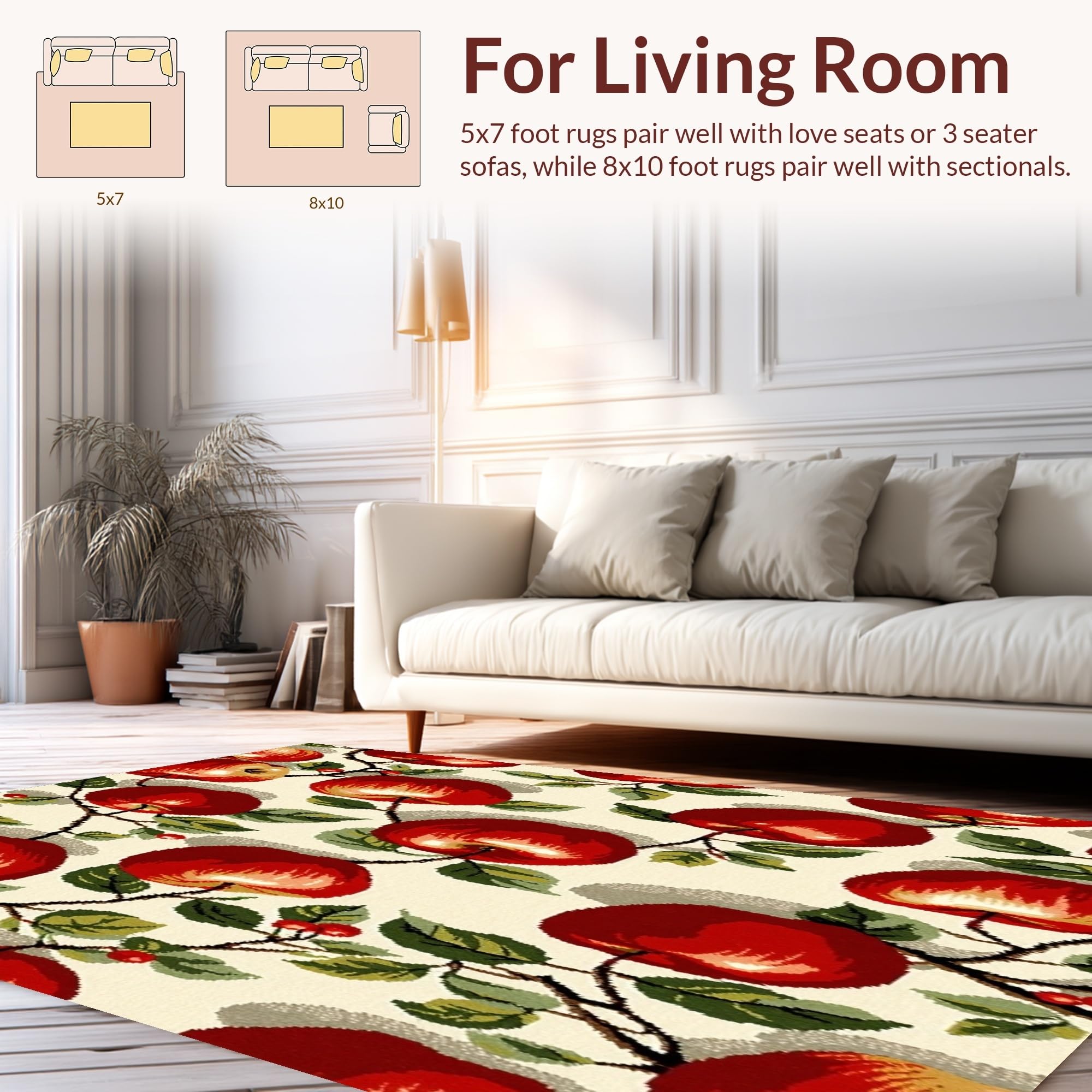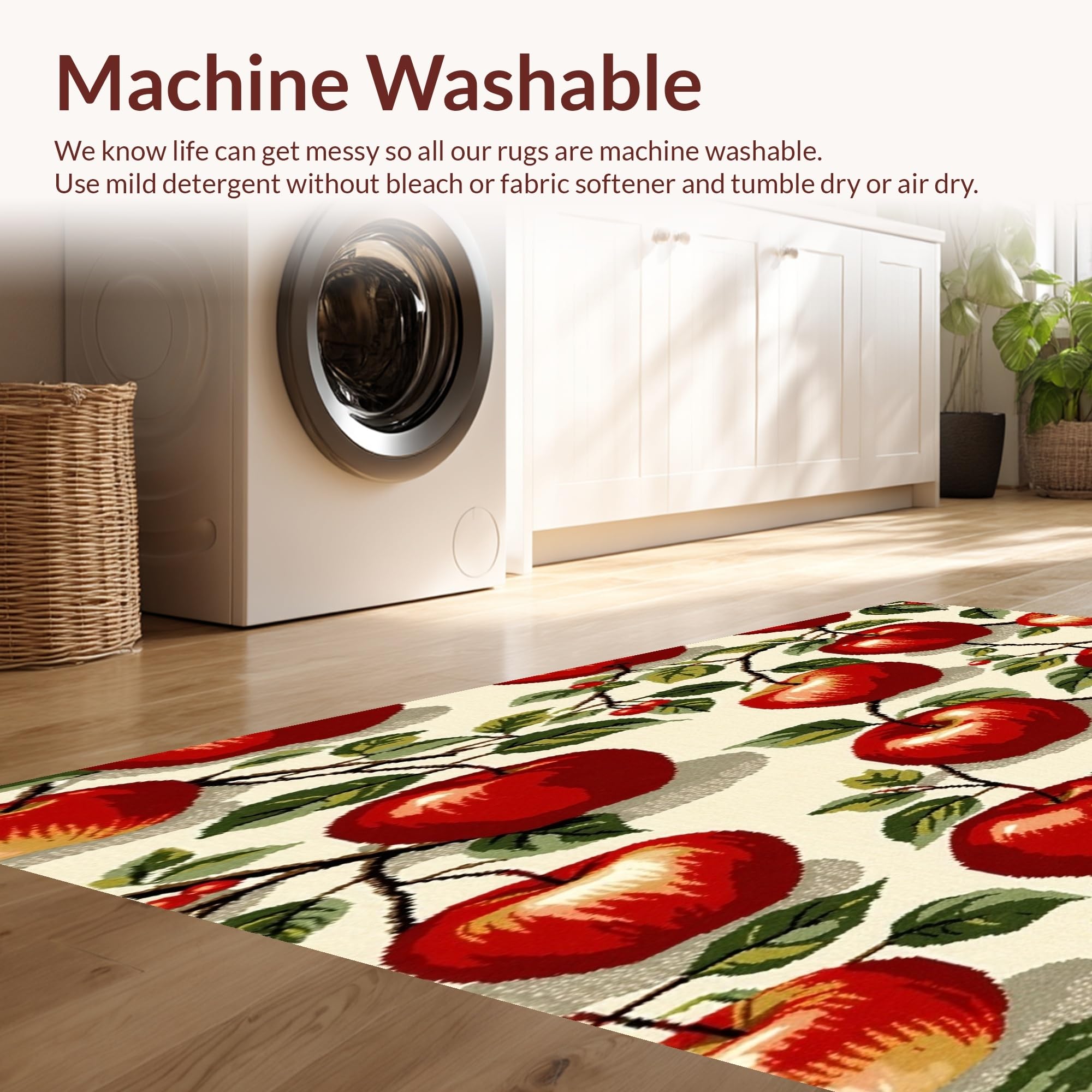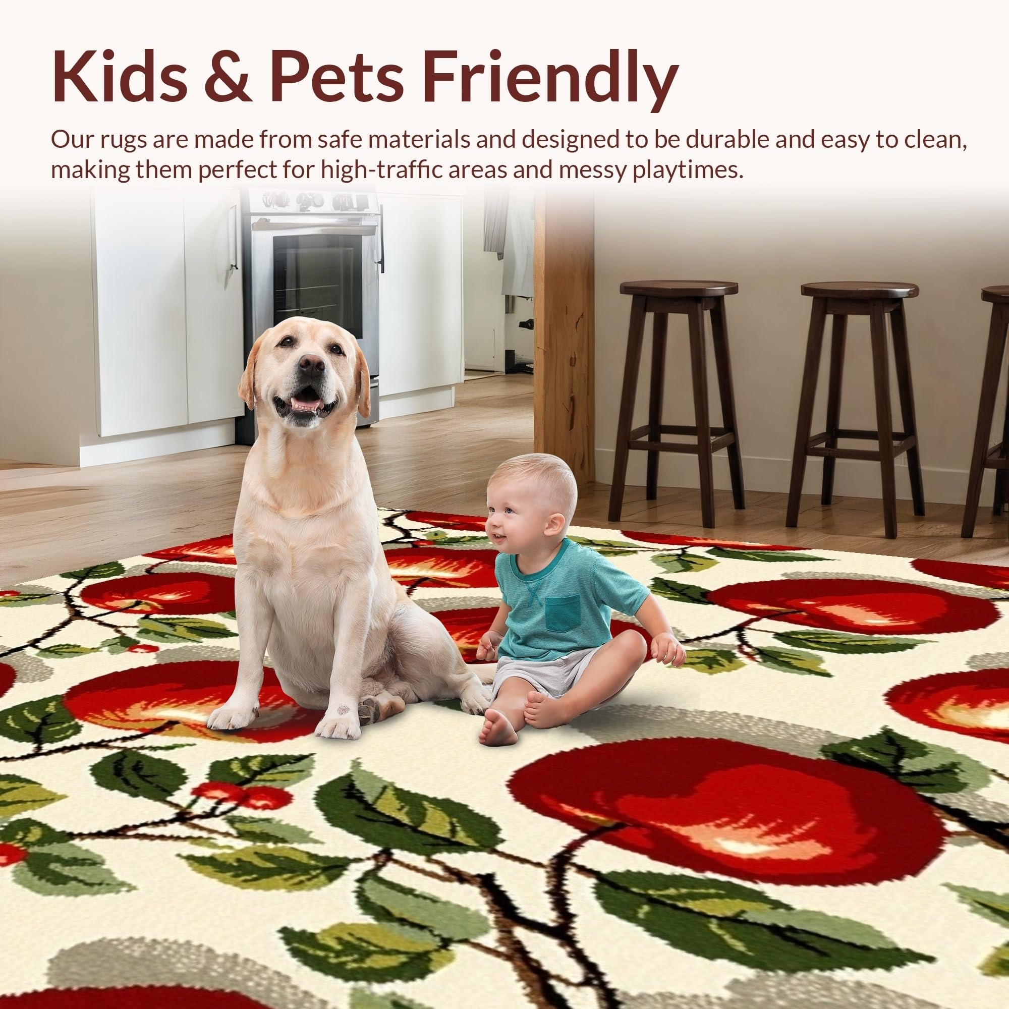 Ultra Soft Area Rug, Non Slip, Stain Resistant, Washable Area Rugs for Living Room, Bedroom, Sweet Apple Design Kitchen Non Slip Floor Mat Machine(Red) Overview:
