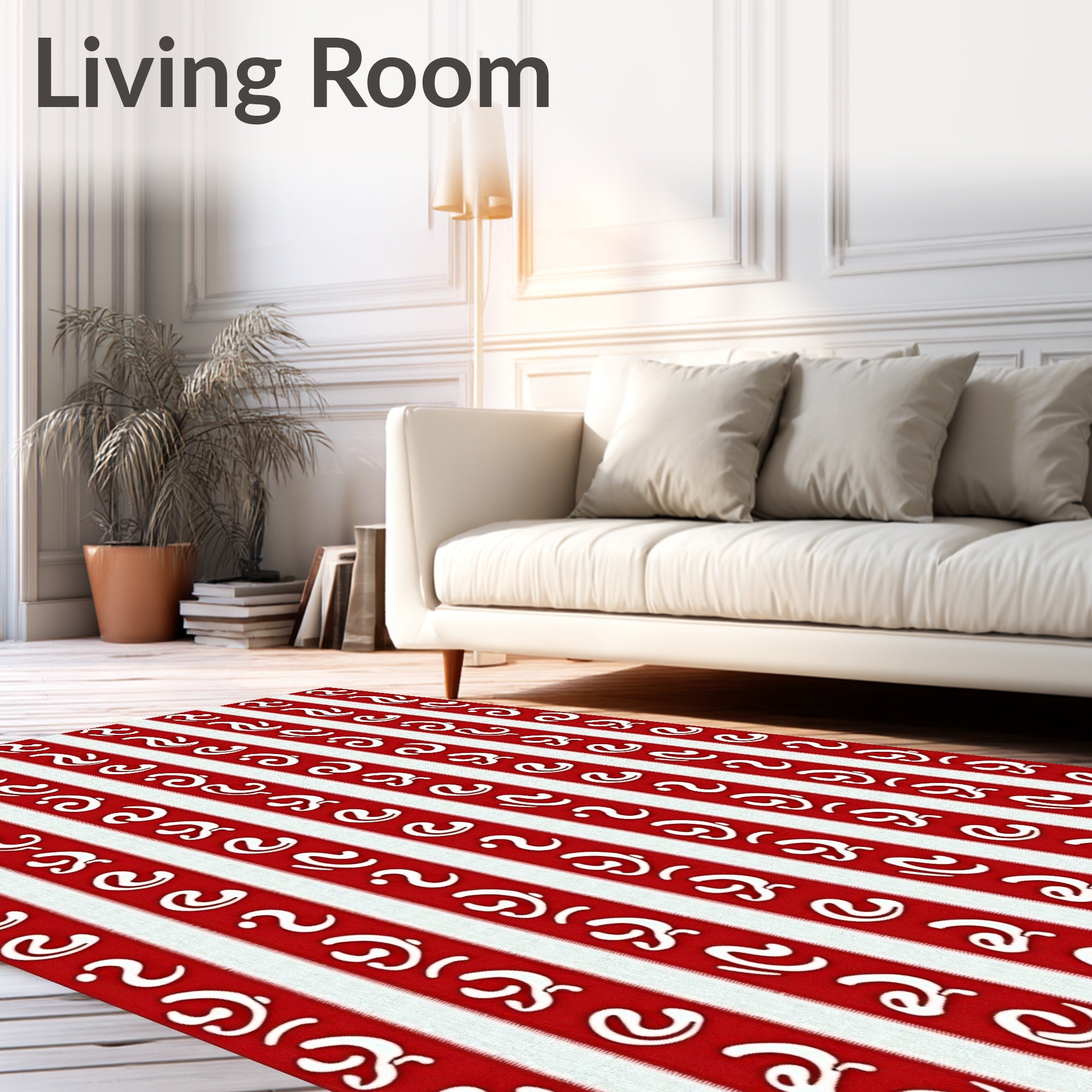 Ultra Soft Area Rug, Non Slip, Stain Resistant, Washable Area Rugs for Living Room, Bedroom, Sweet Cane Striped Floor Collection Winter Confectionery Design(Red) Overview: