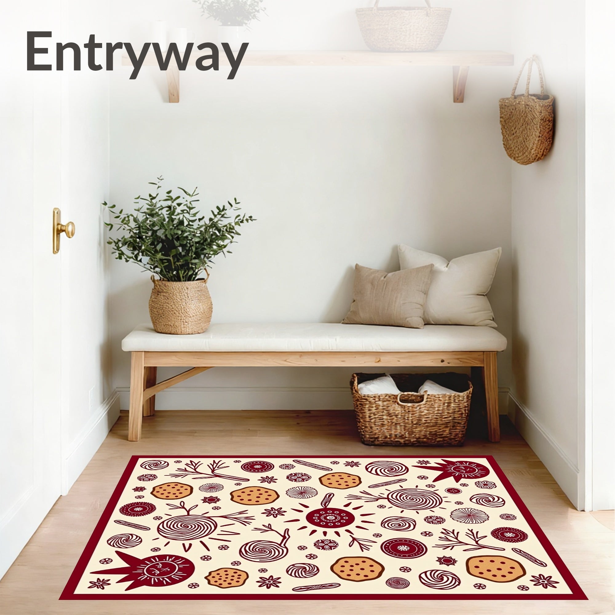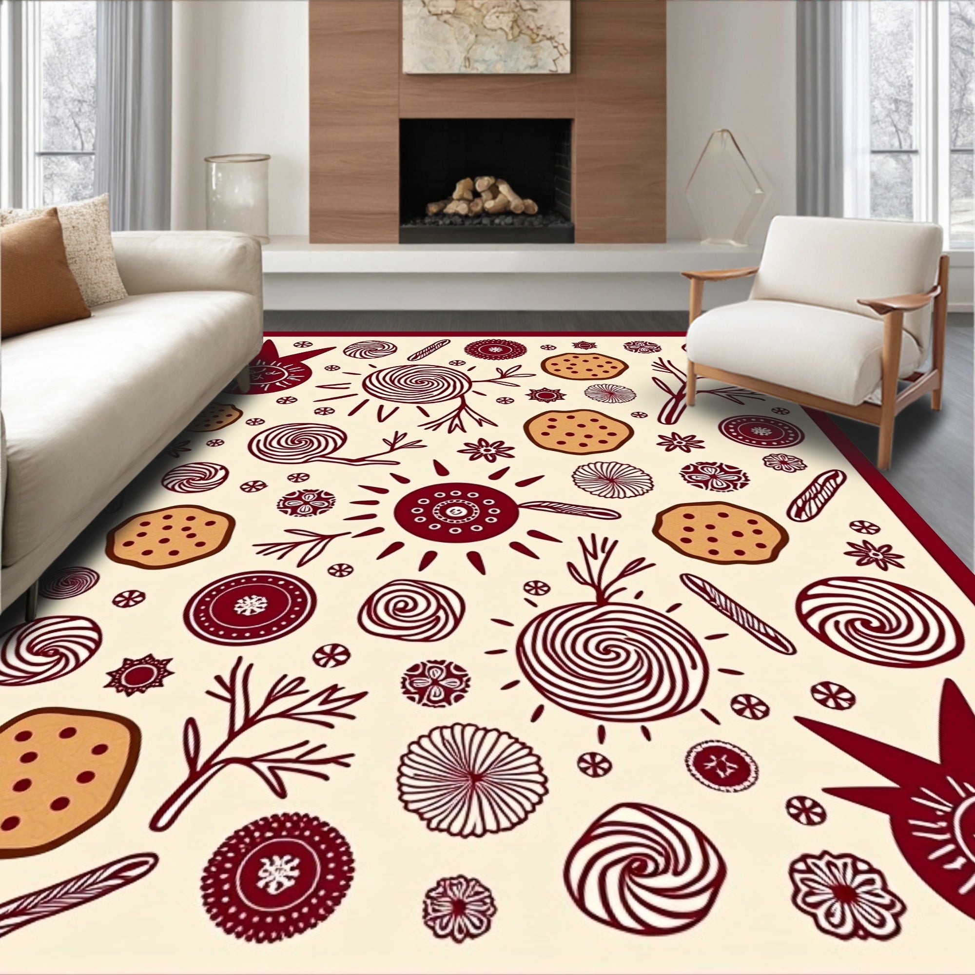 Flatwoven High Traffic Area Rug, Sweet Treat Baking Theme Dual Surface Protection Holiday, Non Slip, Stain Resistant, Washable Area Rugs for Living Room, Bedroom (Beige) Overview: