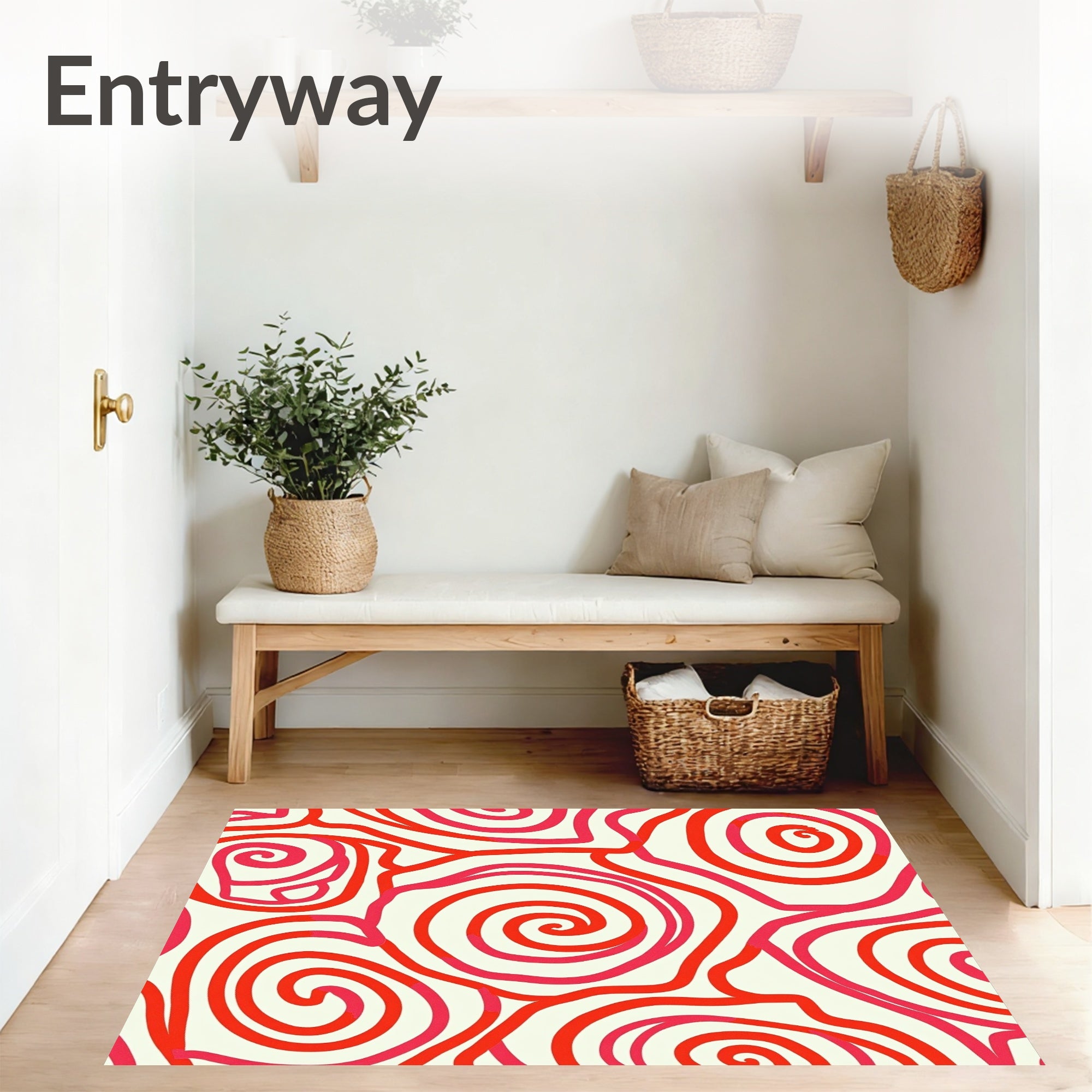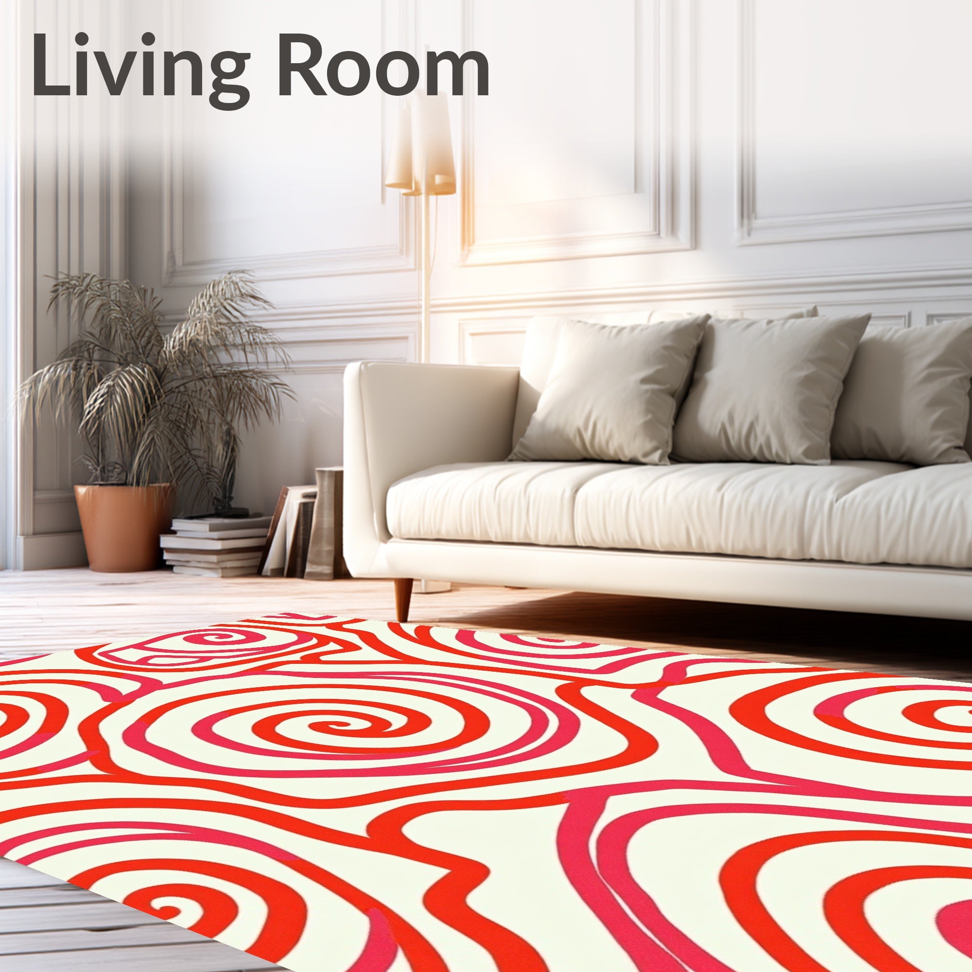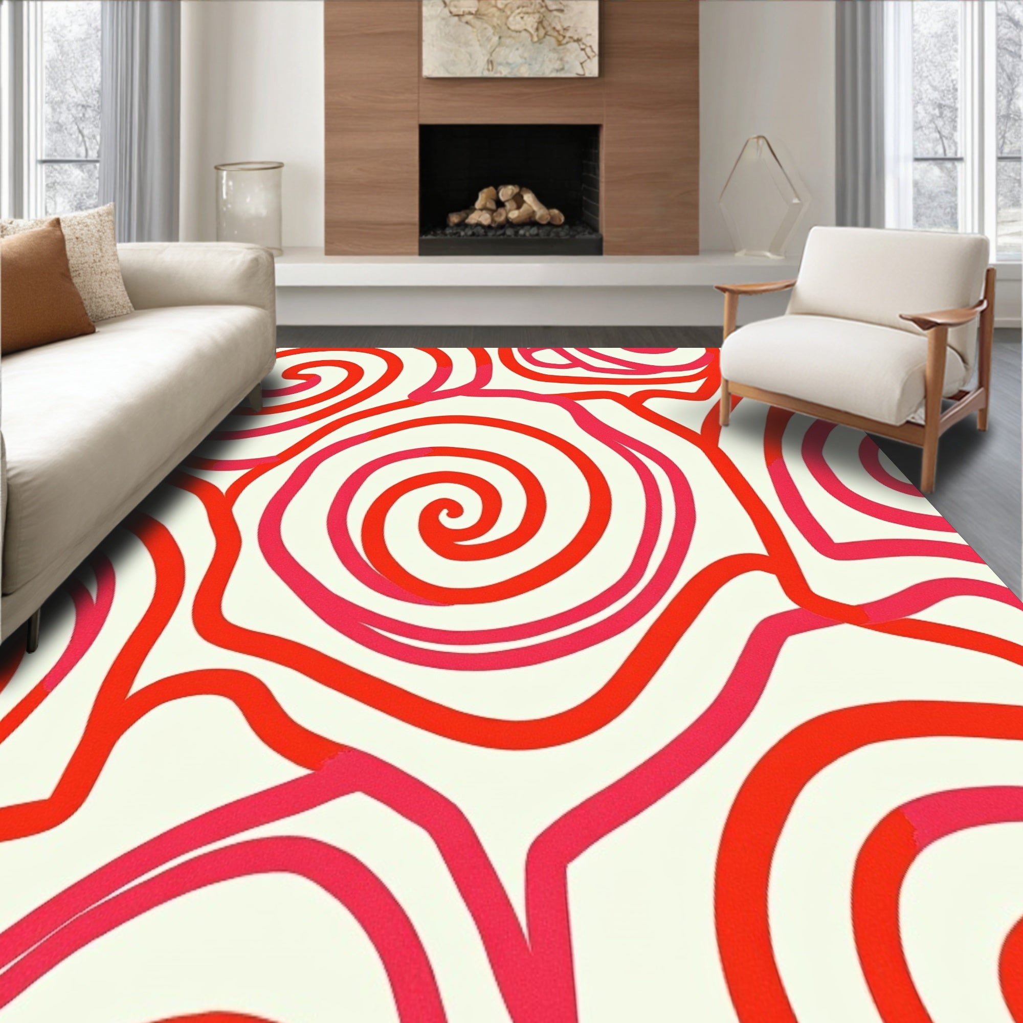 Ultra Soft Area Rug, Non Slip, Stain Resistant, Washable Area Rugs for Living Room, Bedroom, Swirling Spiral Contemporary with Curved Artistic(White) Overview: