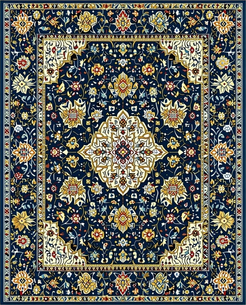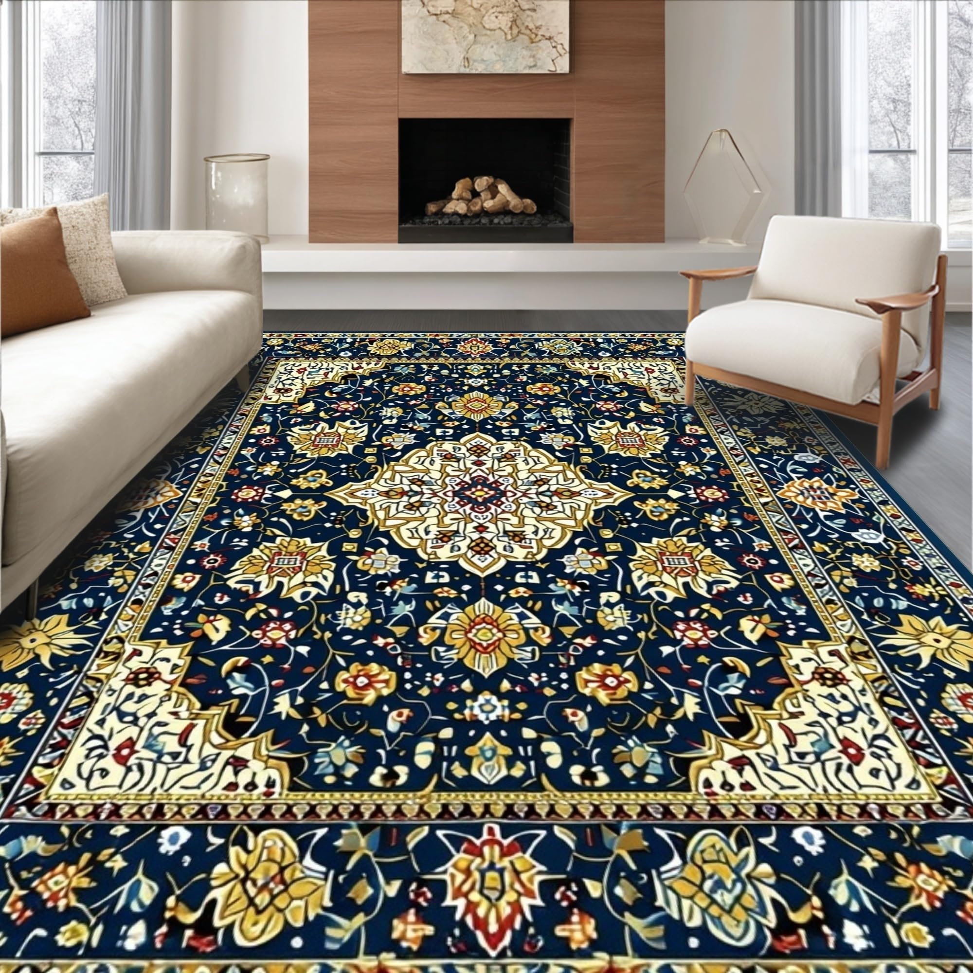 Ultra Soft Area Rug, Non Slip, Stain Resistant, Washable Area Rugs for Living Room, Bedroom, Symmetrical Floral with Smoke & Beige(Blue) Overview: