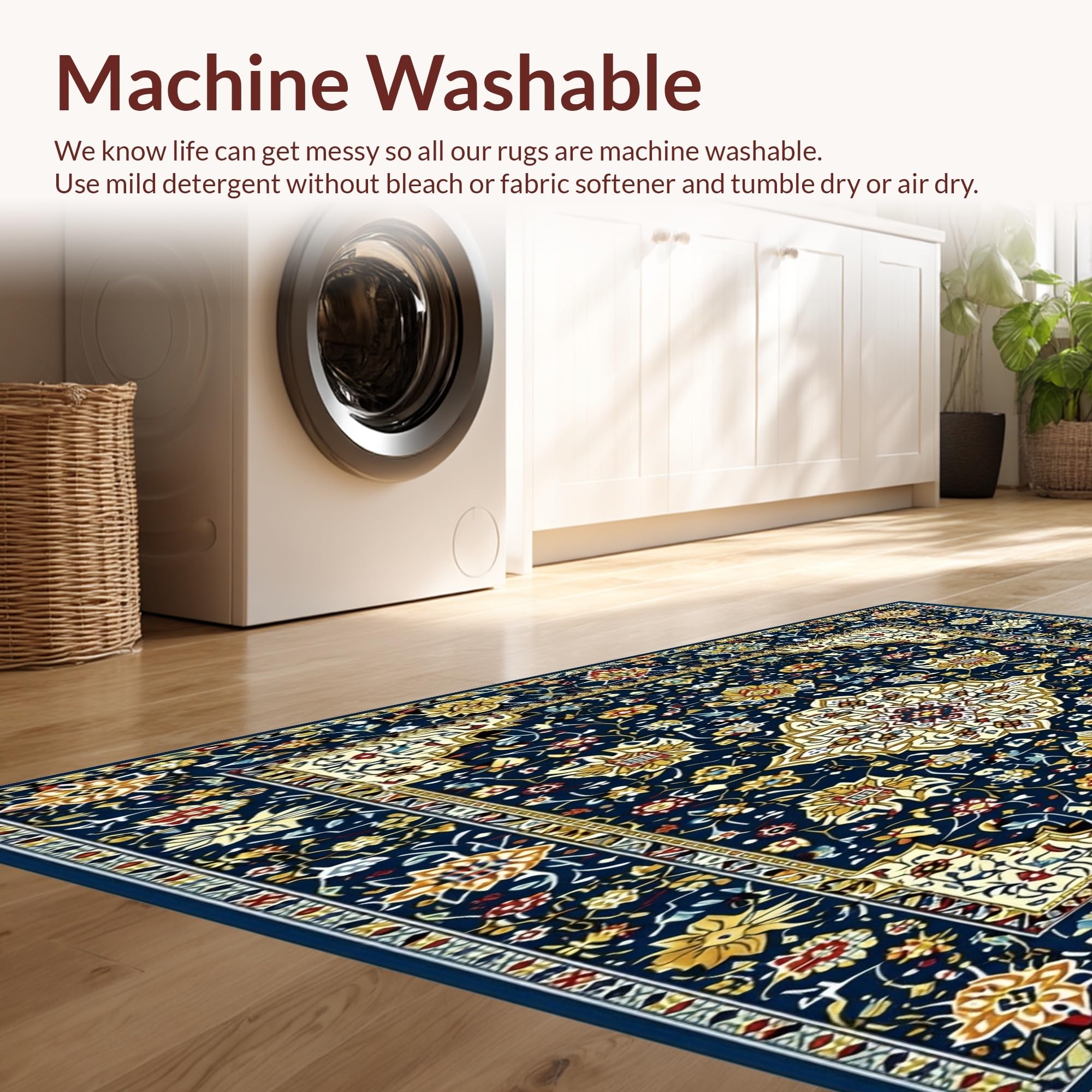 - Machine Washable: Our rugs can be easily thrown in the wash machine.
