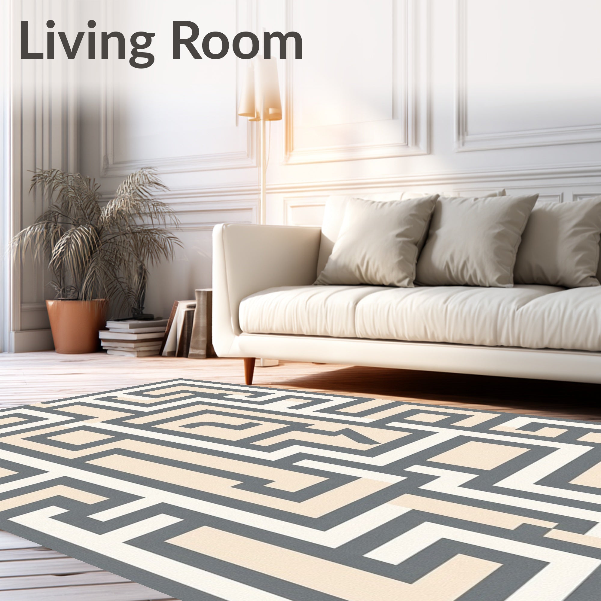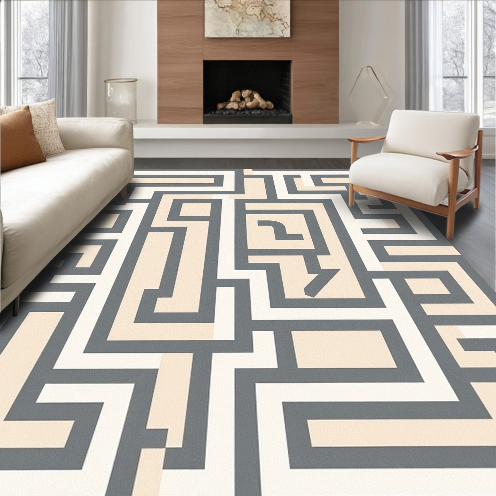 Ultra Soft Area Rug, Non Slip, Stain Resistant, Washable Area Rugs for Living Room, Bedroom, Symmetrical Maze Labyrinth Architectural(Gray) Overview: