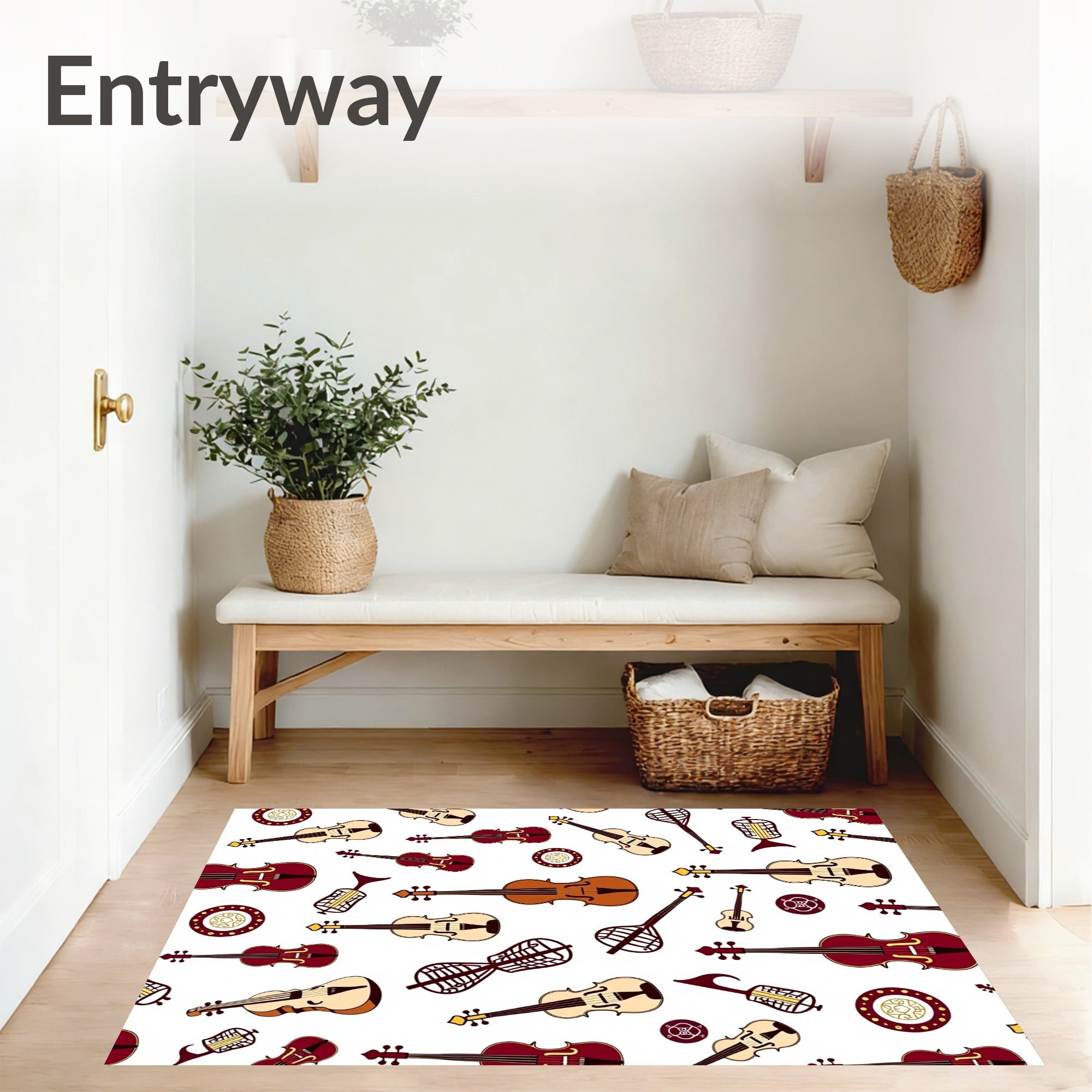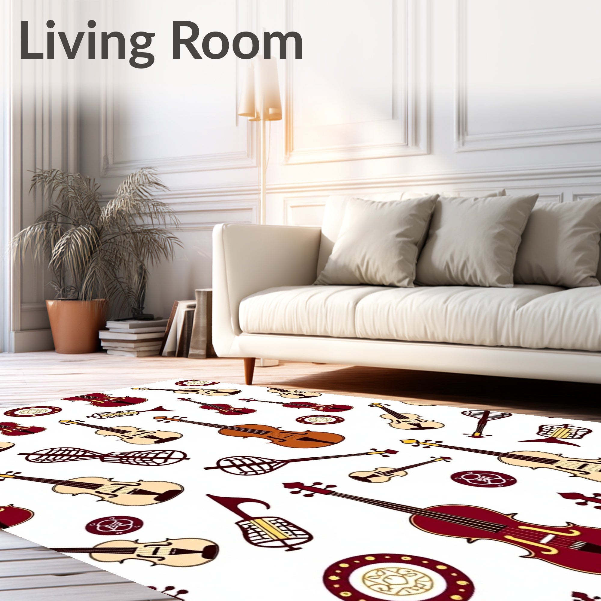 Flatwoven High Traffic Area Rug, Symphony Orchestra Instrument Collage Floor with Classical, Non Slip, Stain Resistant, Washable Area Rugs for Living Room, Bedroom (Brown) Overview: