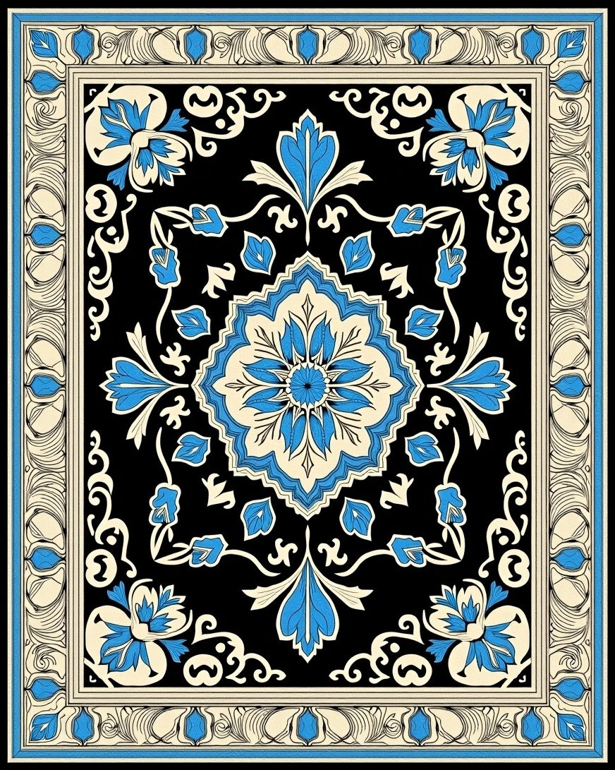 Tabriz Inspired Palmette with Intricate Lattice Flourishes(Black)