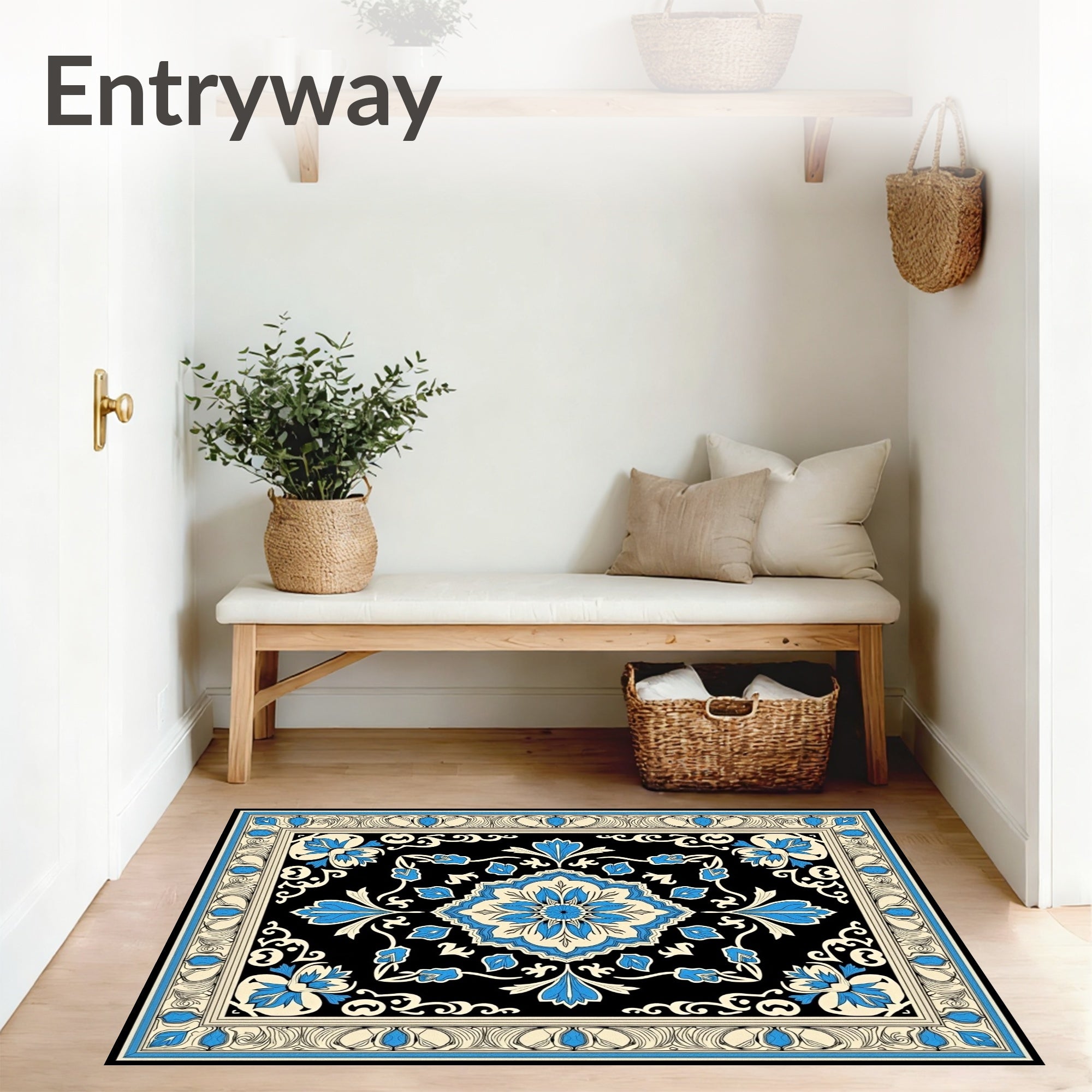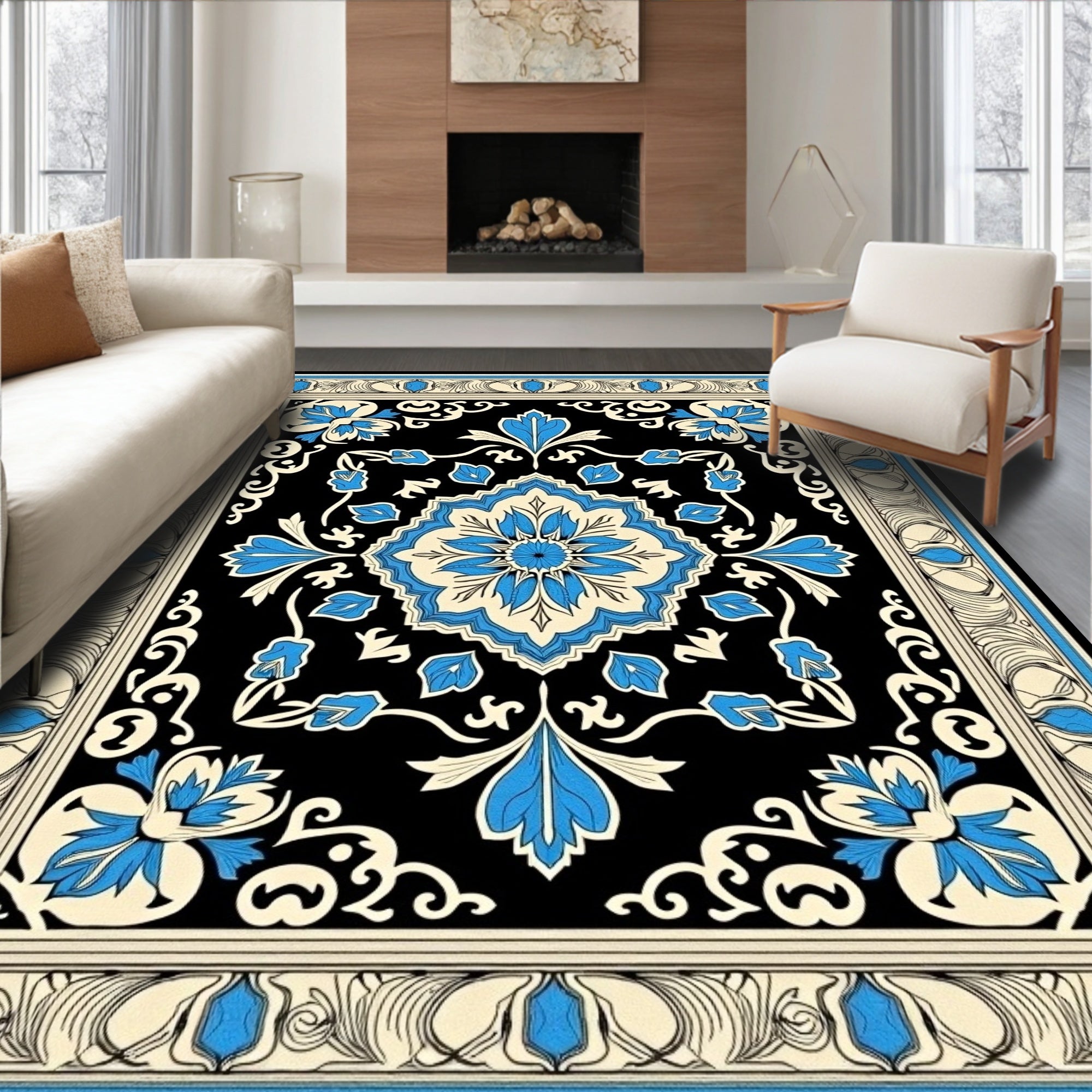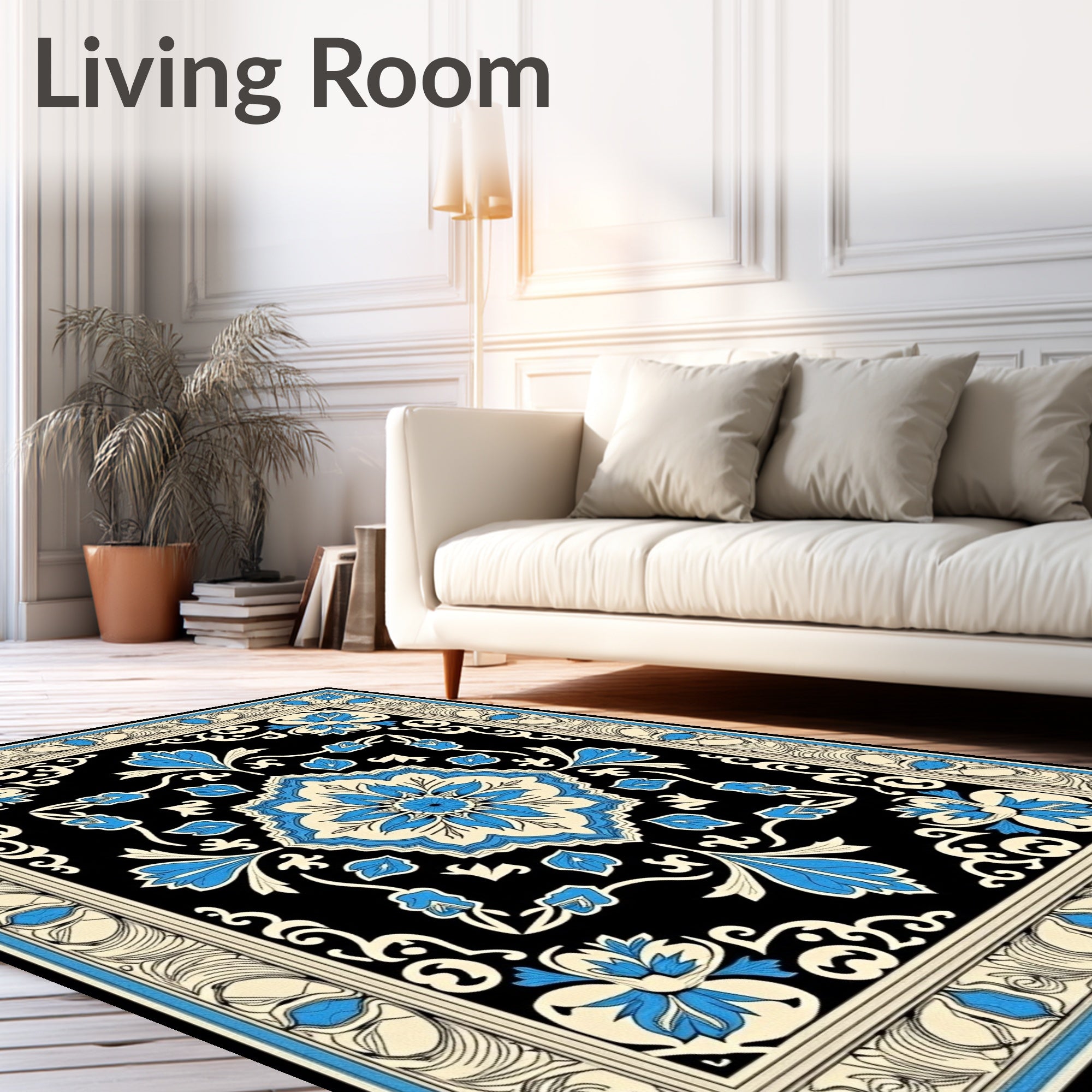 Ultra Soft Area Rug, Non Slip, Stain Resistant, Washable Area Rugs for Living Room, Bedroom, Tabriz Inspired Palmette with Intricate Lattice Flourishes(Black) Overview: