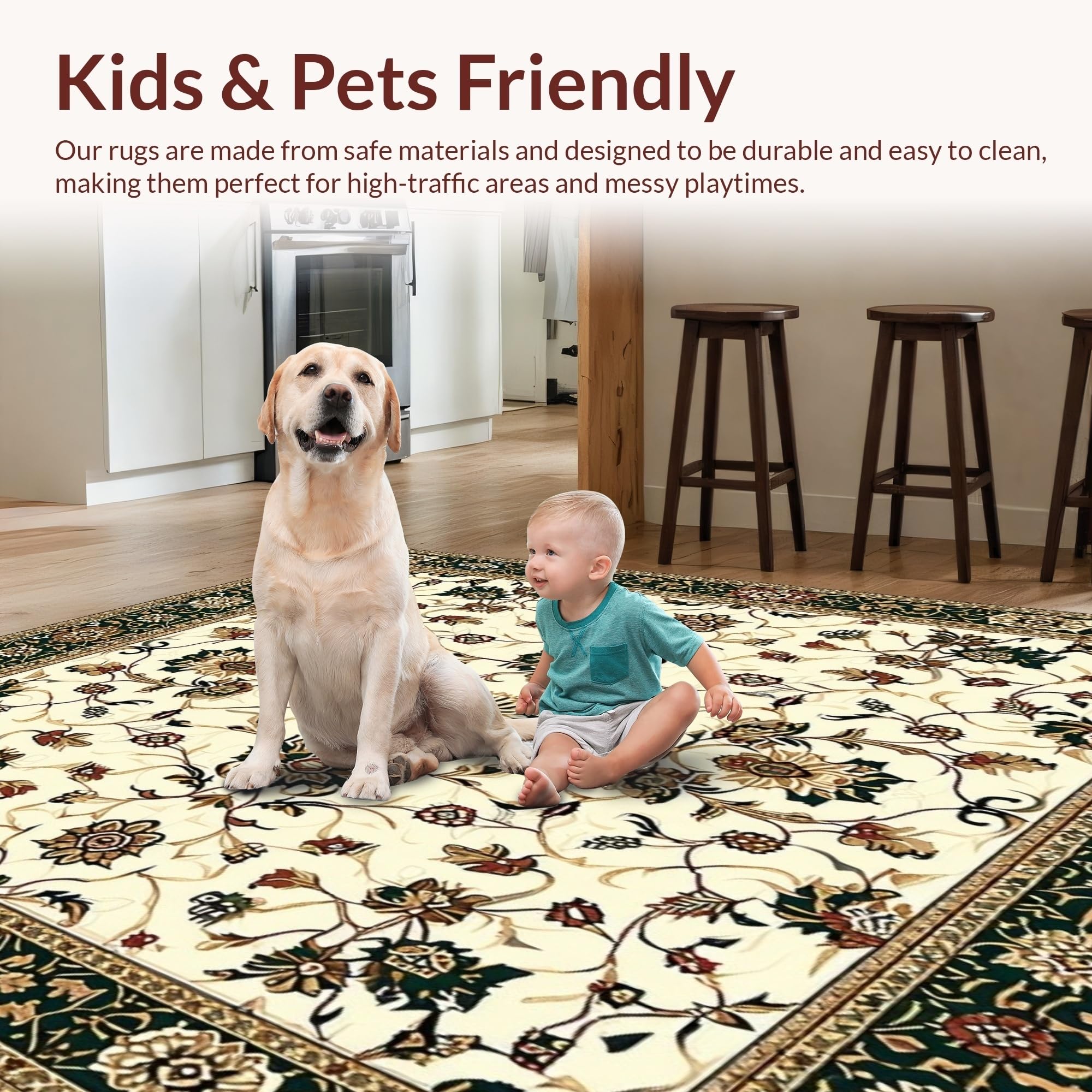 Ultra Soft Area Rug, Non Slip, Stain Resistant, Washable Area Rugs for Living Room, Bedroom, Tan Floral Area(Ivory) Overview: