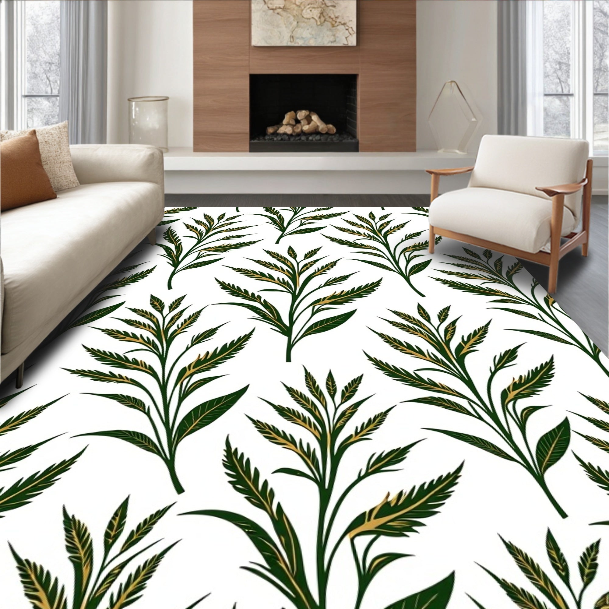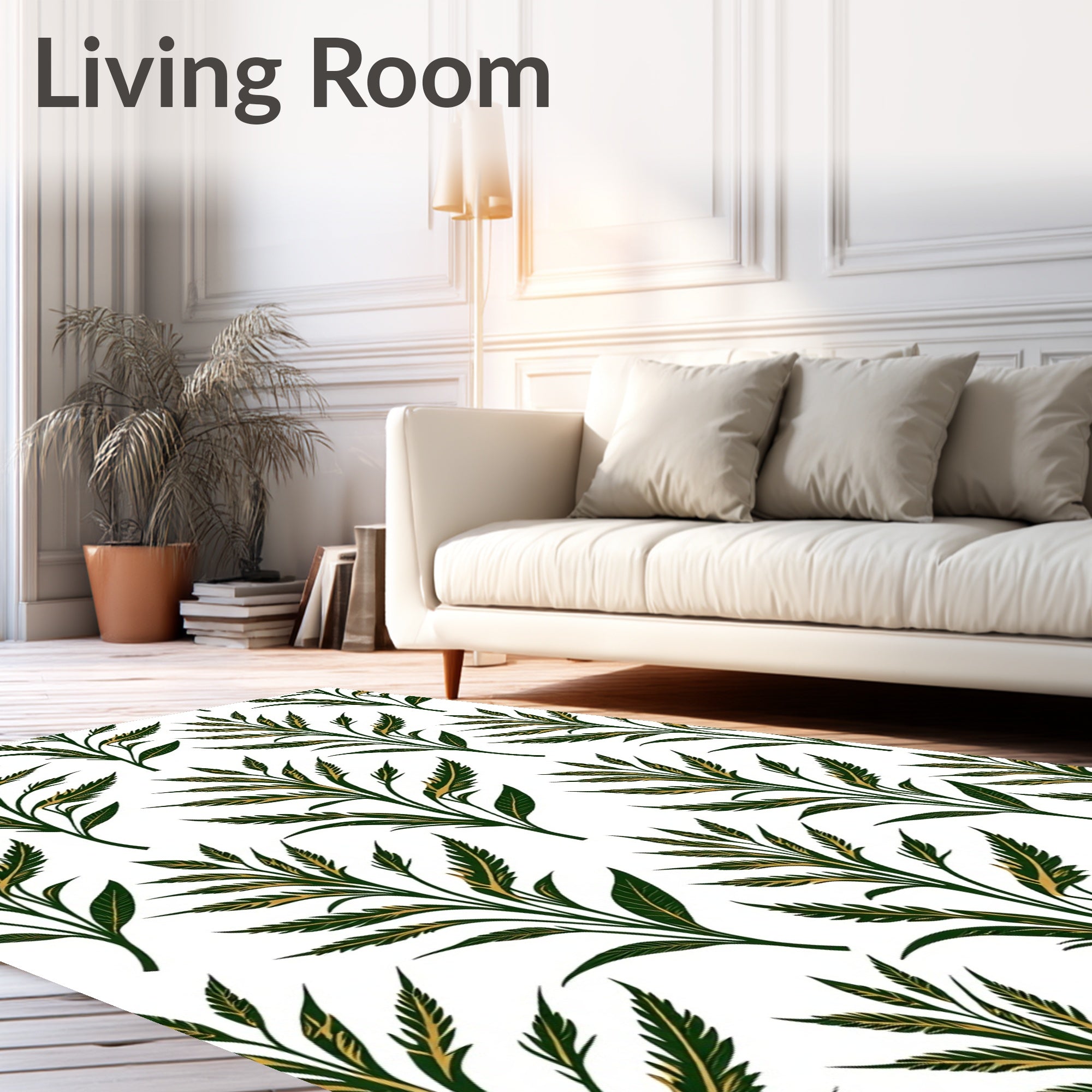 Flatwoven High Traffic Area Rug, Tapestry Style with Classical Acanthus Leaf Motifs, Non Slip, Stain Resistant, Washable Area Rugs for Living Room, Bedroom (White) Overview: