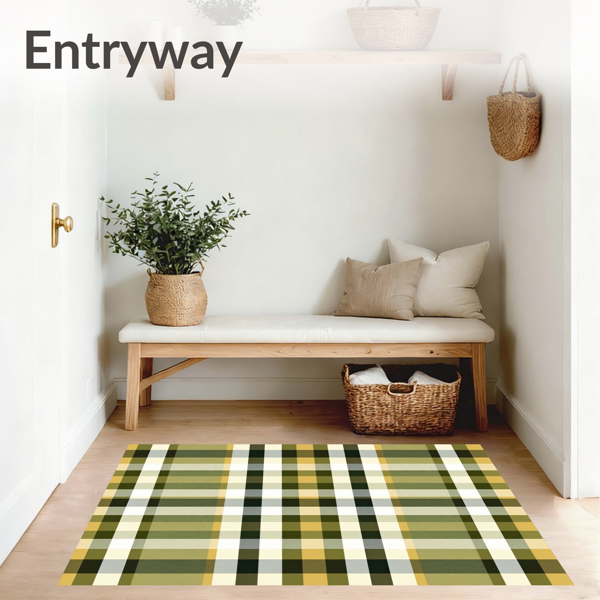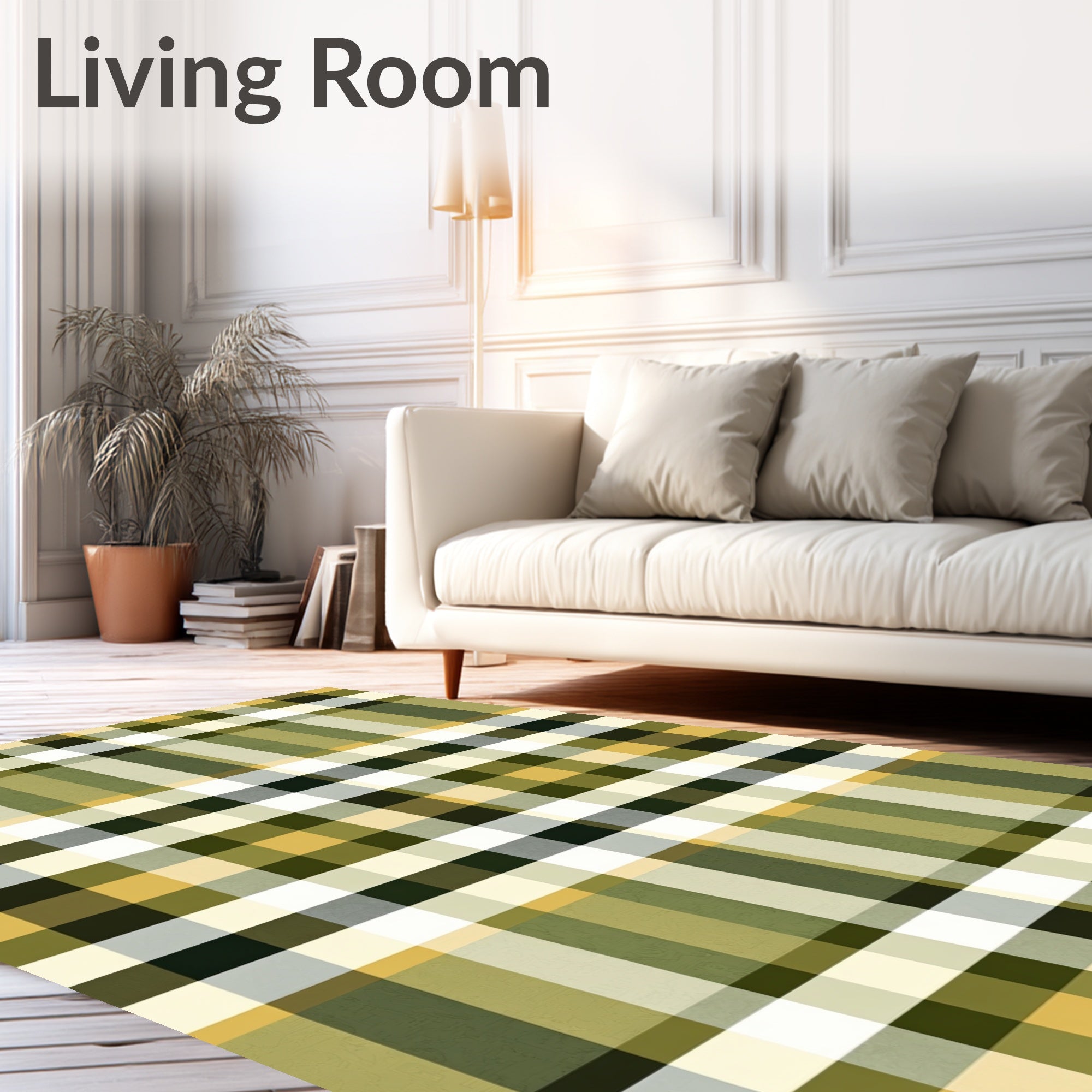 Ultra Soft Area Rug, Non Slip, Stain Resistant, Washable Area Rugs for Living Room, Bedroom, Tartan Inspired Checkerboard with Interlocking Blocks(Green) Overview: