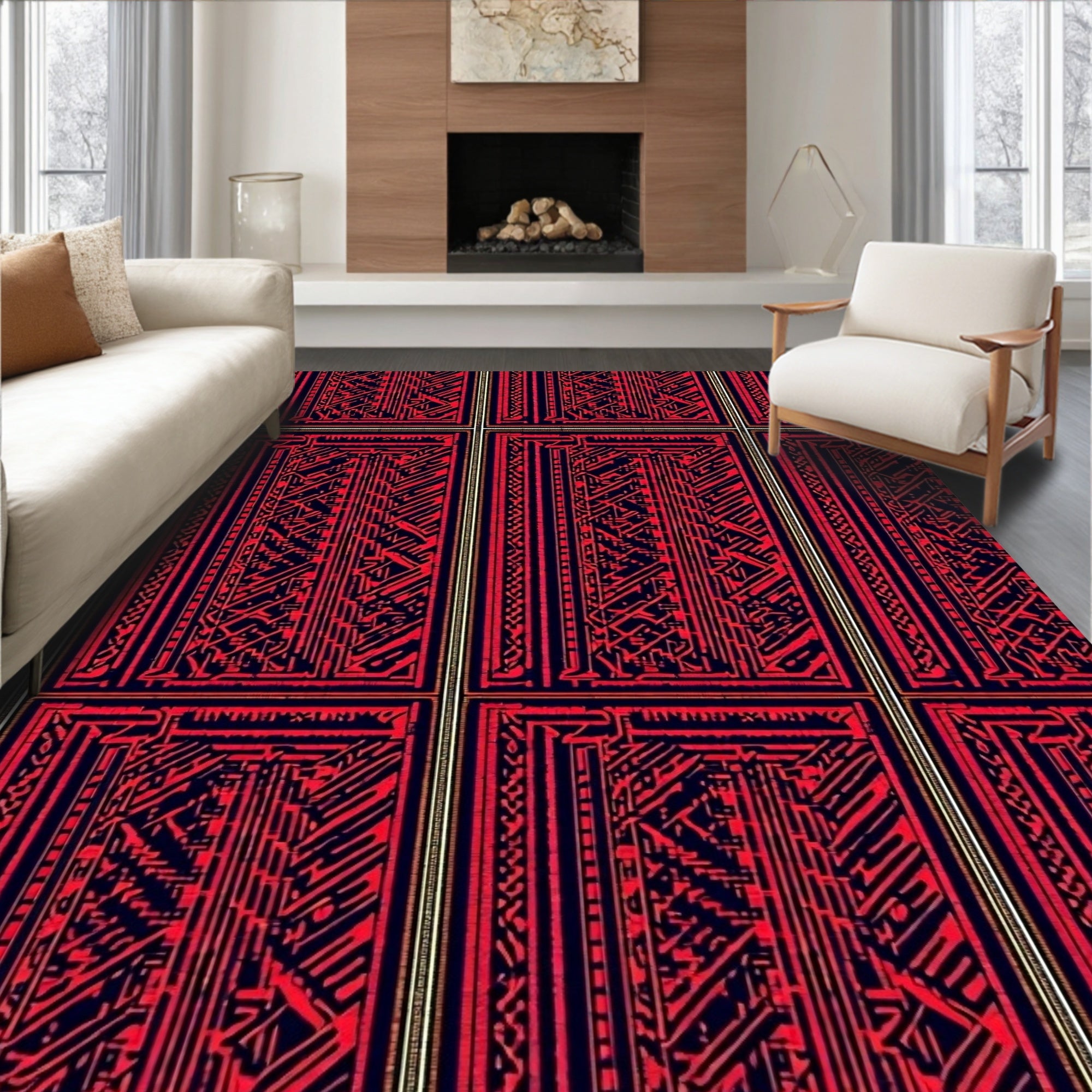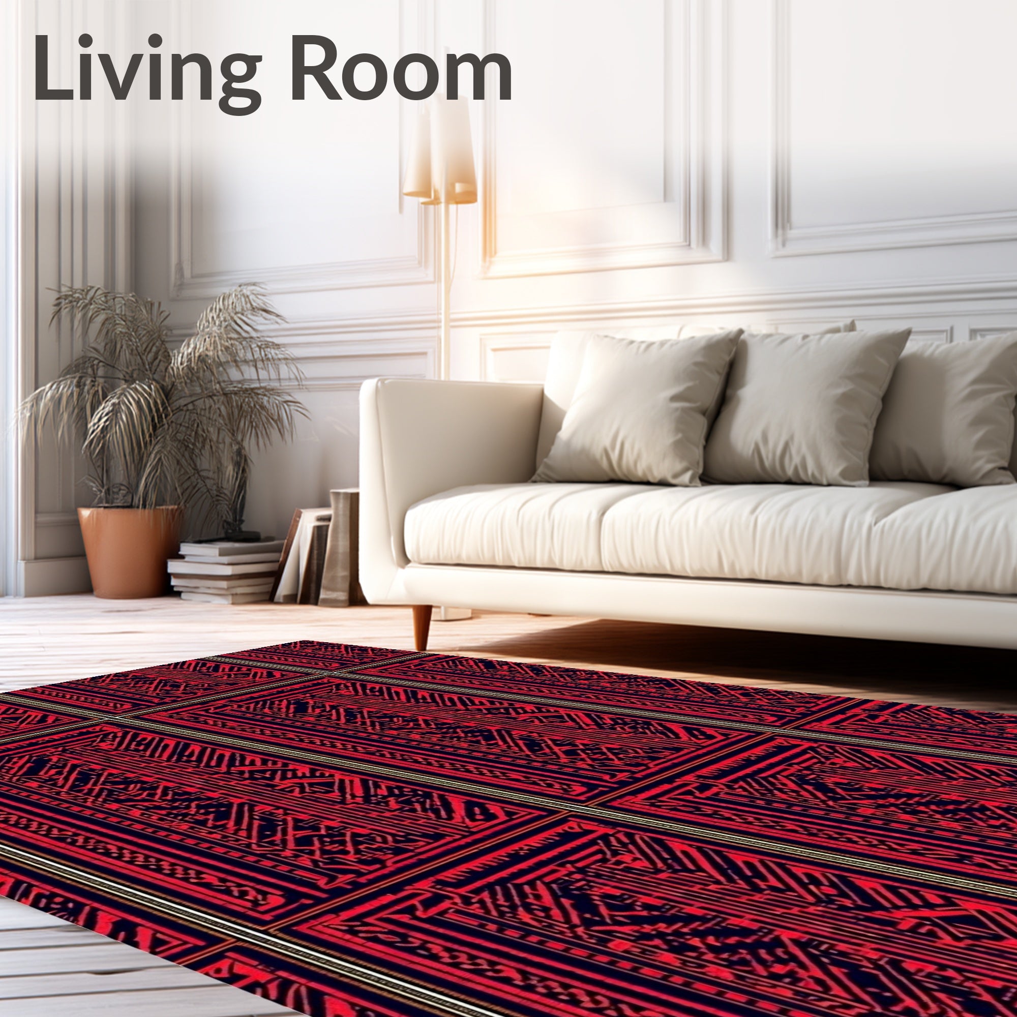 Ultra Soft Area Rug, Non Slip, Stain Resistant, Washable Area Rugs for Living Room, Bedroom, Tartan Inspired with Layered Dark and Bright Contrasts(Red) Overview: