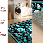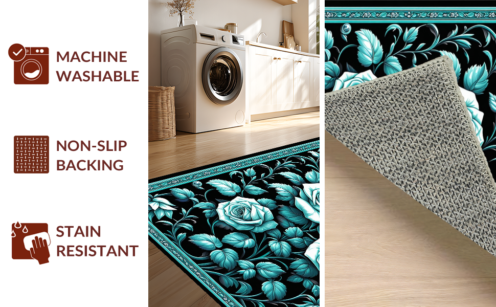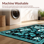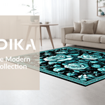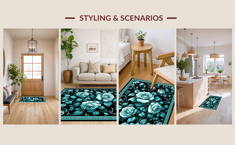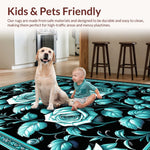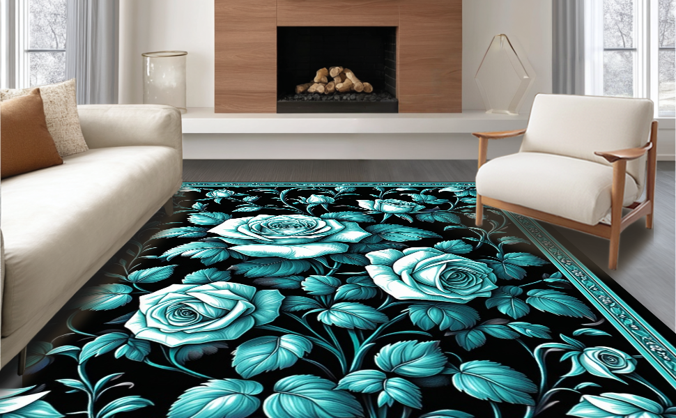 Ultra Soft Area Rug, Non Slip, Stain Resistant, Washable Area Rugs for Living Room, Bedroom, Teal and Black Blossom Harmony(Blue) Overview: