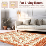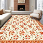 Ultra Soft Area Rug, Non Slip, Stain Resistant, Washable Area Rugs for Living Room, Bedroom, Terracotta Bloom Red Floral(Ivory) Overview: