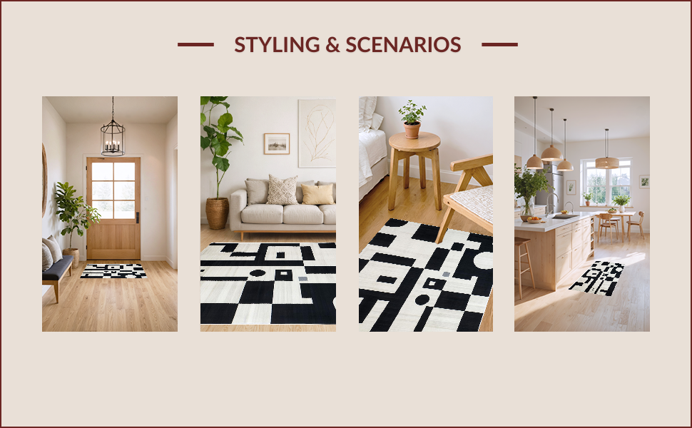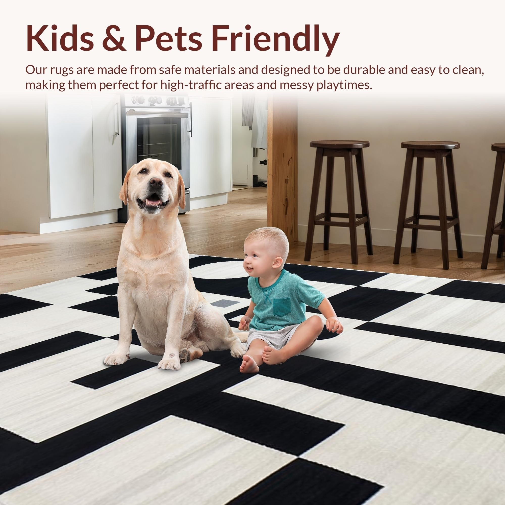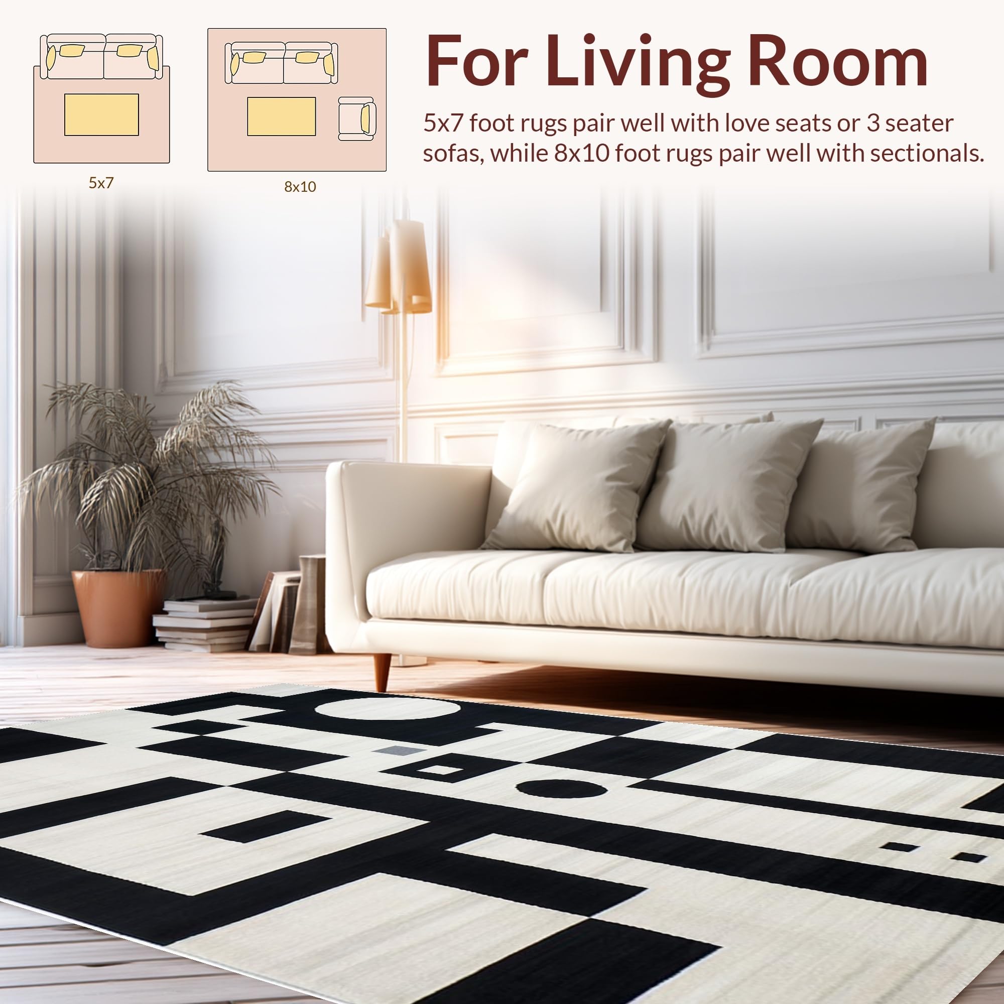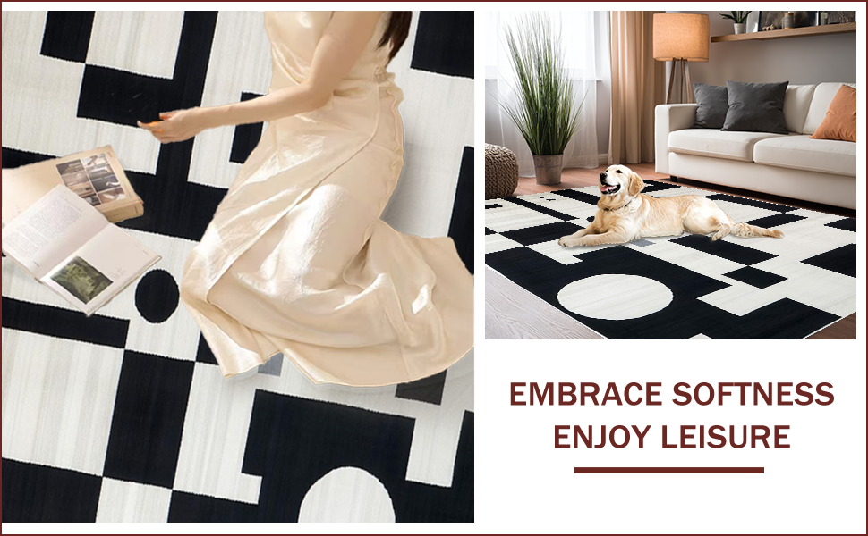 Ultra Soft Area Rug, Non Slip, Stain Resistant, Washable Area Rugs for Living Room, Bedroom, Textured Abstract Elegance(Black) Overview: