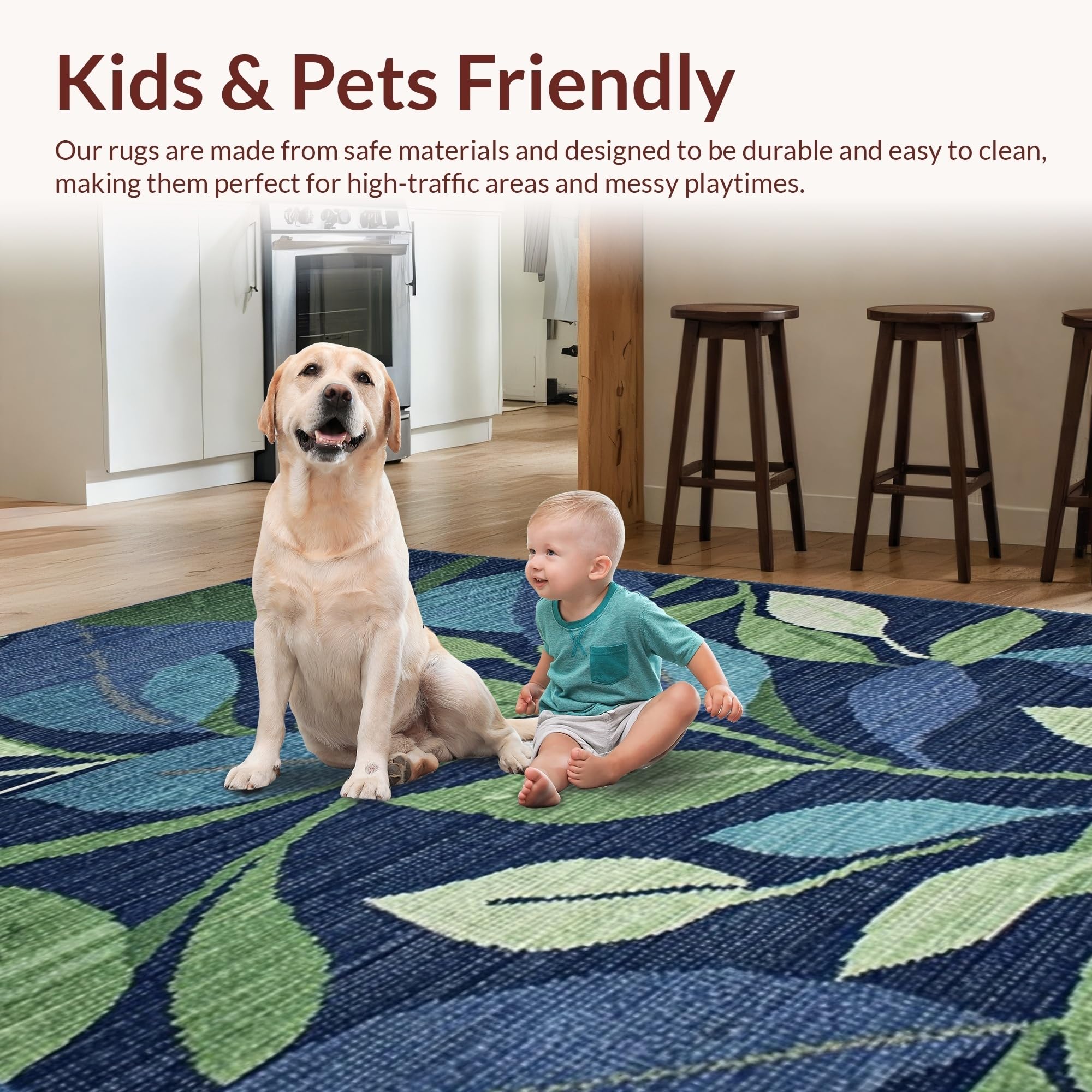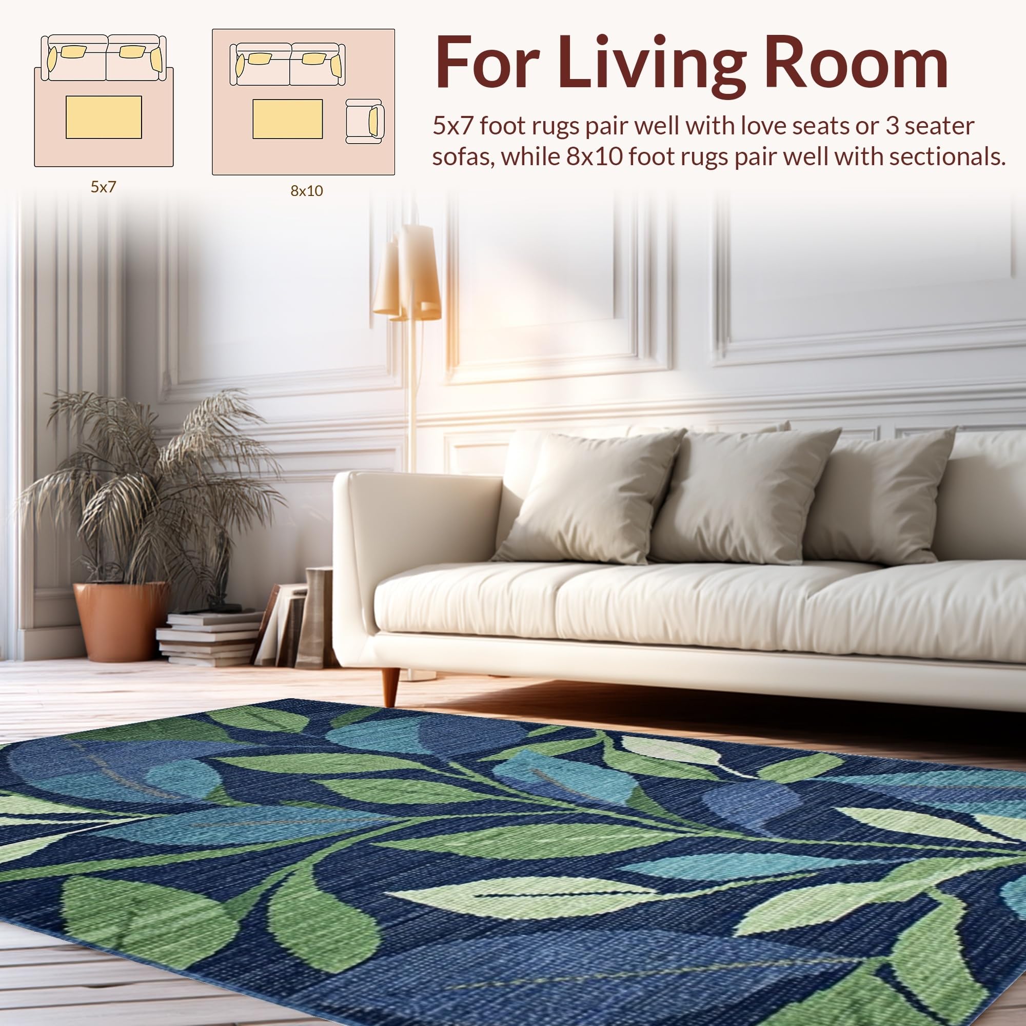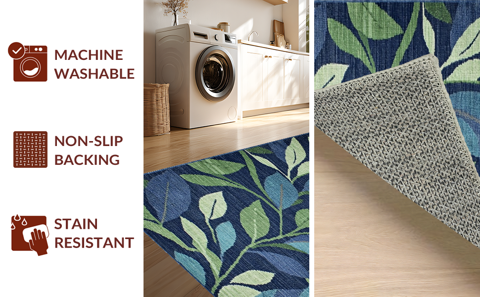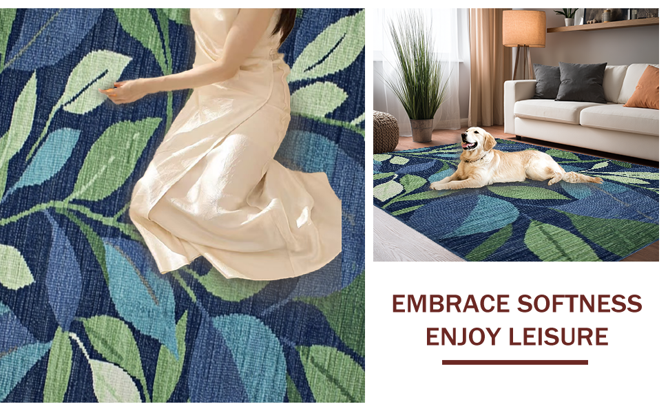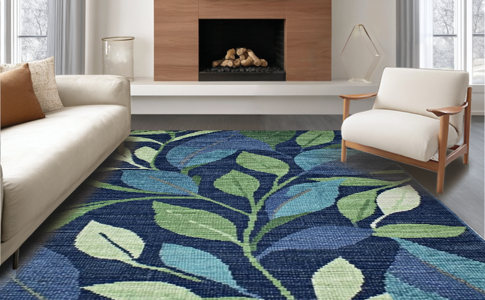 Ultra Soft Area Rug, Non Slip, Stain Resistant, Washable Area Rugs for Living Room, Bedroom, Textured Green Nature Pattern(Blue) Overview: