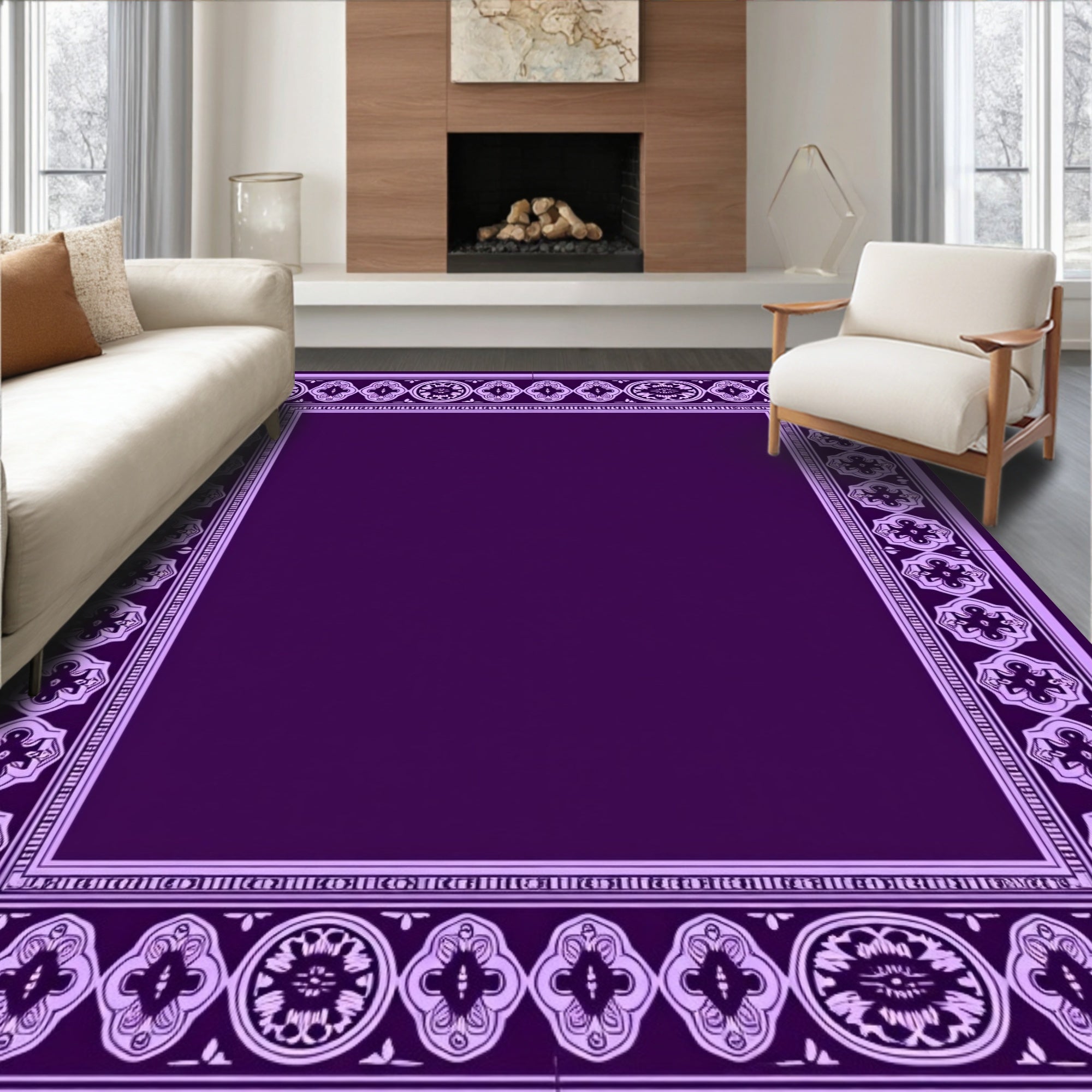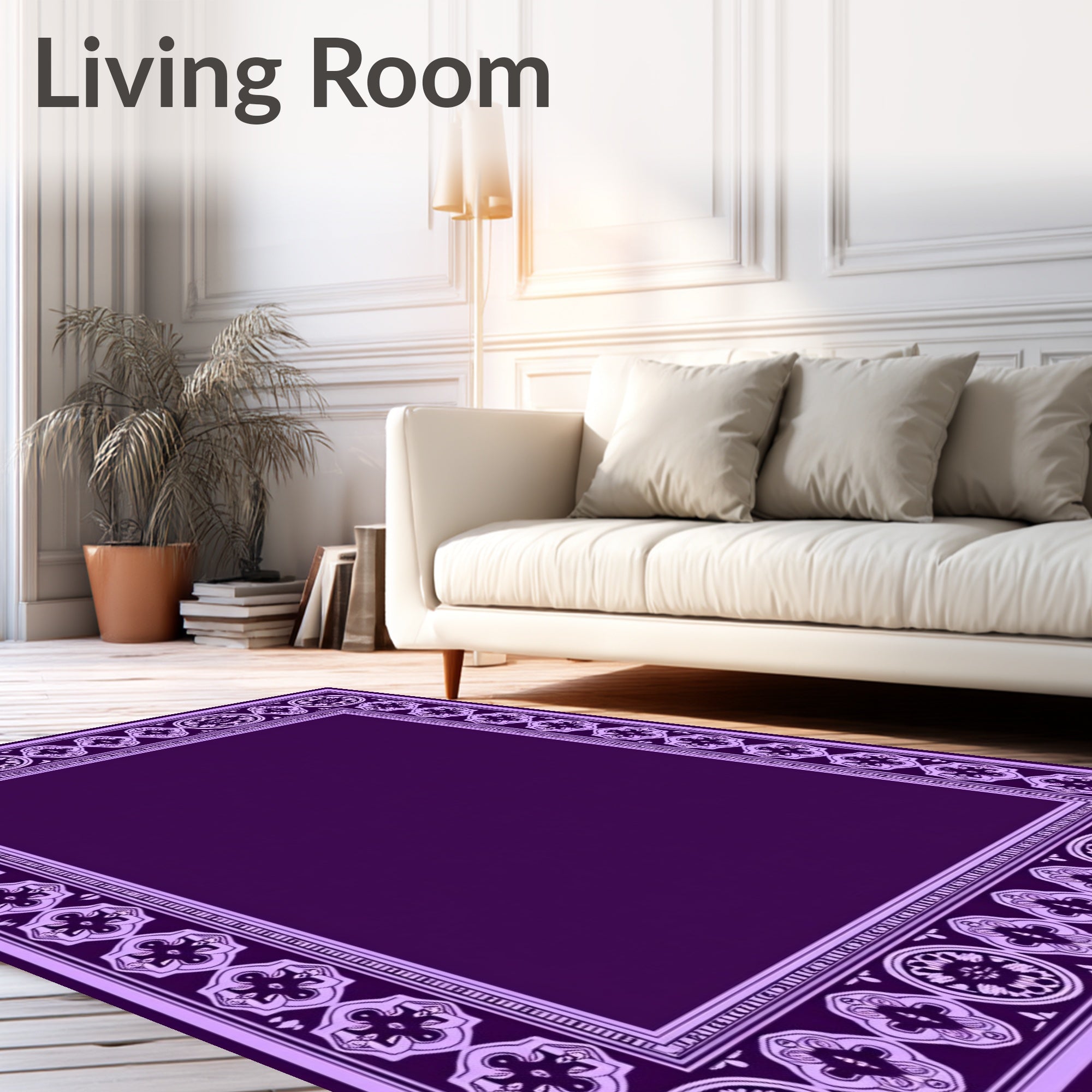 Ultra Soft Area Rug, Non Slip, Stain Resistant, Washable Area Rugs for Living Room, Bedroom, Tile Inspired with Ornate Border Design(Purple) Overview: