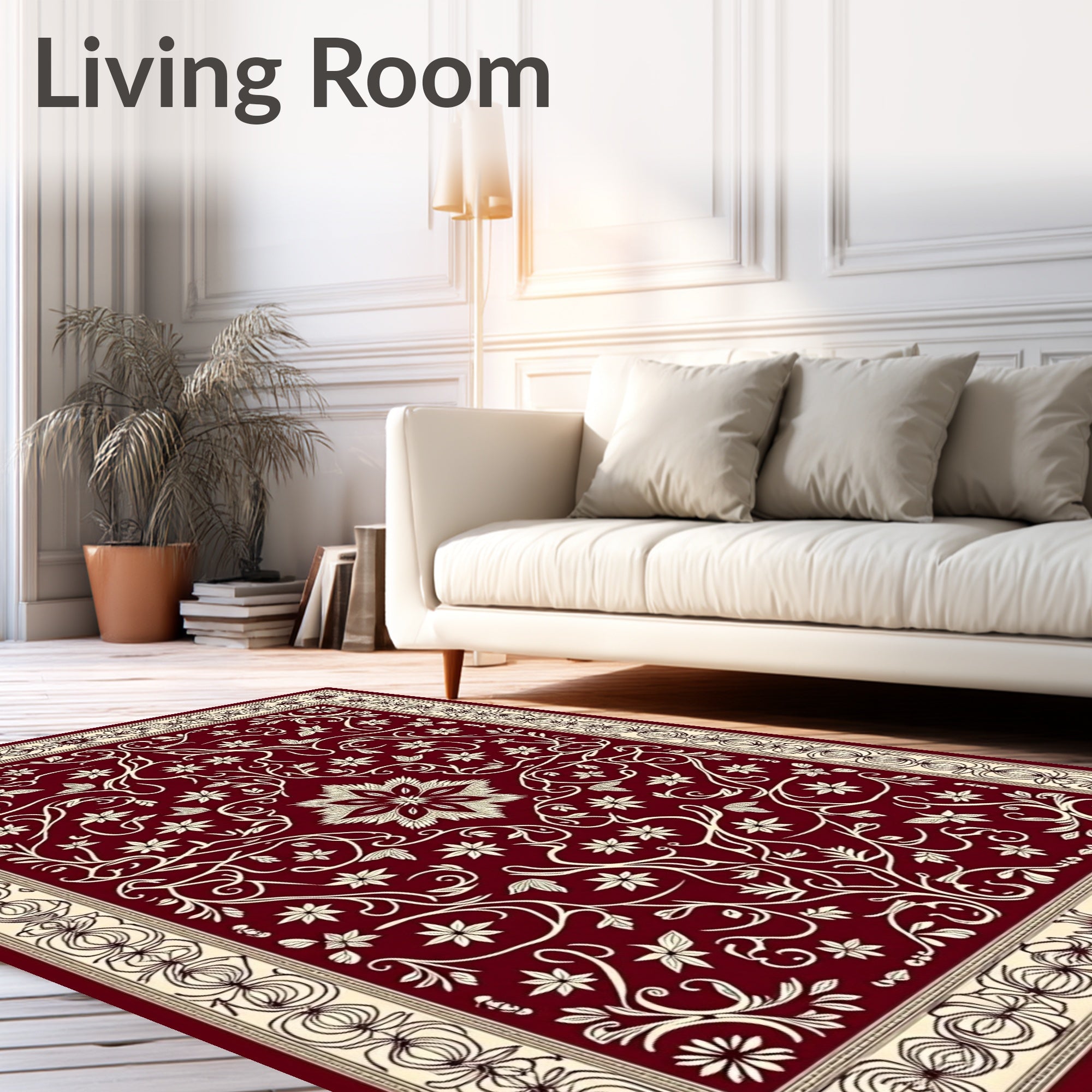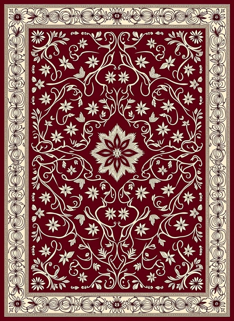 Ultra Soft Area Rug, Non Slip, Stain Resistant, Washable Area Rugs for Living Room, Bedroom, Timeless Arabesque Lattice Vine Traditional Artisan(Red) Overview: