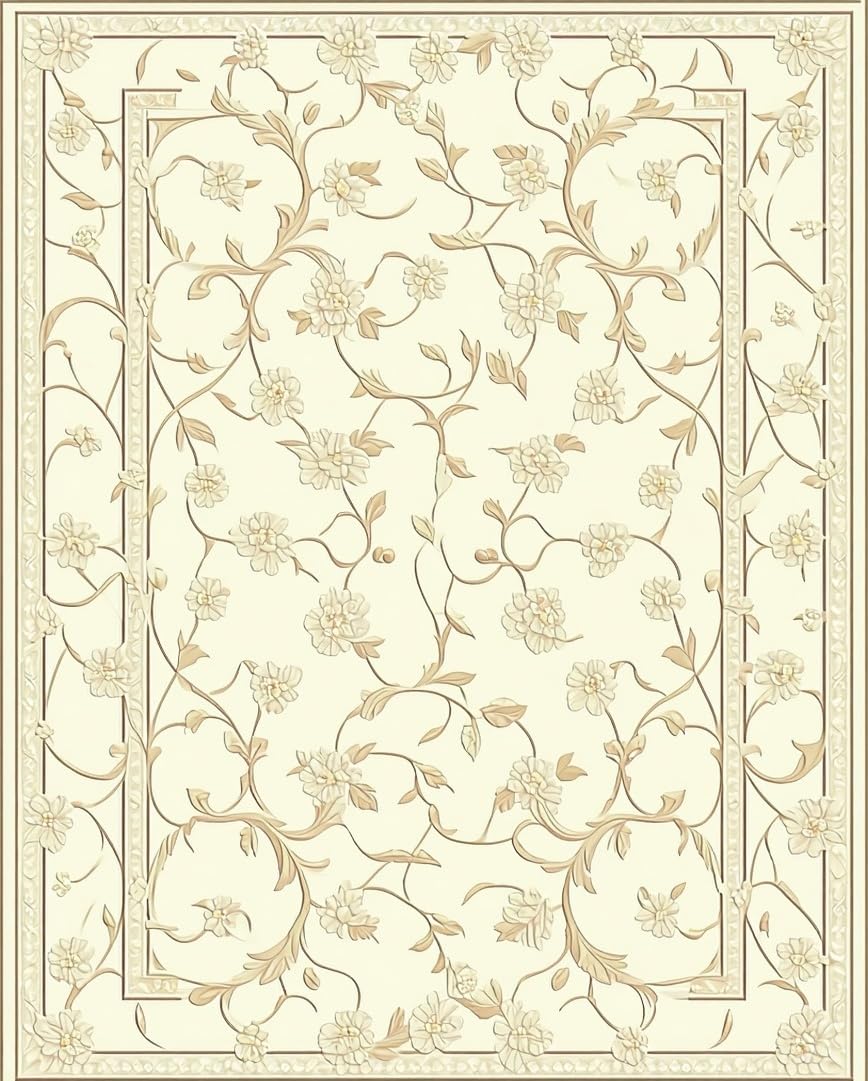 Ultra Soft Area Rug, Non Slip, Stain Resistant, Washable Area Rugs for Living Room, Bedroom, Timeless Artistic Floral Arabesque Creamy Beige Palette(Beige) Overview: