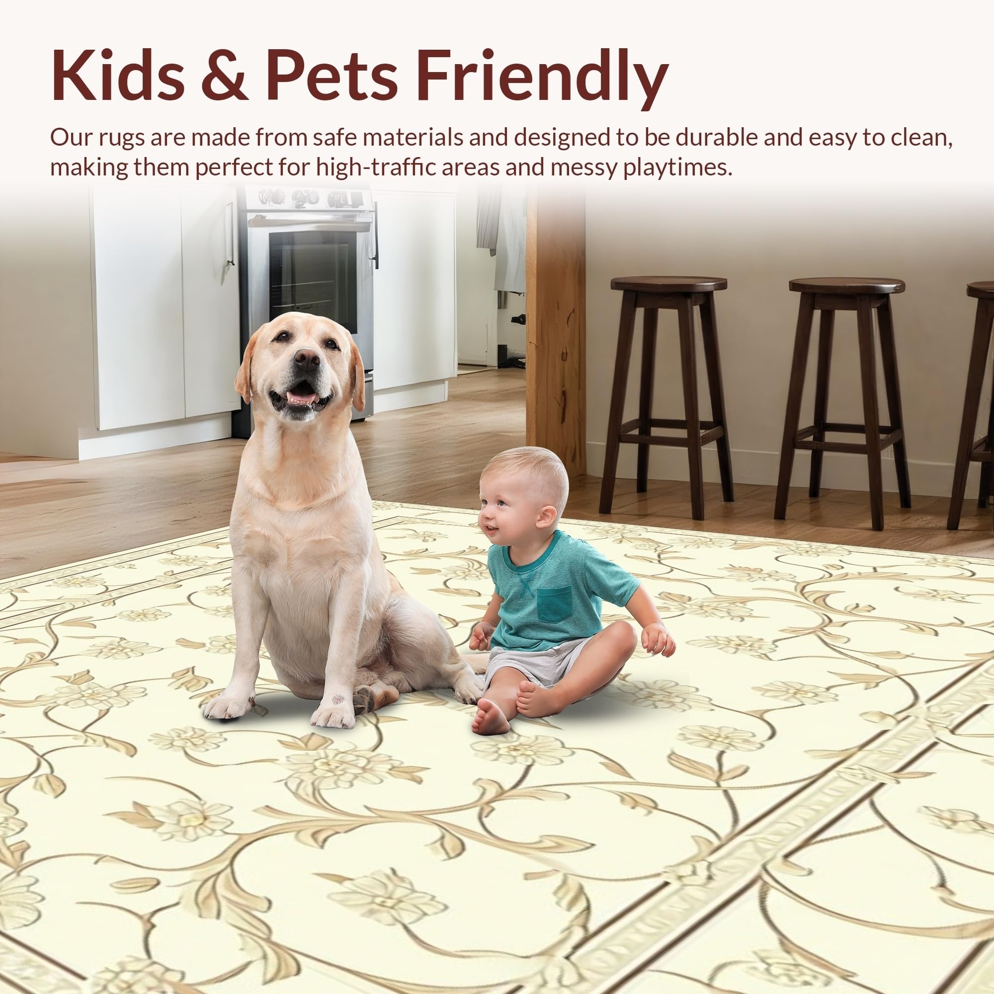 - Kid & Pet Friendly: Ideal for high-traffic indoor areas, this flooring is designed to withstand life's unpredictable messes caused by children or pets.