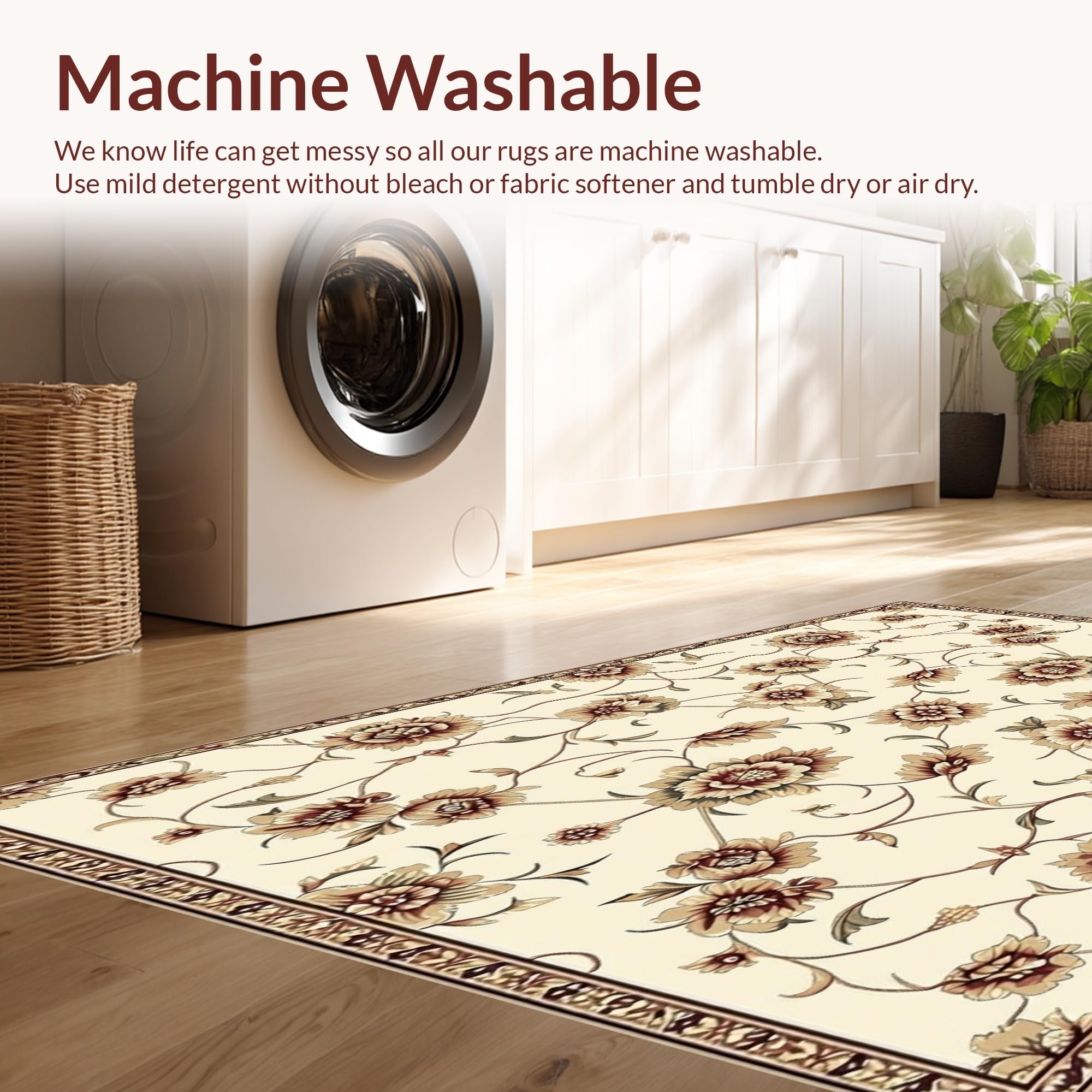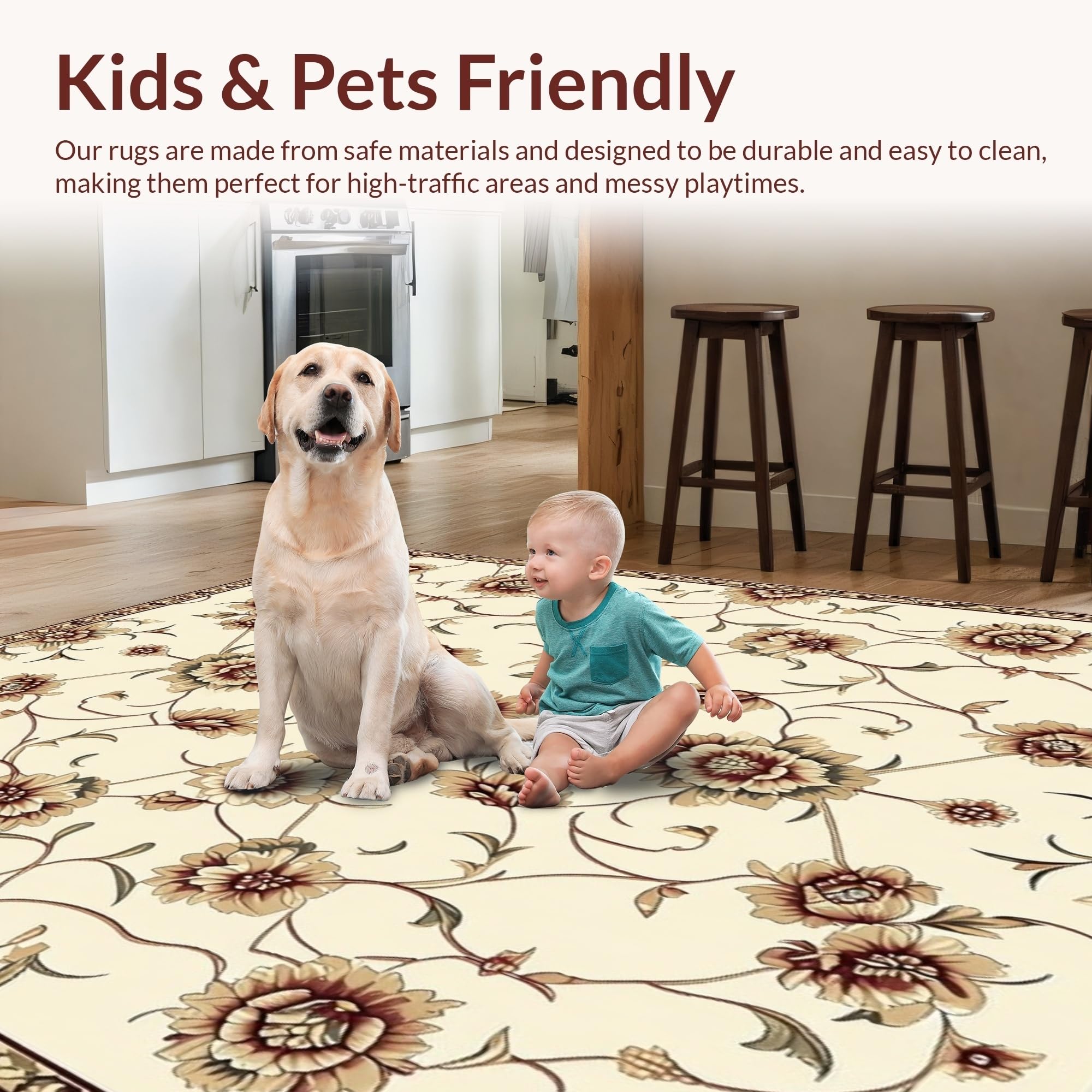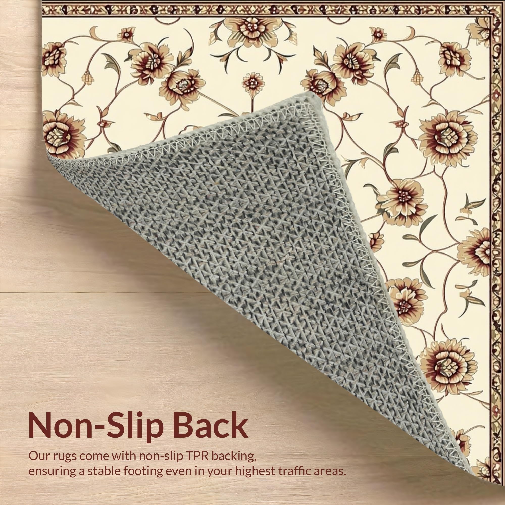 Ultra Soft Area Rug, Non Slip, Stain Resistant, Washable Area Rugs for Living Room, Bedroom, Timeless Beige Brown Area with Classic Floral Motif(Beige) Overview: