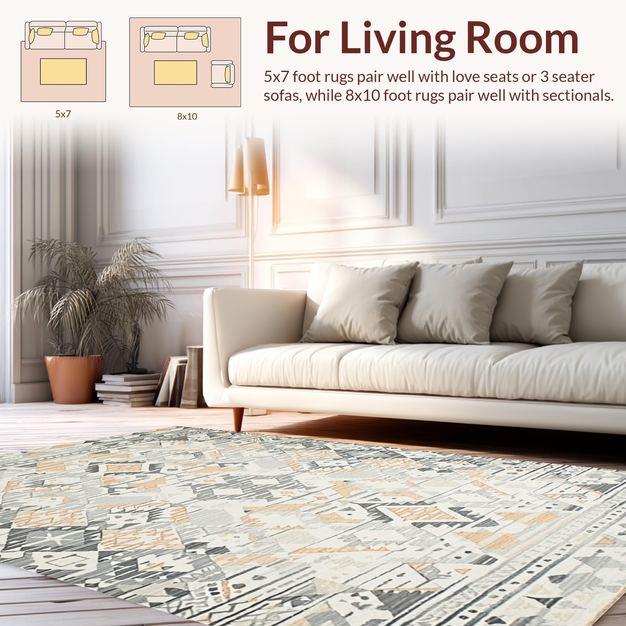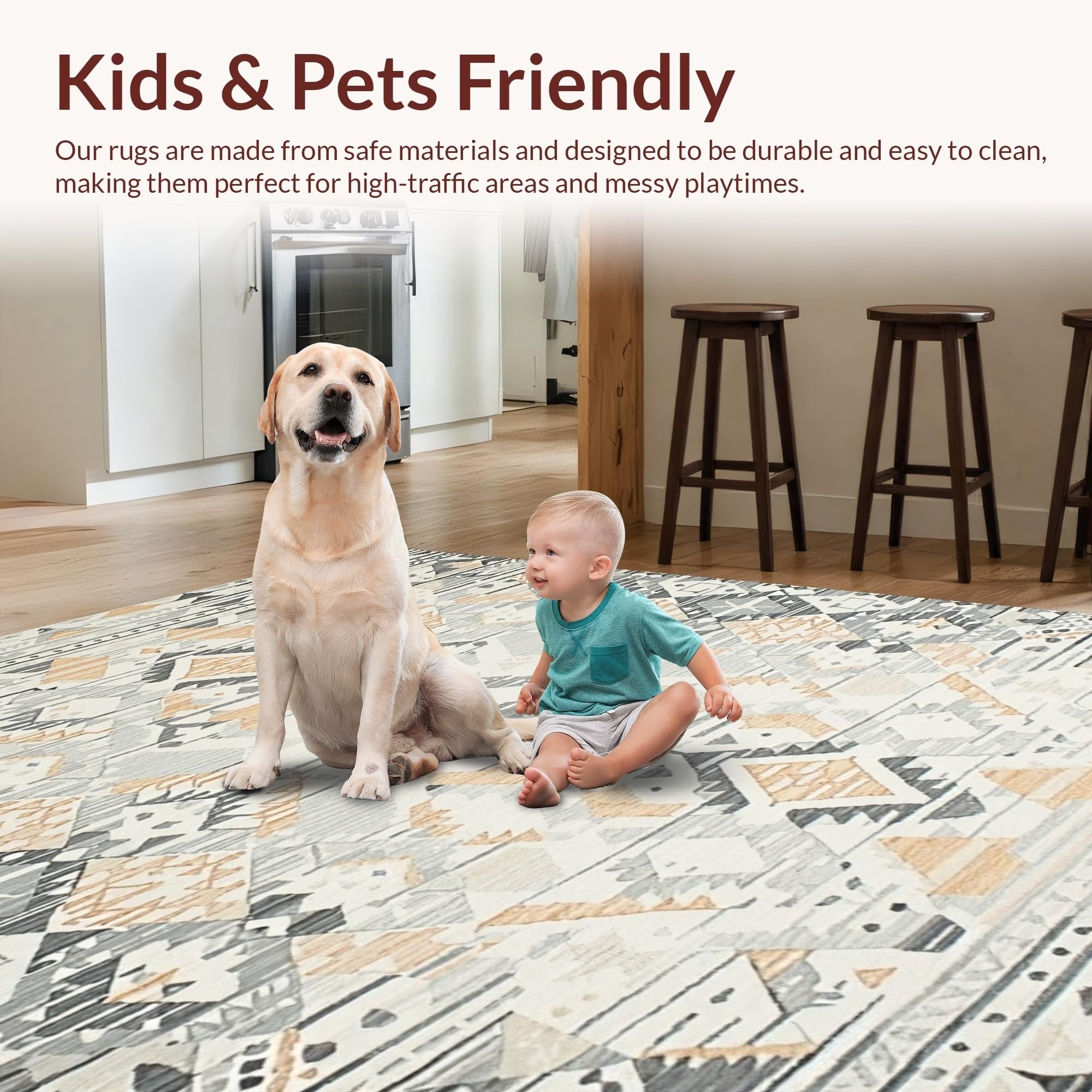 Ultra Soft Area Rug, Non Slip, Stain Resistant, Washable Area Rugs for Living Room, Bedroom, Timeless Beige Ogee Display(Gray) Overview: