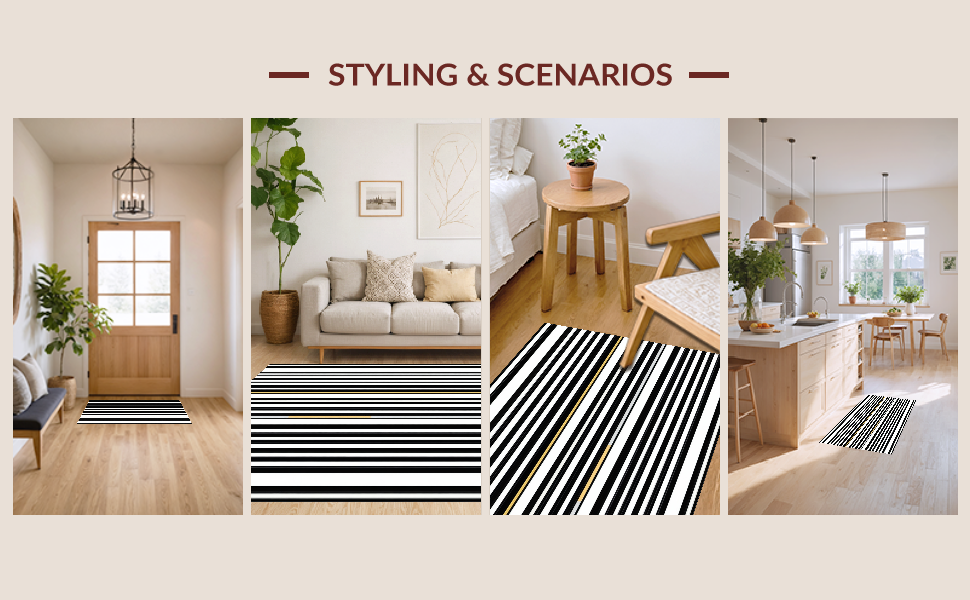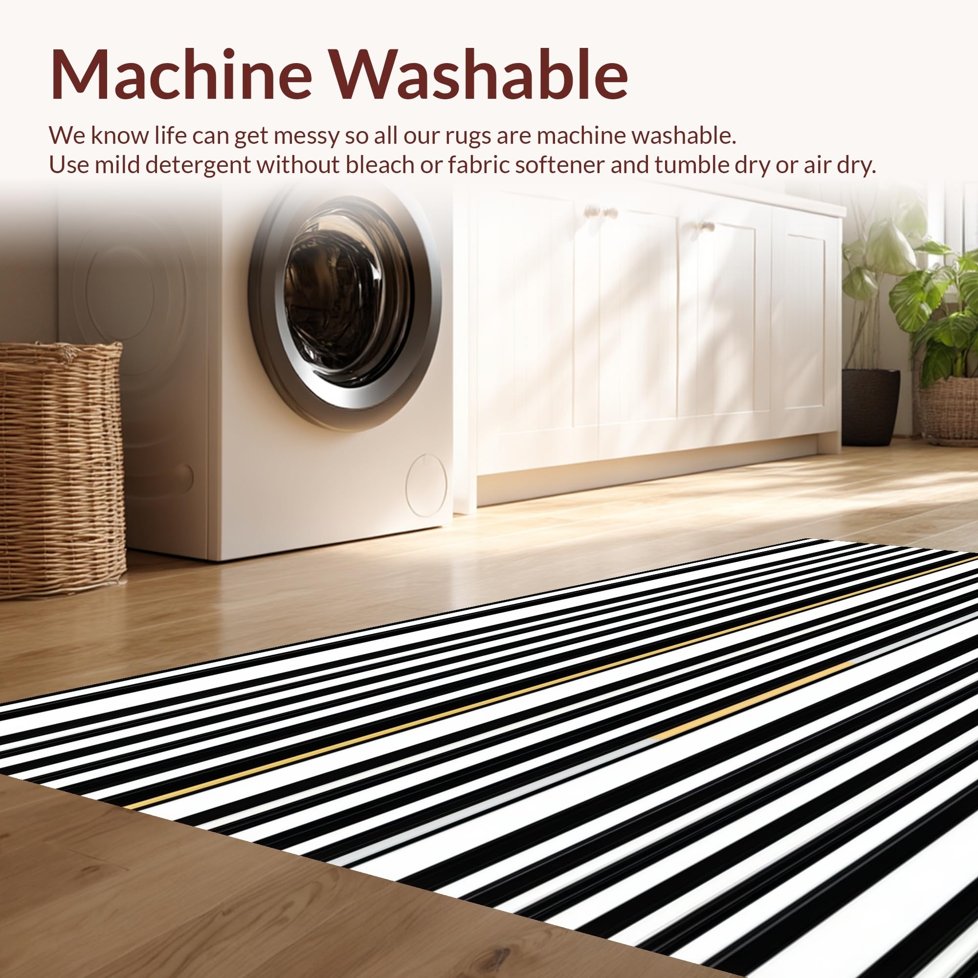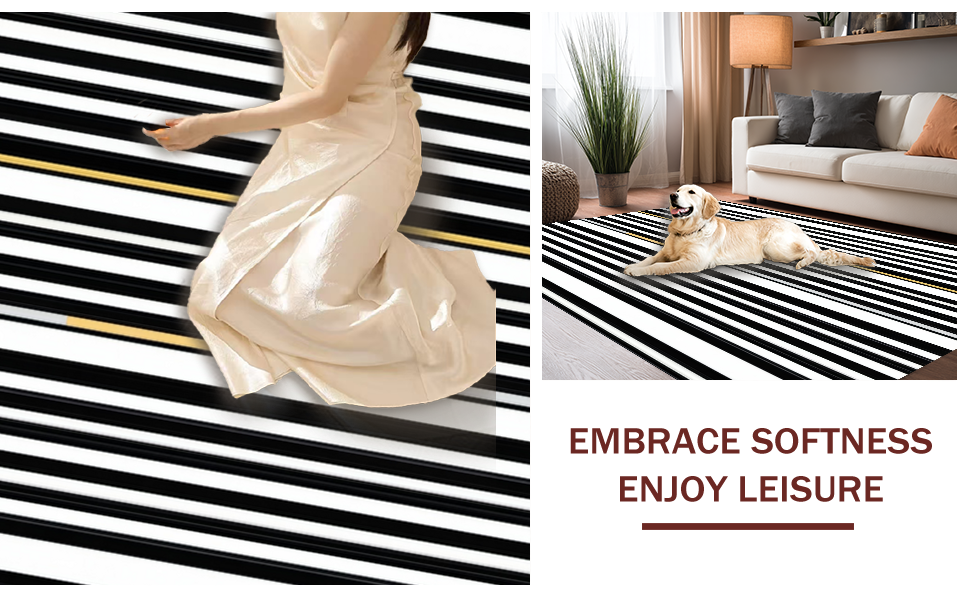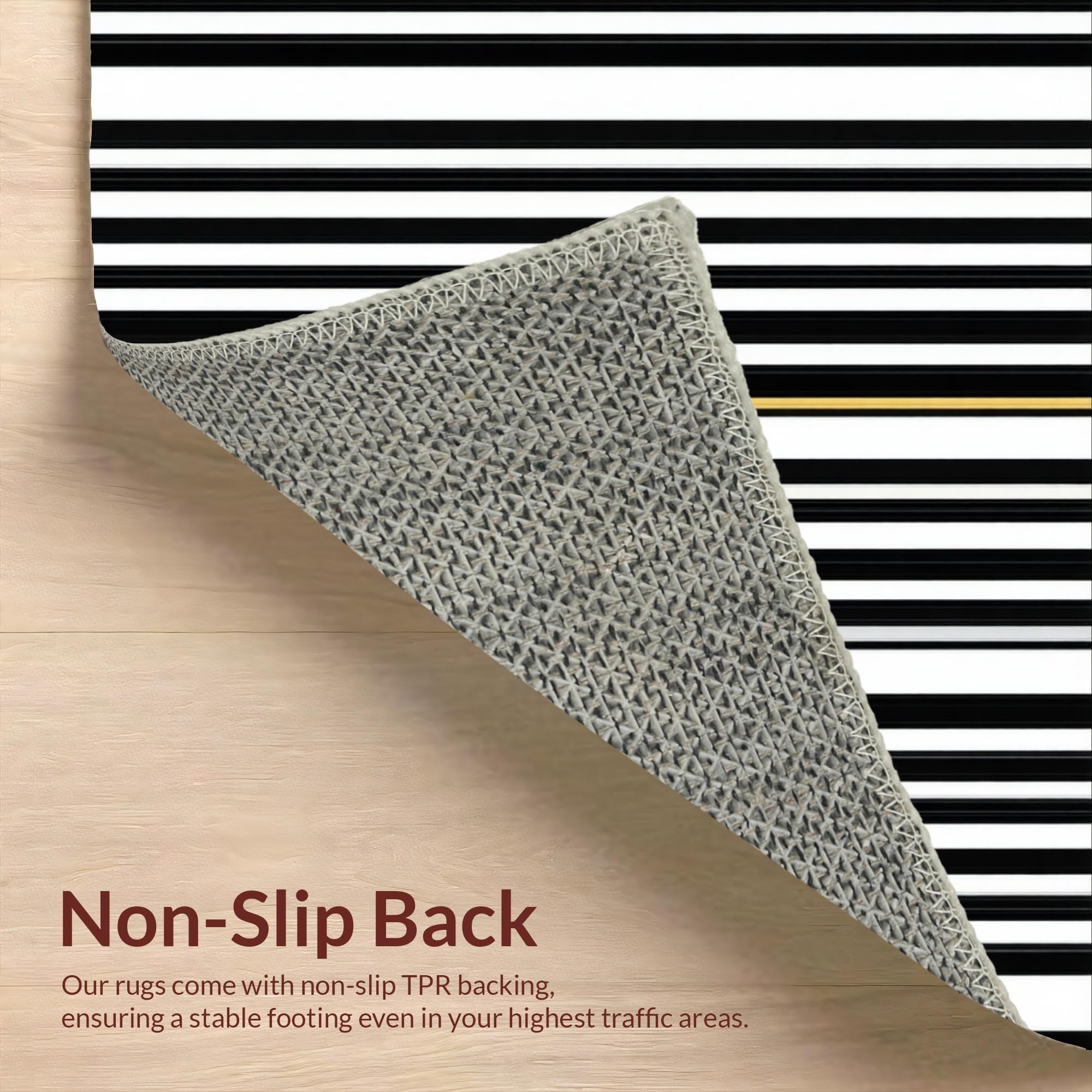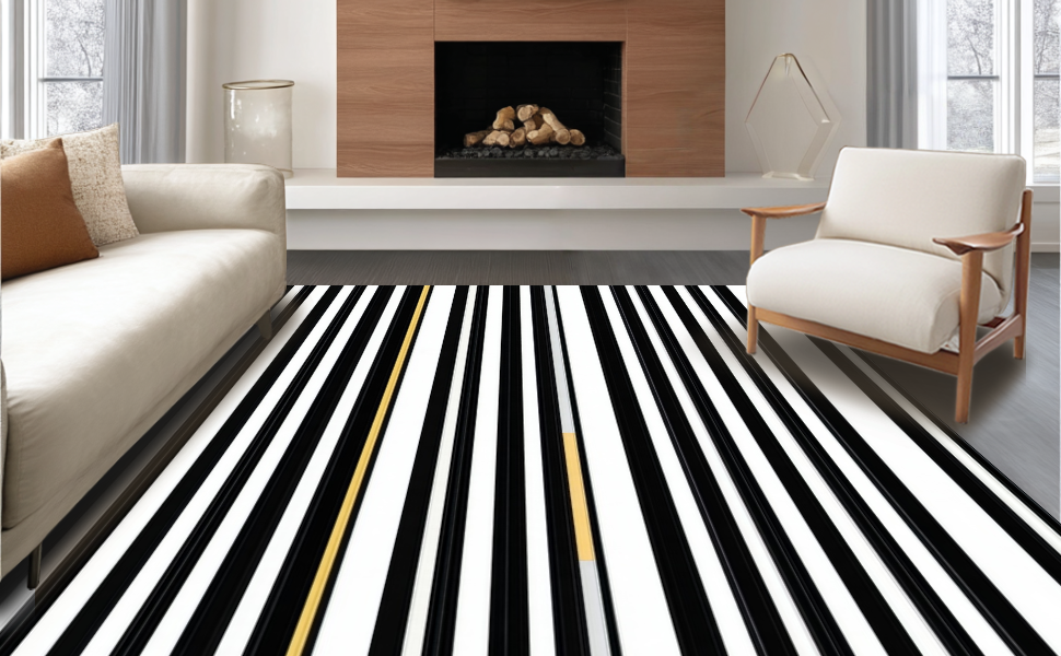 Ultra Soft Area Rug, Non Slip, Stain Resistant, Washable Area Rugs for Living Room, Bedroom, Timeless Black and White Stripes(Black) Overview: