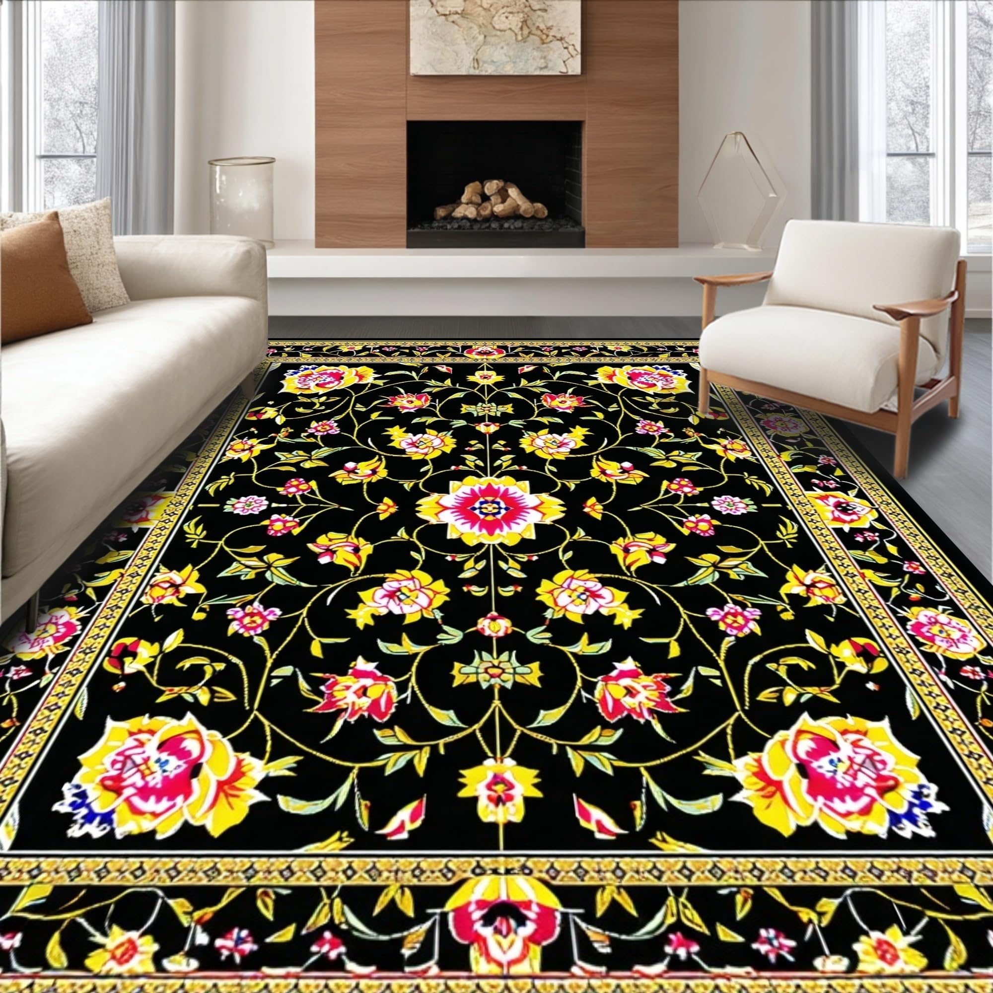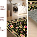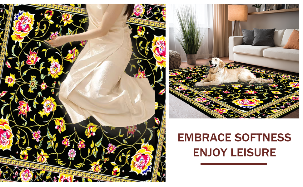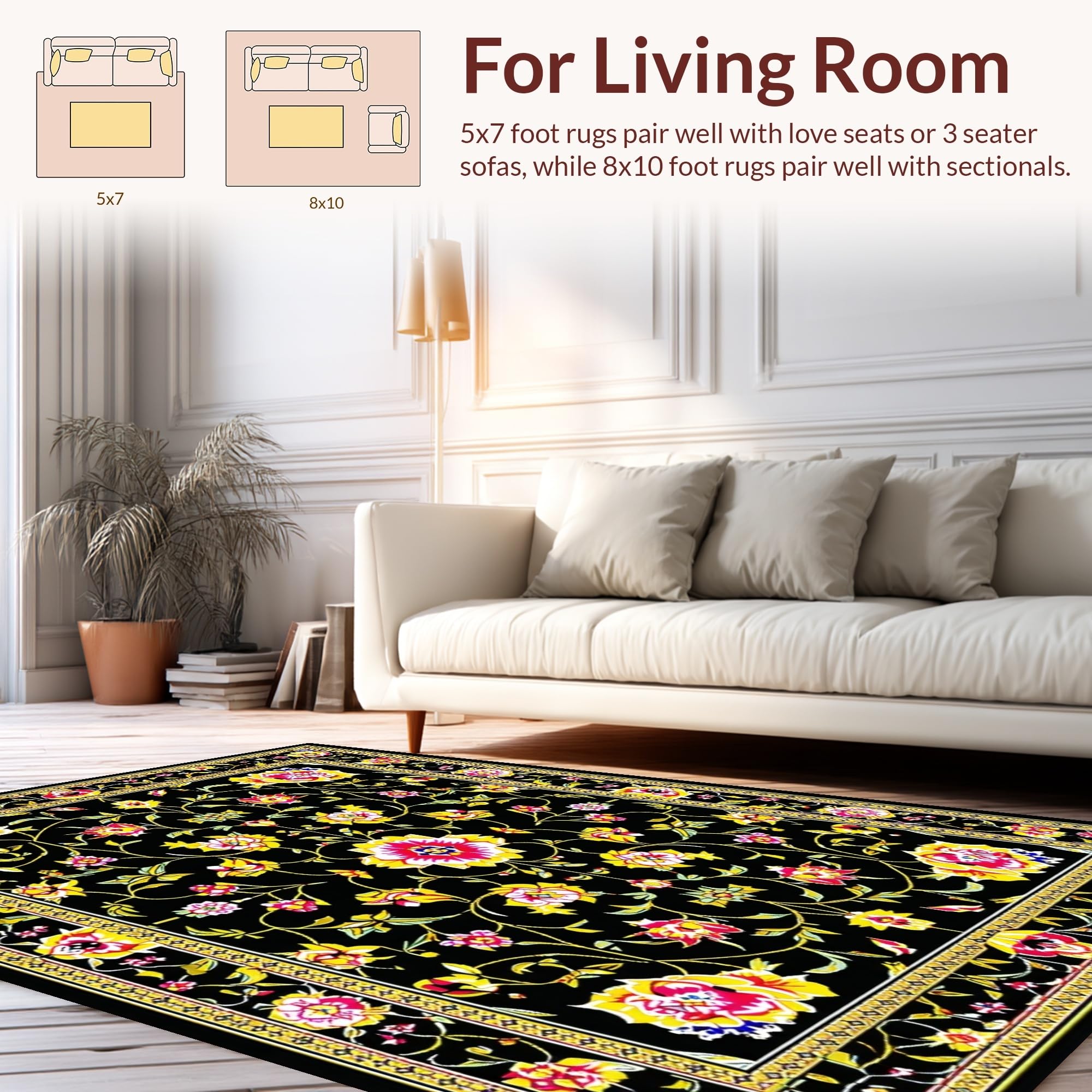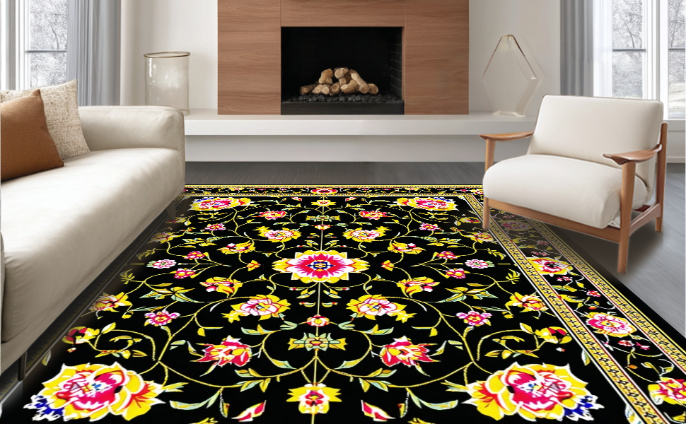 Ultra Soft Area Rug, Non Slip, Stain Resistant, Washable Area Rugs for Living Room, Bedroom, Timeless Classic Floral Harmony(Black) Overview: