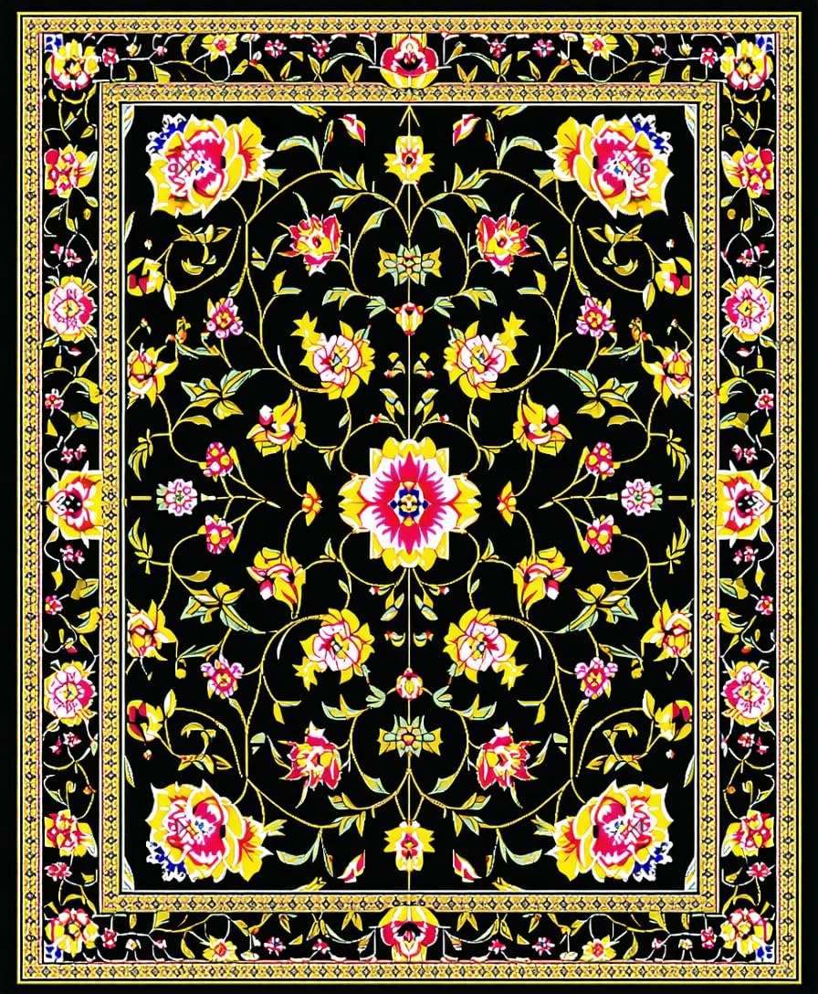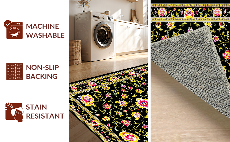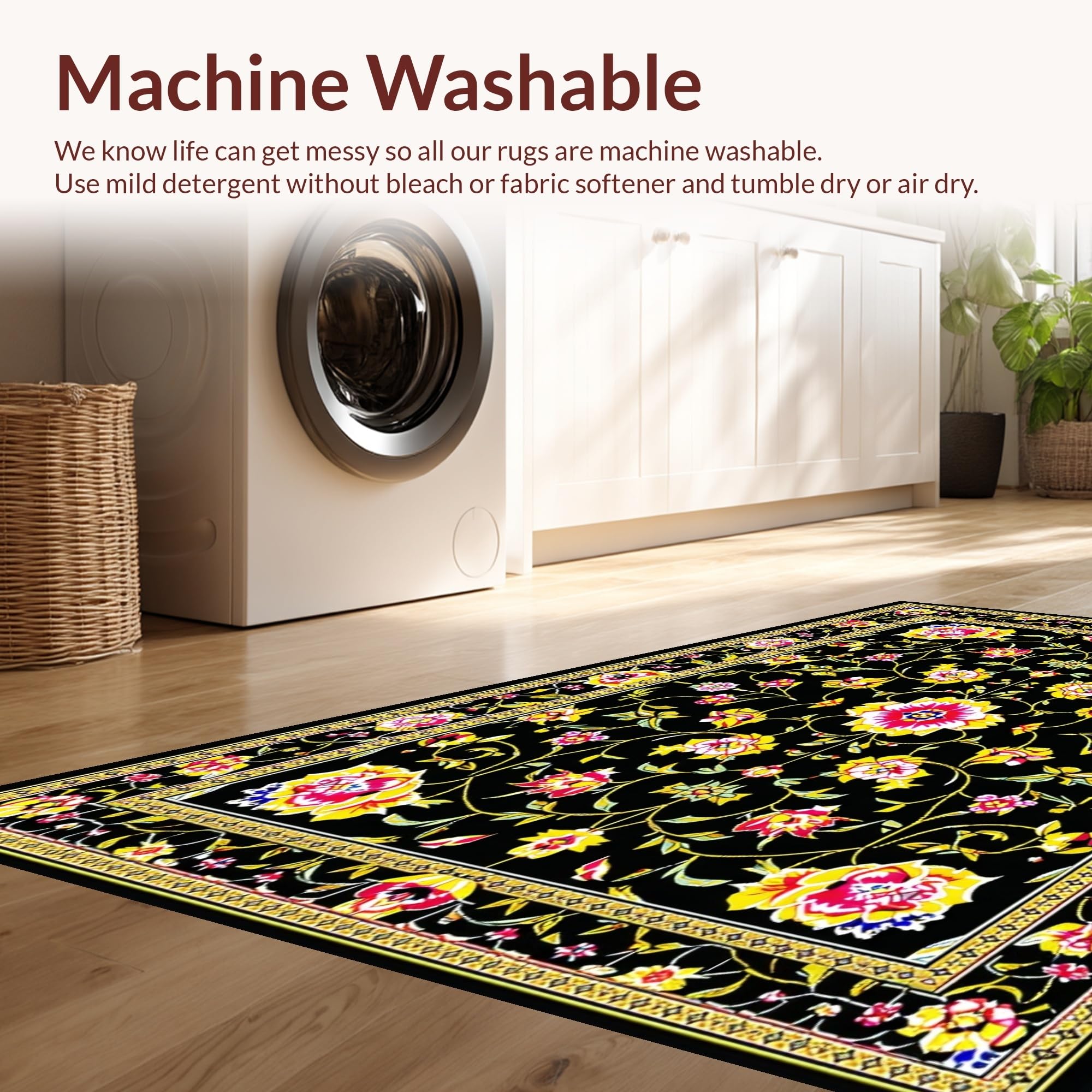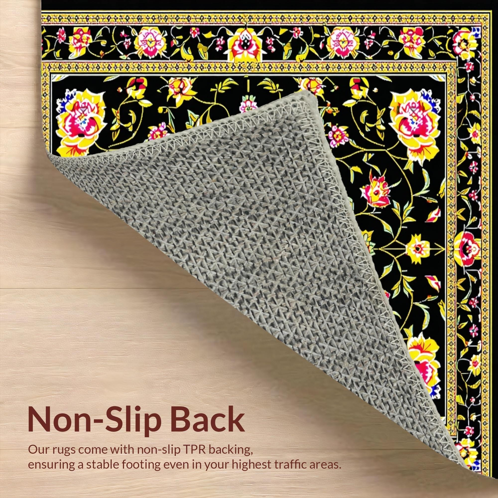 Ultra Soft Area Rug, Non Slip, Stain Resistant, Washable Area Rugs for Living Room, Bedroom, Timeless Classic Floral Harmony(Black) Overview: